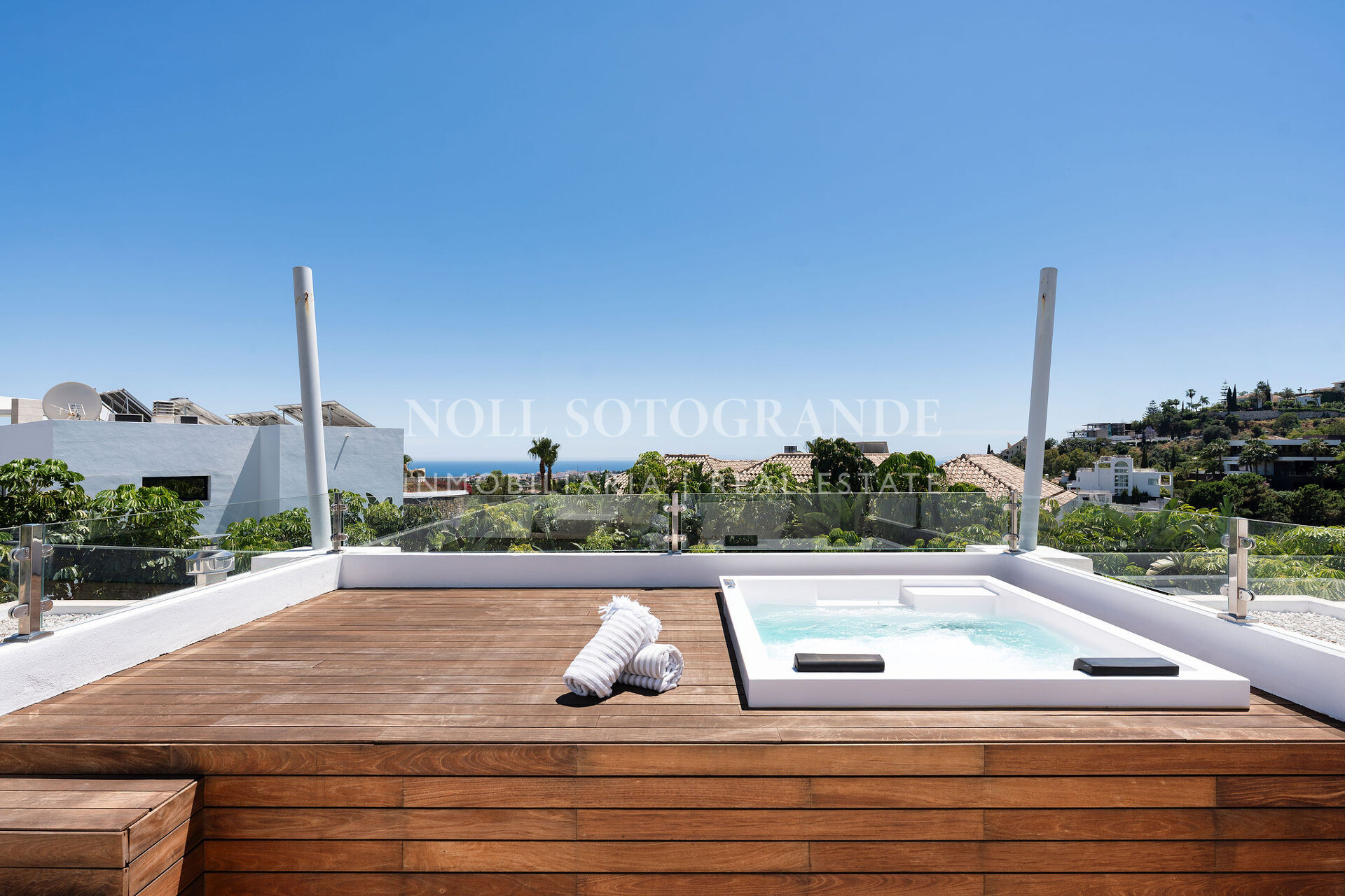 Existe un estudio independiente que puede transformarse en vivienda para el personal y en la azotea hay una zona de relax con jacuzzi y vistas al mar.