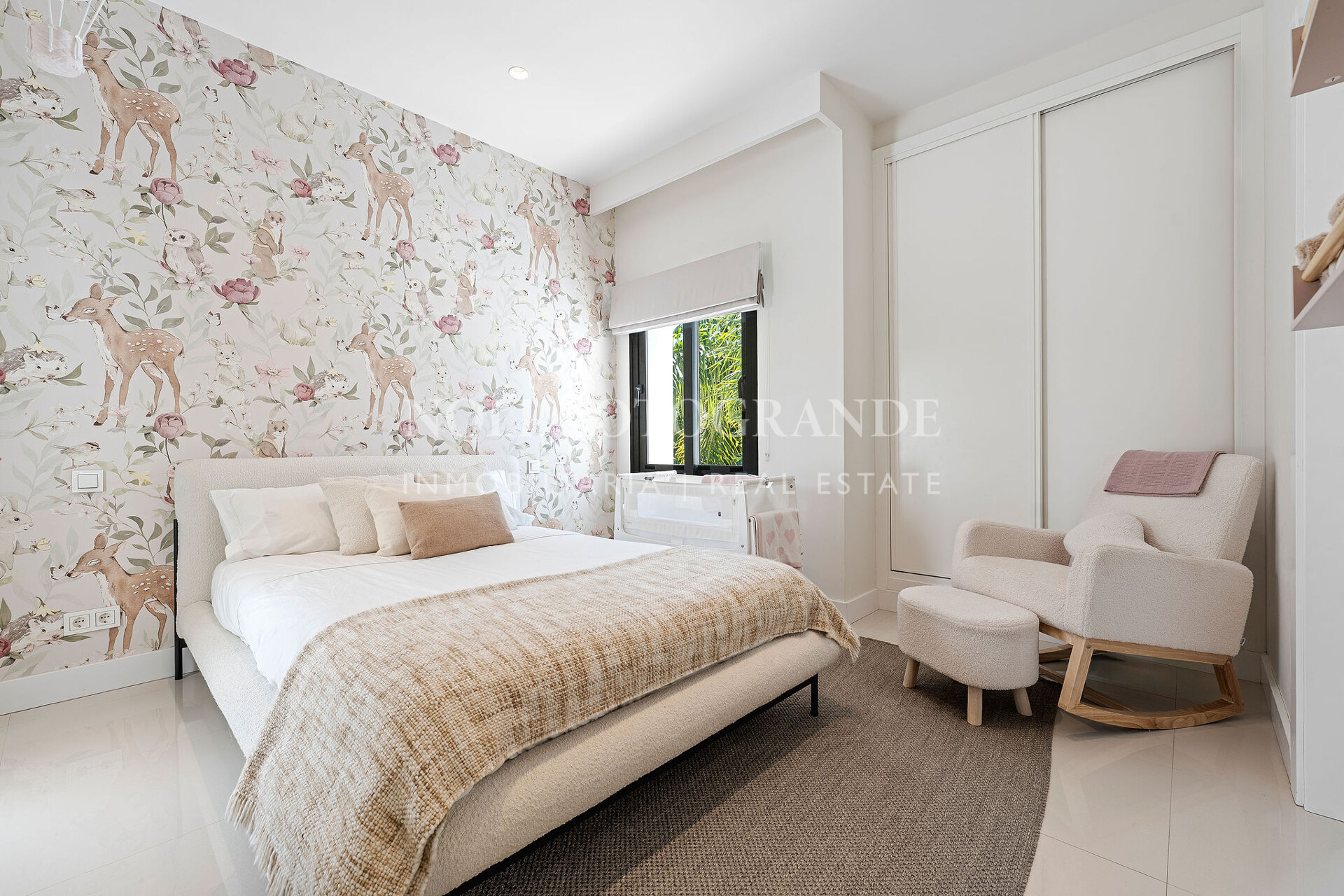 En el exterior, hay generosas terrazas y jardines tipo oasis que armonizan bellamente con el entorno natural y ofrecen un refugio tranquilo para el descanso. La piscina, actualmente vallada, proporciona un nivel extra de seguridad, lo que la hace ideal para familias con niños o mascotas.