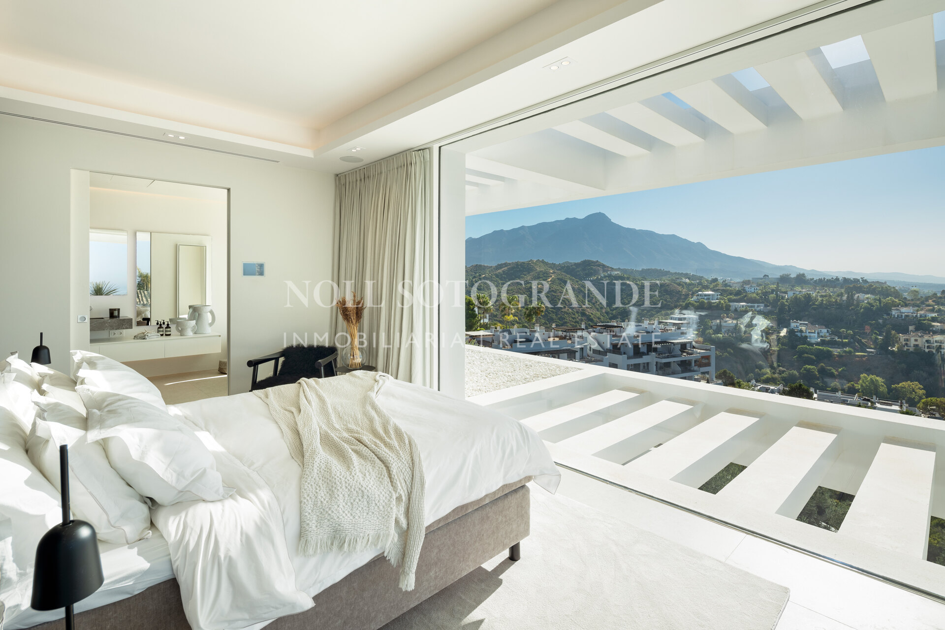 La villa con vistas panorámicas que se extienden desde la majestuosa montaña La Concha hasta el Mediterráneo y Gibraltar. Diseñada magistralmente en tres niveles, cuenta con 880 metros cuadrados de sofisticadas zonas interiores.