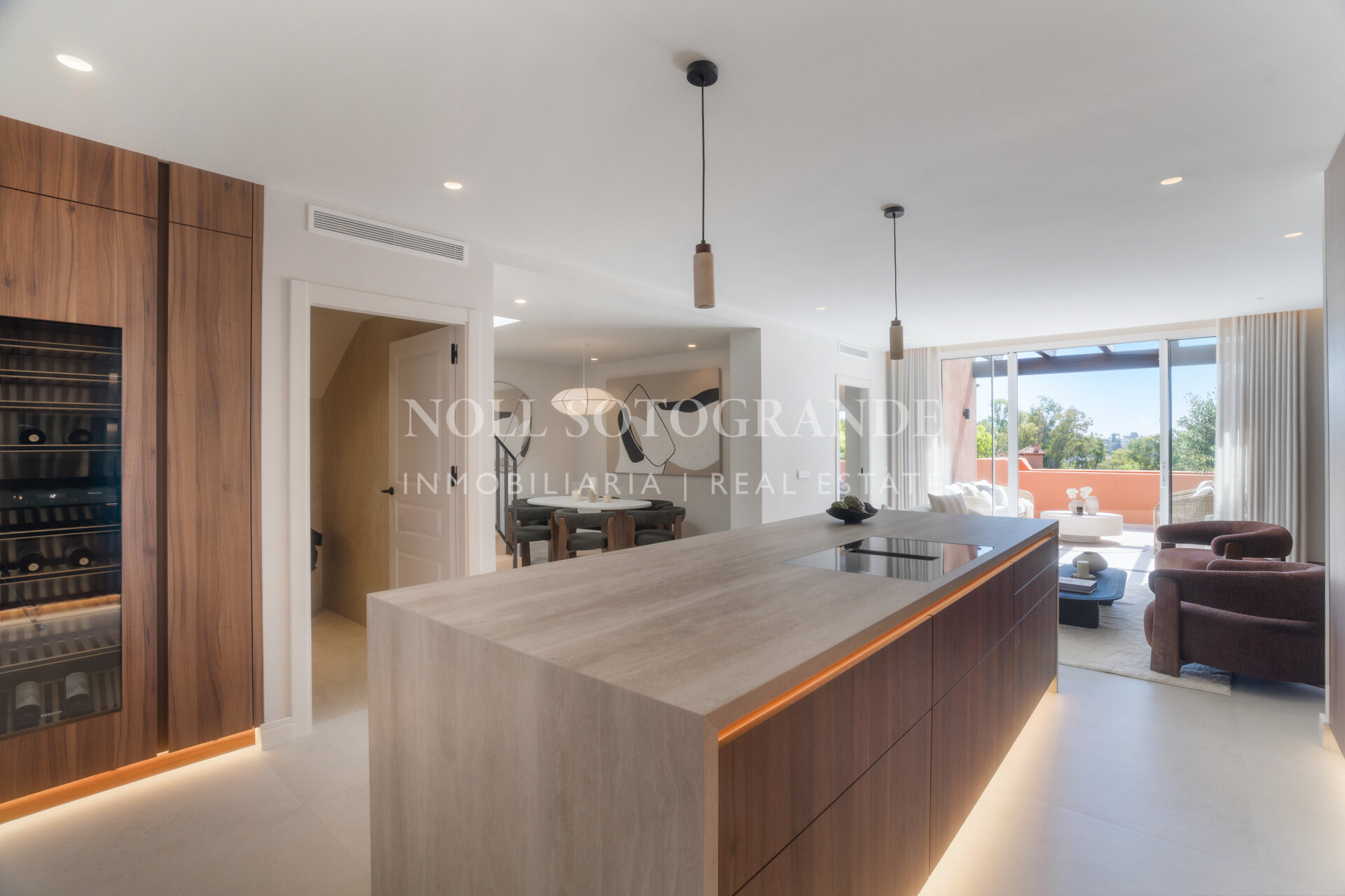 Esta propiedad recientemente renovada, orientada al sur y diseñada con estilo contemporáneo, ofrece acabados y calidades de alta gama. Consta, en el nivel de entrada, de: vestíbulo, moderna cocina abierta con electrodomésticos Miele, amplias zonas de estar y comedor que se abren a una terraza con vistas a la montaña de La Concha y al mar Mediterráneo. Tres dormitorios de invitados, uno de ellos en suite con acceso a la terraza principal y otro con balcón privado, completan este nivel. La escalera conduce a la enorme suite principal con vestidor, amplio cuarto de baño y acceso a la gran terraza con impresionantes vistas, totalmente equipada para la vida al aire libre con una pequeña piscina, cocina exterior con barbacoa, amplia zona de comedor y estar. Otras características incluyen un garaje con espacio para dos coches y trastero.