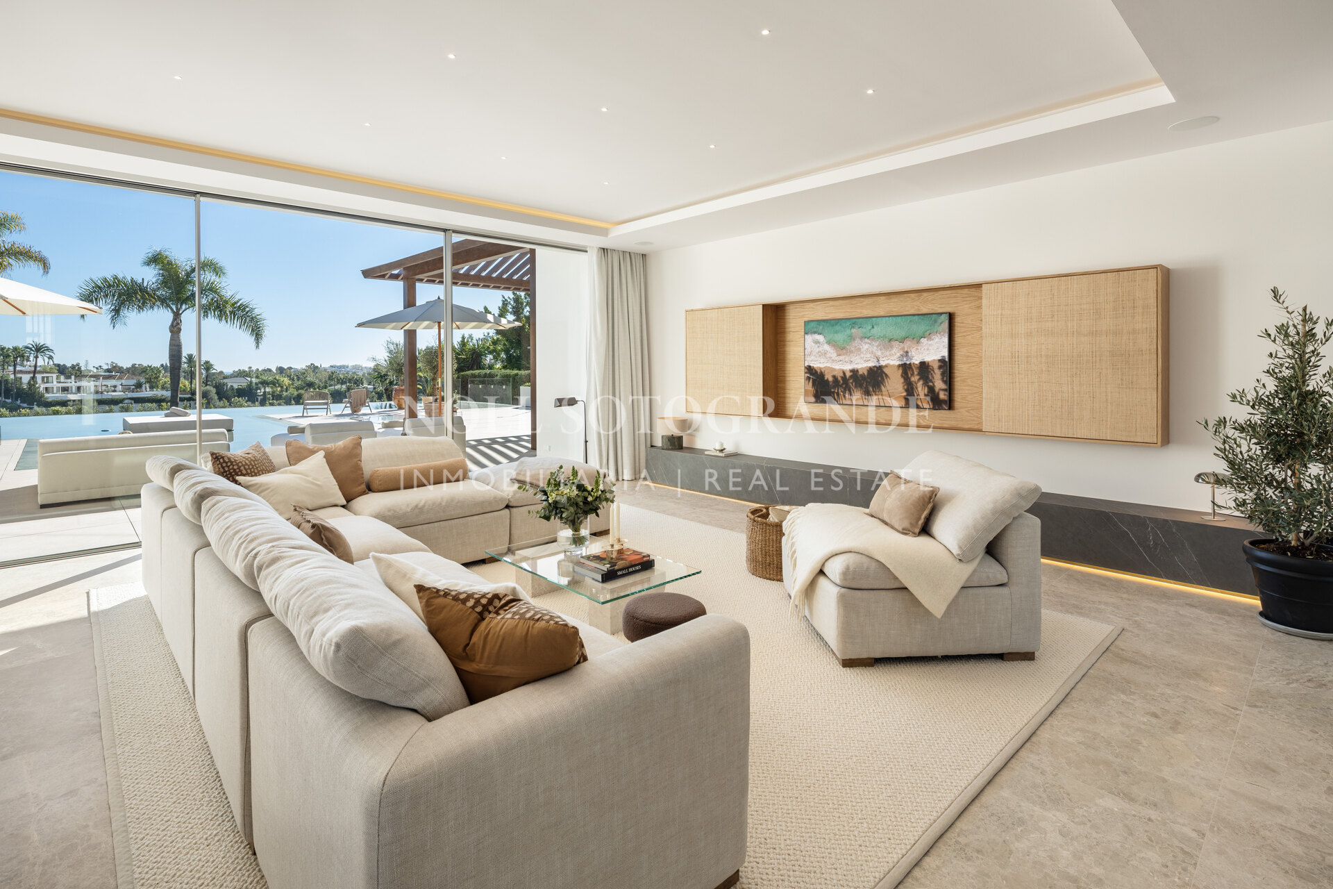 Ubicada en el prestigioso Valle del Golf de Nueva Andalucía, se encuentra una villa de 6 dormitorios que es una obra maestra de la elegancia mediterránea, con toques contemporáneos balineses.