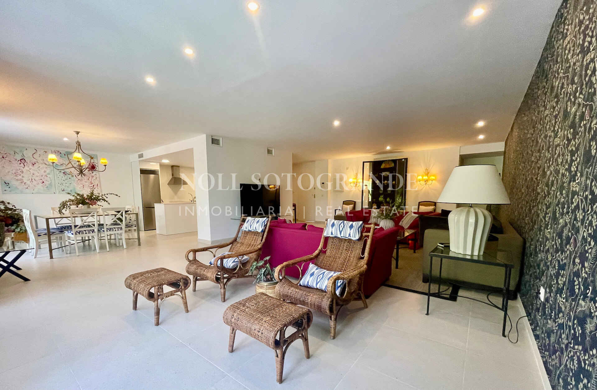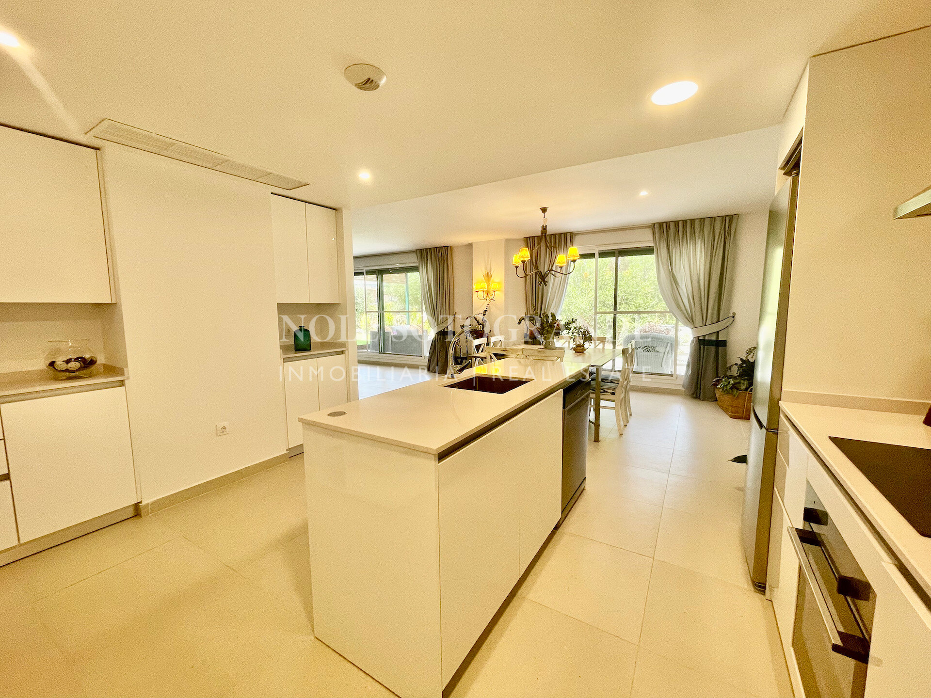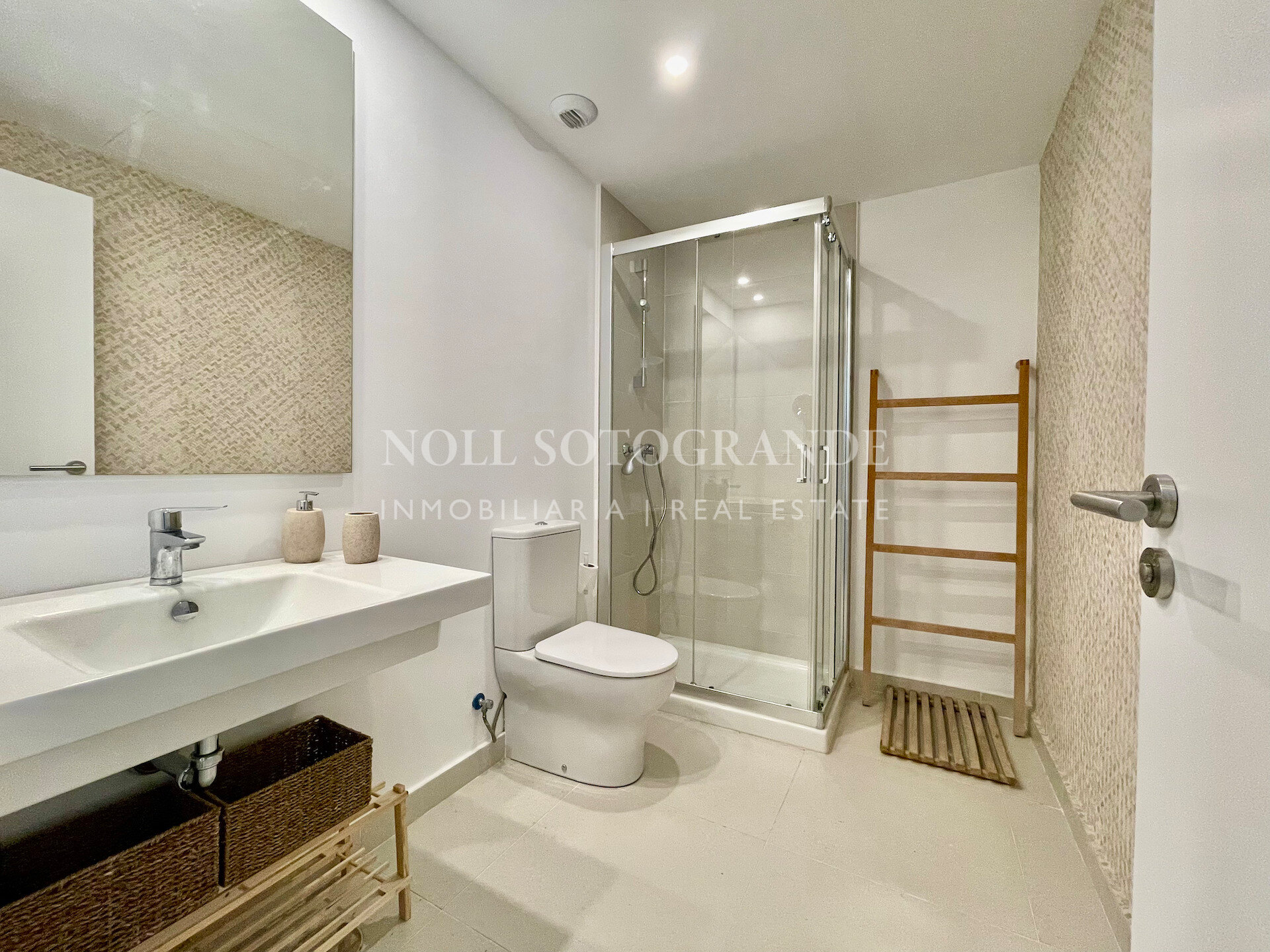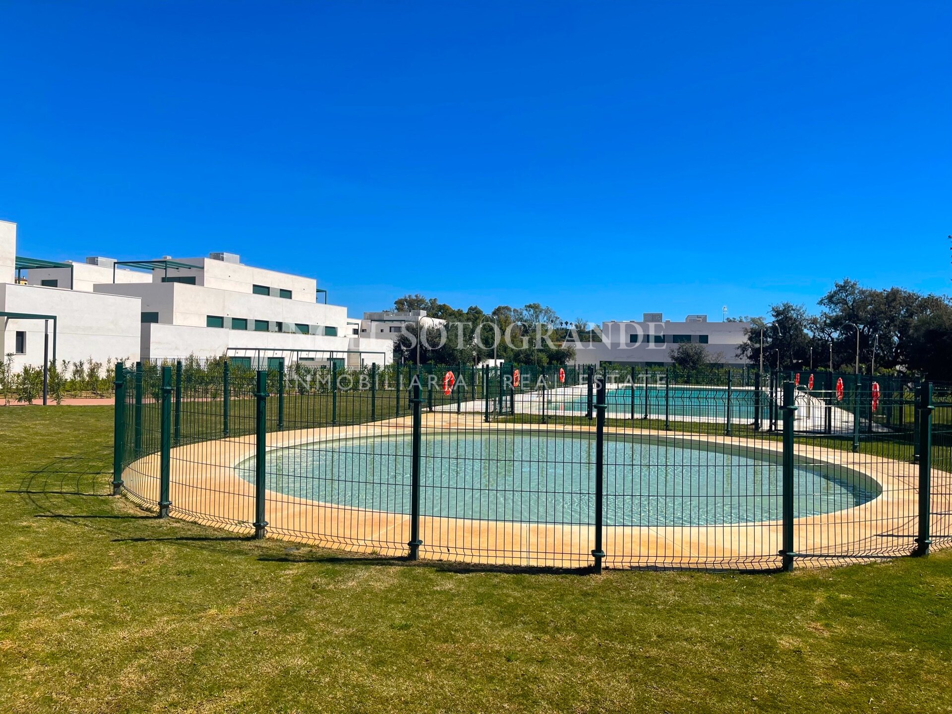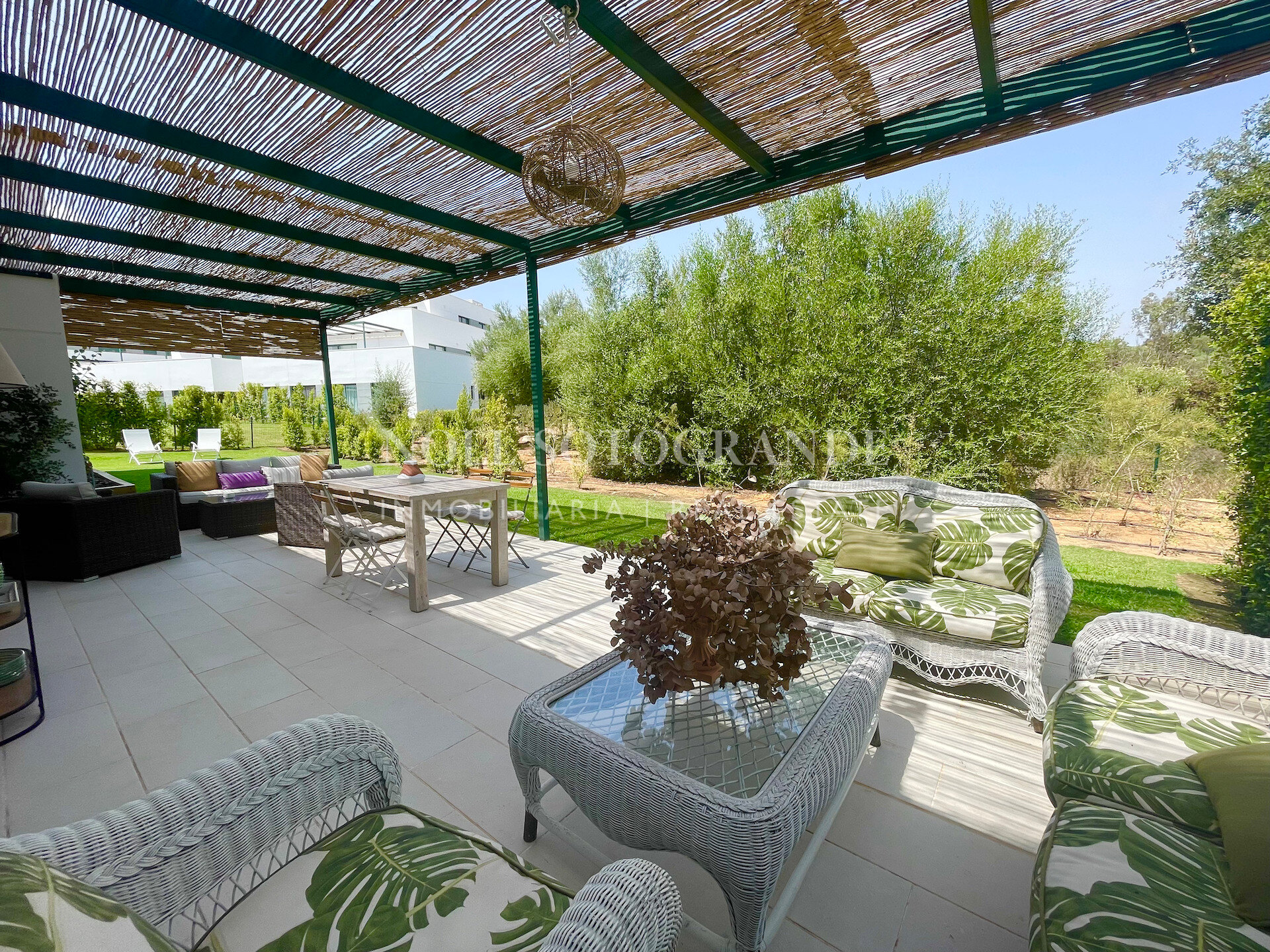 Este apartamento de tres dormitorios en planta baja ofrece una zona verde tranquila, privacidad y fácil acceso al golf, club de playa y escuela de Sotogrande. Las grandes ventanas dibujan luz en la zona de estar-comedor y se abren a una terraza cubierta orientada al oeste con vistas a una zona verde tranquila. En su interior, un hall de entrada conduce a un salón generoso, un comedor y una cocina equipada que ha sido actualizada con armarios extra para la práctica cotidiana. Cada uno de los tres dormitorios dobles tiene su propio baño, y hay un aseo de invitados para conveniencia. Se incluyen dos plazas de aparcamiento subterráneo, con ascensor al apartamento. Los acabados incluyen aire acondicionado aerotérmico, ventanas de aluminio doble acristalamiento, suelo de porcelana, armarios empotrados y pantallas de mosquitos. Los residentes disfrutan de comodidades de estilo resort: piscinas al aire libre, canchas de pádel/tenis, gimnasio, senderos a pie por el bosque de robles circundantes y una entrada cerrada con una cabaña de conserje. La ubicación le sitúa cerca de La Reserva Golf y los servicios más amplios de Sotogrande, ideal como base de tiempo completo o una segunda casa.