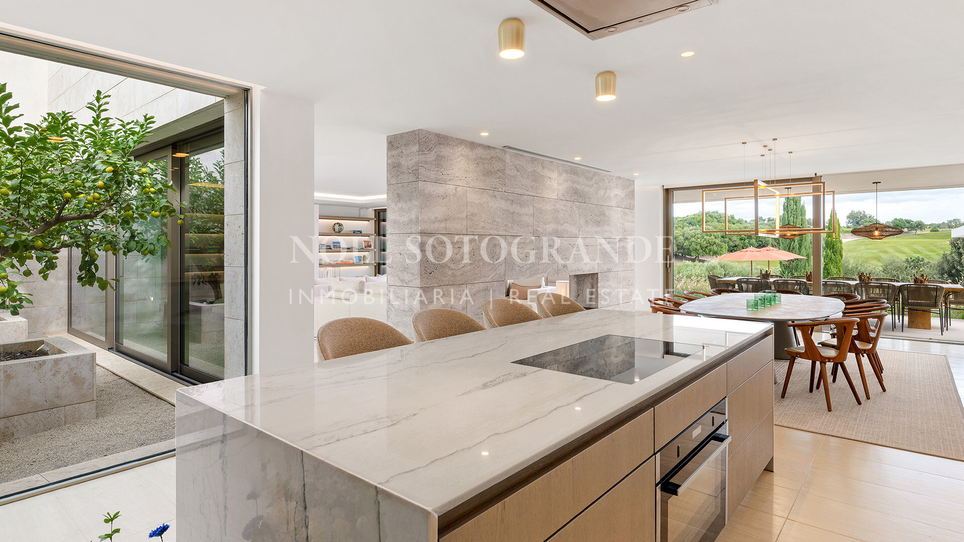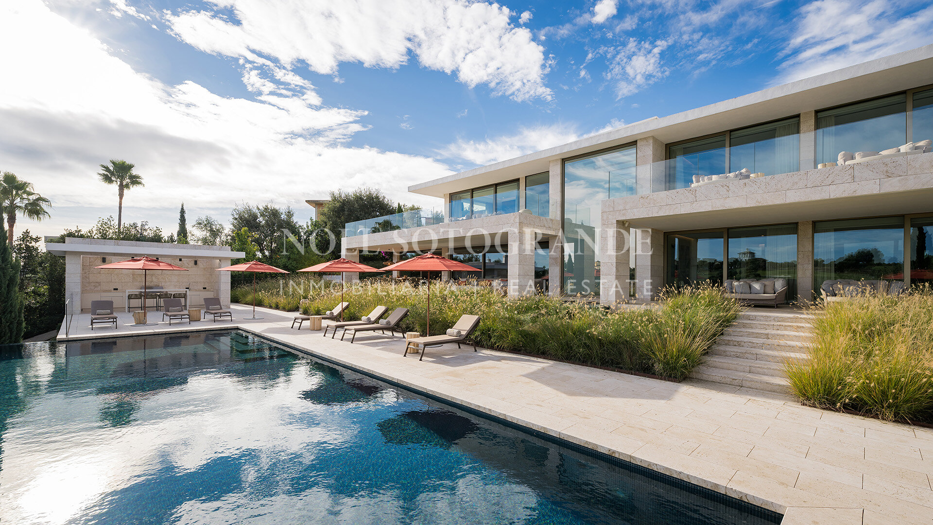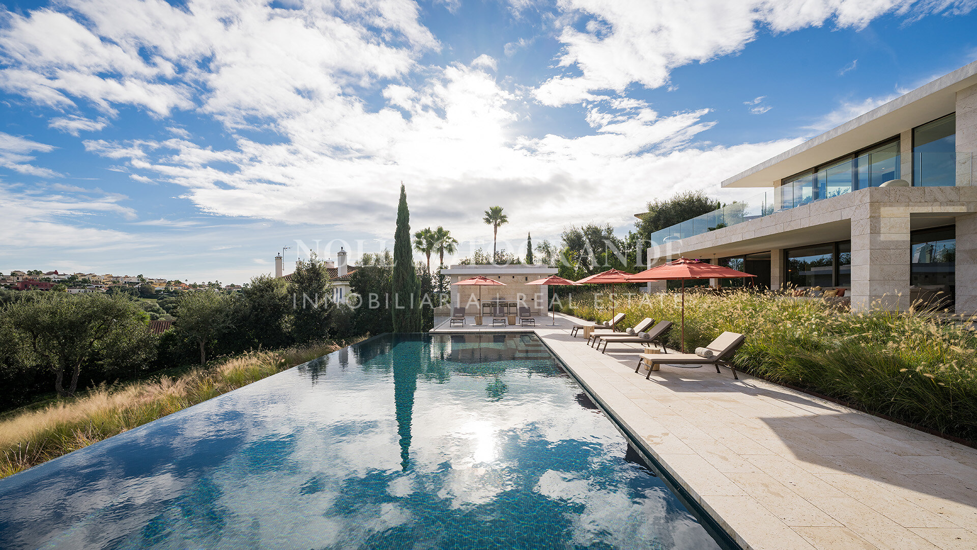 • Piscina infinita, salones al aire libre, terrazas, cocina de verano