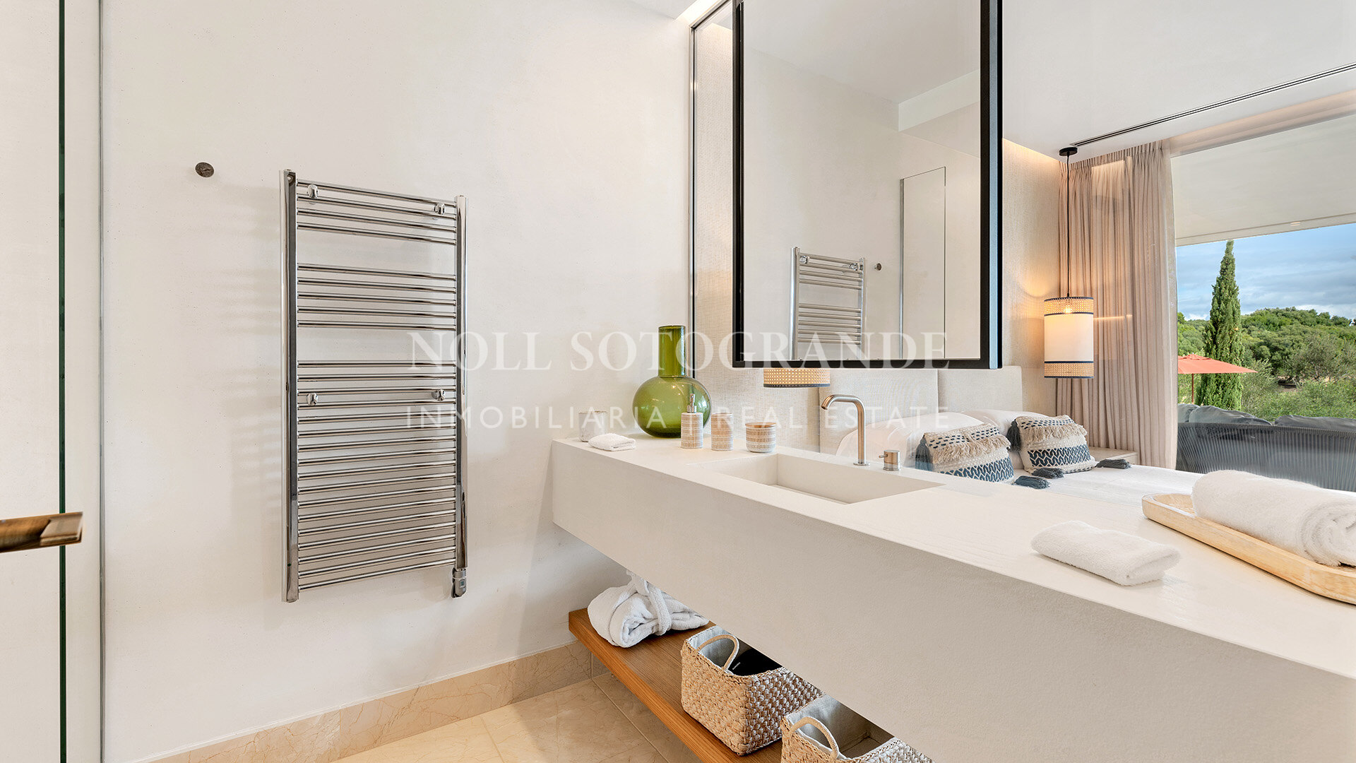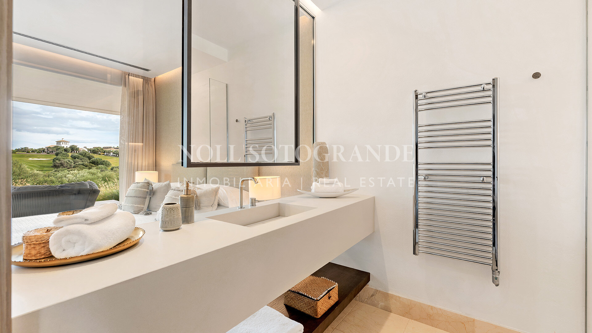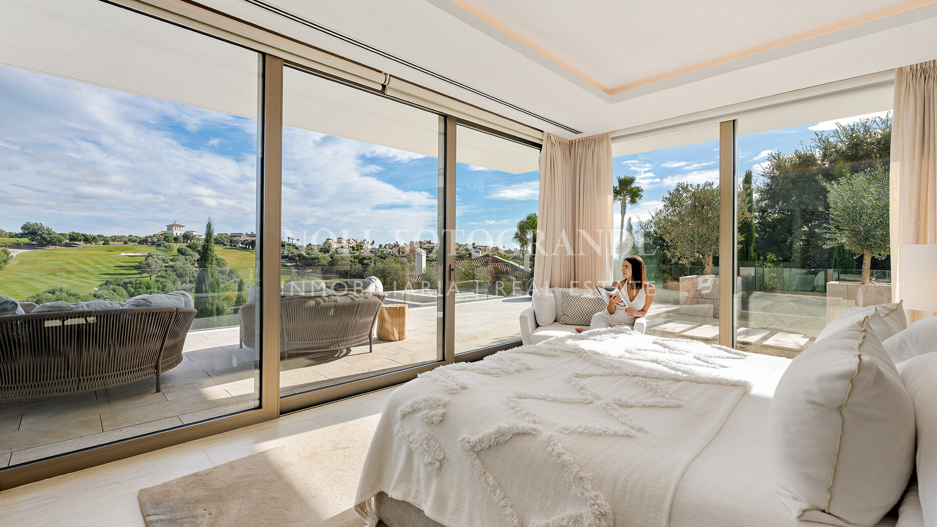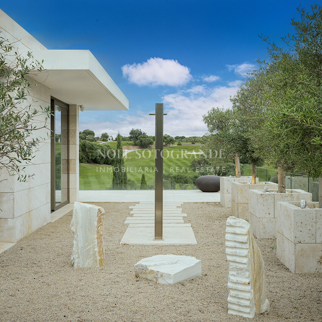 Situado justo encima del hoyo 18 de La Reserva Club Sotogrande, esta excepcional villa contemporánea combina arquitectura de vanguardia con un entorno natural tranquilo. Diseñado por Manuel Ruiz Moriche de ARK Architects, ocupa una parcela de 3.416 m2 con 1.174 m2 construidos en tres plantas conectadas por un ascensor. Amplias paredes de vidrio inundan los interiores con luz y capturan vistas abiertas a través del campo de golf al Mediterráneo. En su interior hay cinco elegantes habitaciones, amplios espacios de vida de planta abierta y una cocina de diseño elegante, todo terminado a un estándar impecable. Un sistema discreto de sonido Sonos funciona por todo el hogar, ofreciendo audio sin costura interior y exterior. El nivel inferior está dedicado al ocio y al bienestar, con spa, gimnasio, sauna y piscina fría, creando un santuario privado para la relajación y el entretenimiento. En el exterior, jardines ajardinados por la renombrada paisajista Rocío Sainz de Rozas integran olivos y plantación aromática mediterránea, mejorando la armonía de la villa con sus alrededores. Amplias terrazas, una piscina infinita y una cocina y bar de verano permiten una vida al aire libre sin esfuerzo. Dentro de la cerrada La Reserva, los residentes disfrutan de seguridad las 24 horas, un campo de golf de clase mundial, La Reserva Beach Club, y la proximidad a la vela, polo, excelente comedor y Sotogrande International School, con fácil acceso a Marbella, Gibraltar y Málaga. La propiedad es una de las muy pocas en La Reserva que tiene acceso directo a la casa club y sus instalaciones a través de una carretera de deslizamiento contigua a la propiedad.