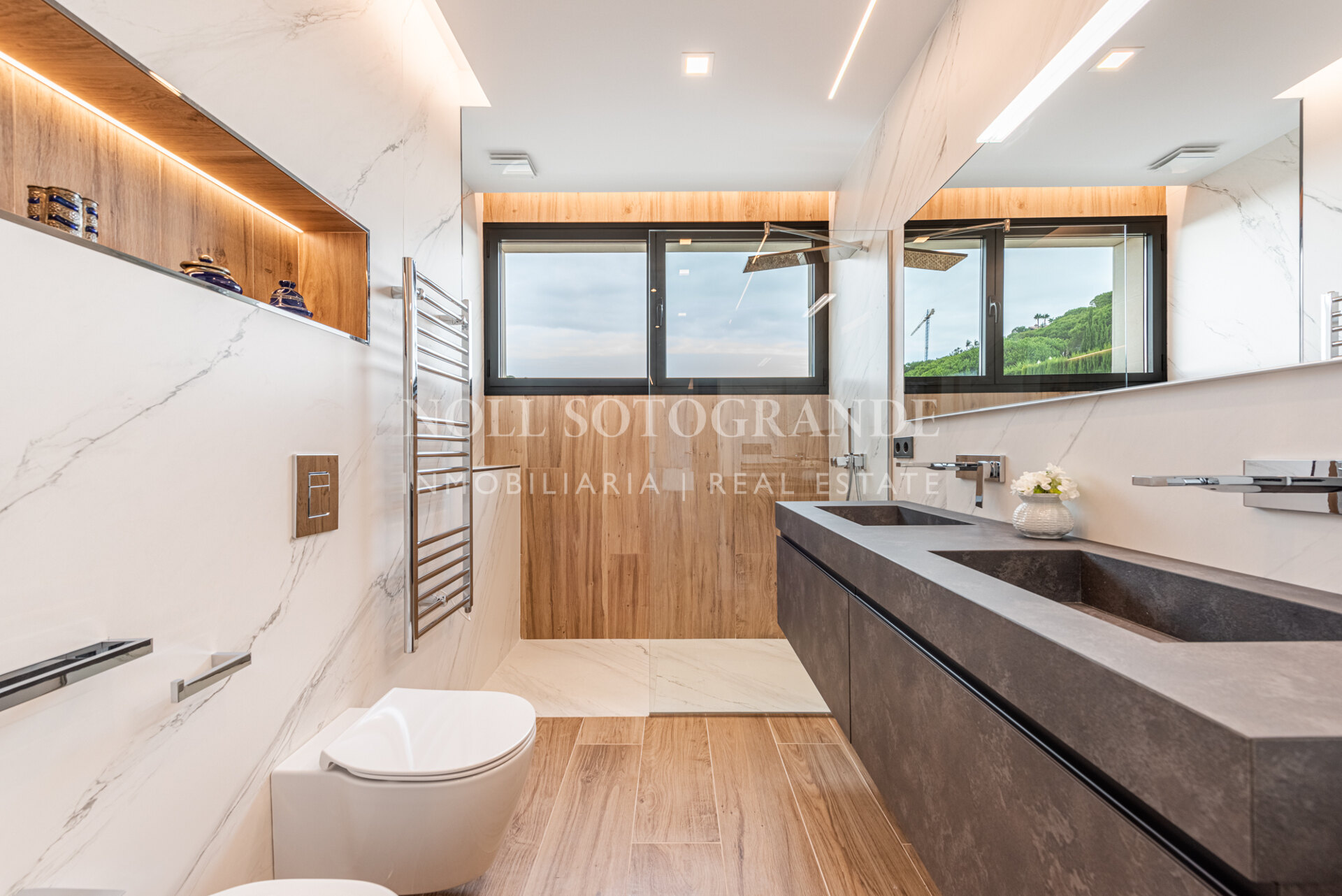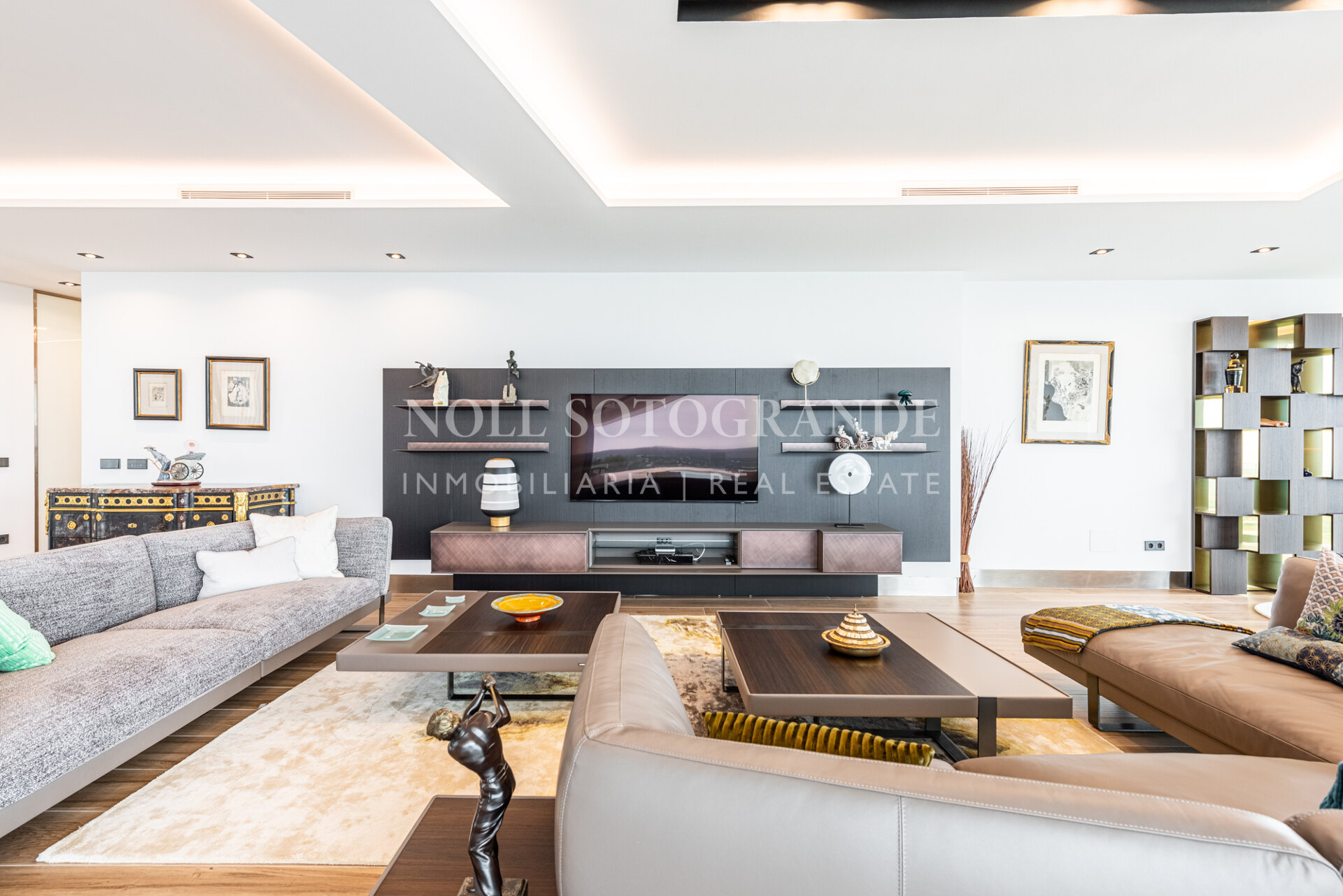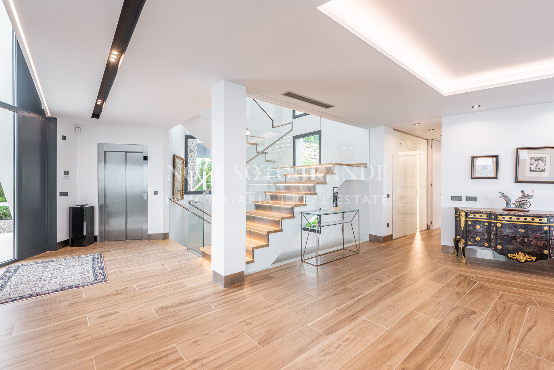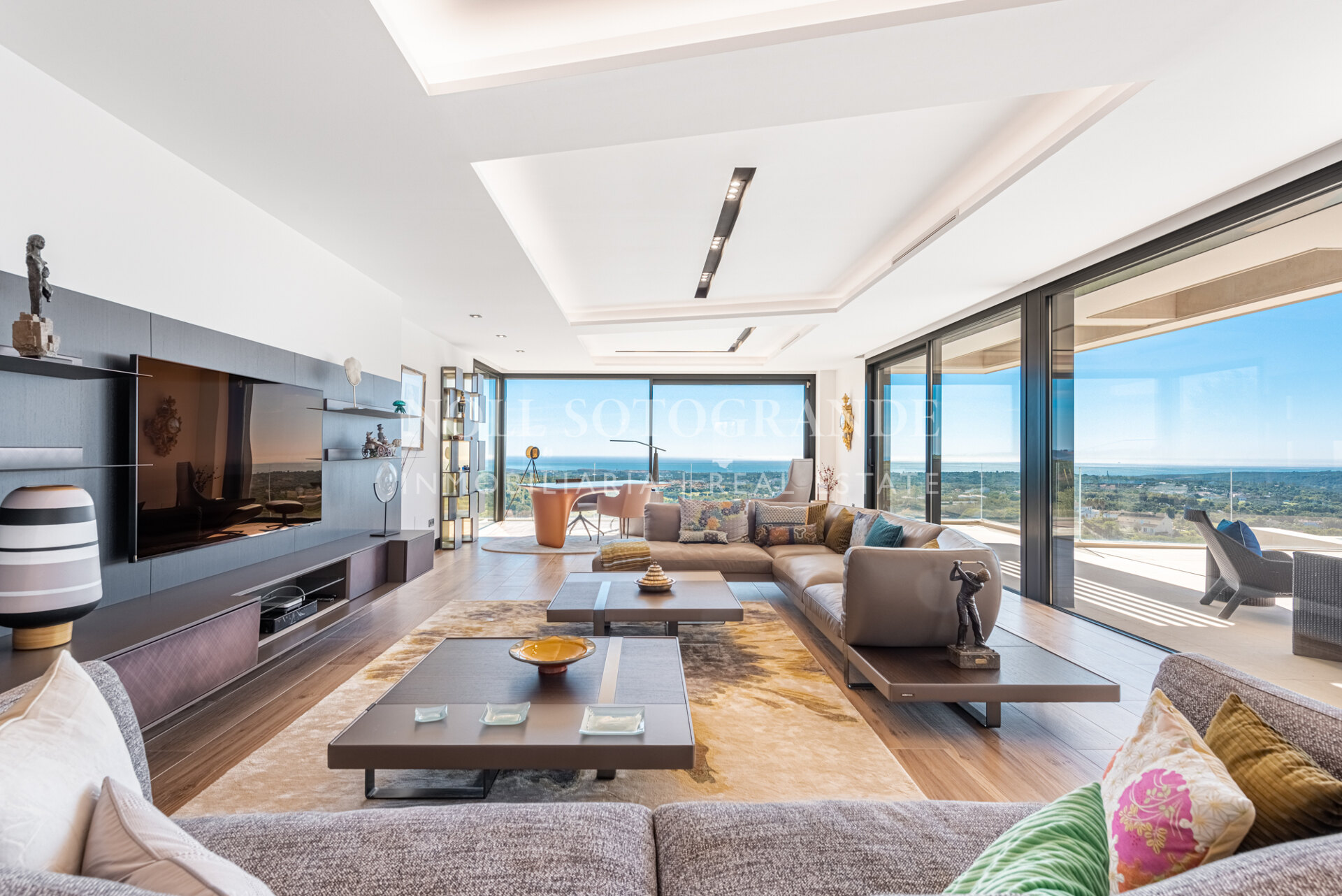 Esta villa recientemente terminada ubicada en lo alto de las laderas de La Reserva que ofrece vistas espectaculares ya está disponible para la venta. Está construida sobre una parcela en pendiente con un maravilloso jardín. Ubicada donde se pueden apreciar las mejores vistas de Sotogrande, la propiedad atraerá a la mayoría de los propietarios. La vivienda con una superficie de 841 m2 se asienta sobre una parcela de 2297 m2 y tiene la siguiente distribución: Planta alta: se ubica la villa principal en suite con su baño y vestidor, una gran terraza así como dos dormitorios más cada uno con sus baños en este piso. Planta principal: este nivel se compone del hall de entrada, escaleras a la planta superior y de bajada a la planta sótano, la sala de estar, el comedor, la cocina, un dormitorio y baño y aseo de invitados. Grandes puertas corredizas de vidrio se abren a una increíble terraza y a la piscina. Sótano: Aquí se encuentra un quinto dormitorio y baño, el sauna jacuzzi, el área de gimnasio, un espacio de entretenimiento de TV y una pequeña cocina y área de bar. Además, hay un garaje para 3 coches, una sala de máquinas, un amplio espacio de almacenamiento y dos aseos para invitados. Construida con altas especificaciones, esta propiedad es apta para sillas de ruedas con ascensor, desde la planta baja hasta todos los niveles, y una piscina de agua salada. Se puede proporcionar una especificación completa y planos para cualquier solicitante interesado.