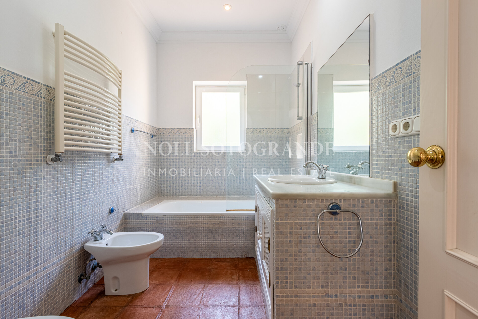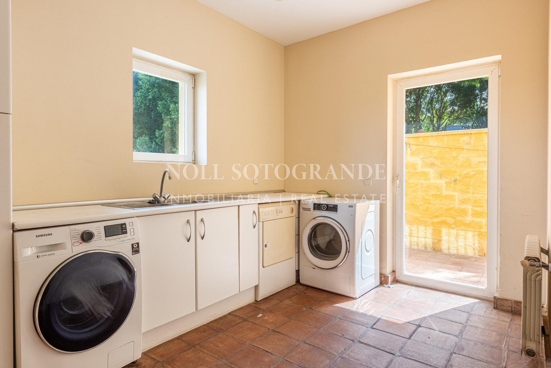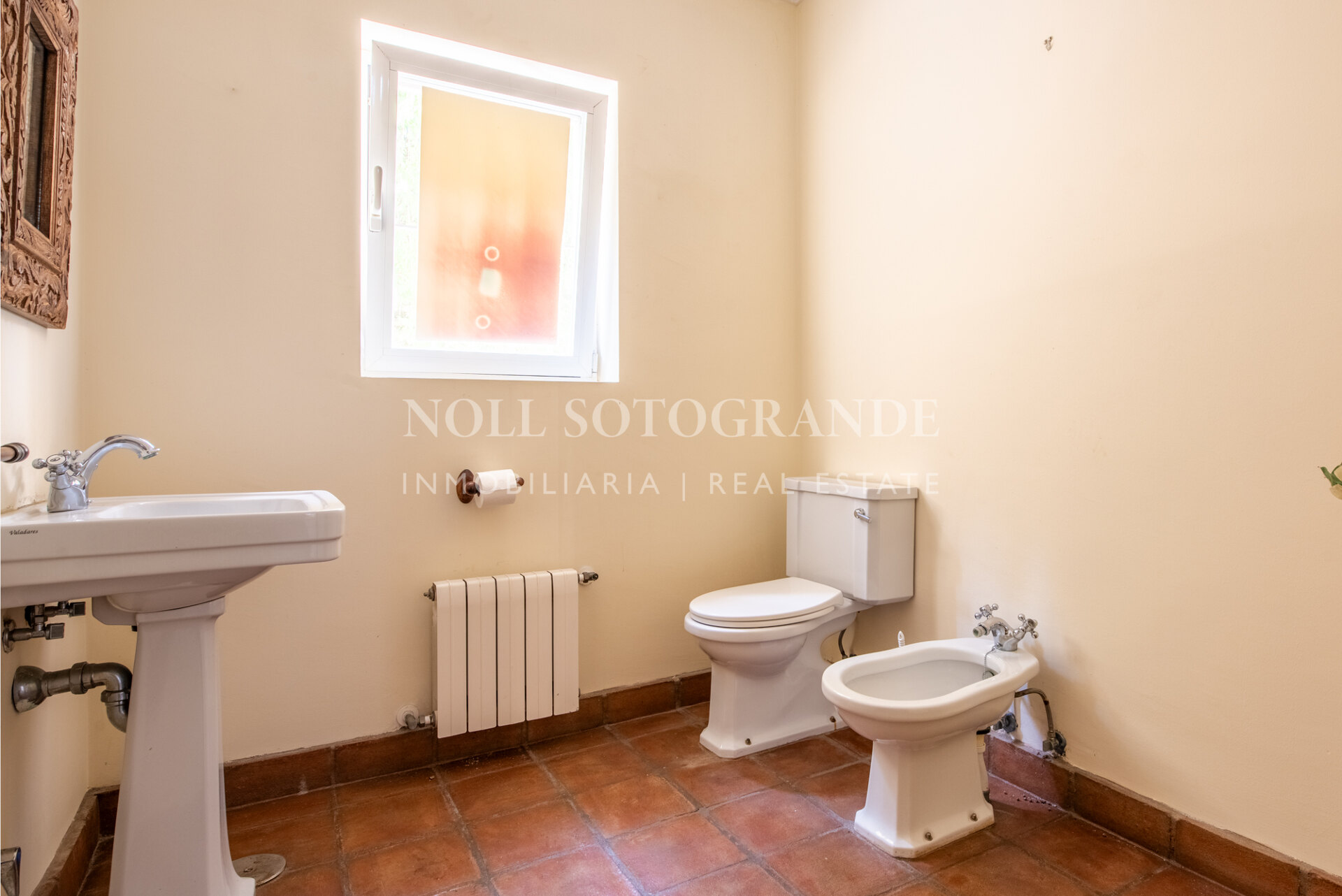 En la planta superior, la suite principal cuenta con baño privado, vestidor, balcón Julieta y acceso a una terraza con vistas panorámicas. Los dormitorios y baños adicionales ofrecen mucho espacio para la familia y los invitados. Una oficina con su propia terraza y una generosa distribución en ambas alas realzan la sensación de espacio. Las zonas exteriores de la villa están diseñadas para el descanso y el entretenimiento, con una terraza de 205 m², un jardín maduro y una piscina con vistas al entorno natural. El amplio sótano tiene capacidad para 6-8 coches y puede convertirse en un gimnasio, una sala de cine o una zona para el personal, lo que aumenta la versatilidad de la propiedad. Los suelos de terracota, los armarios empotrados y la calefacción central completan esta casa familiar en una tranquila ubicación en Sotogrande Alto.