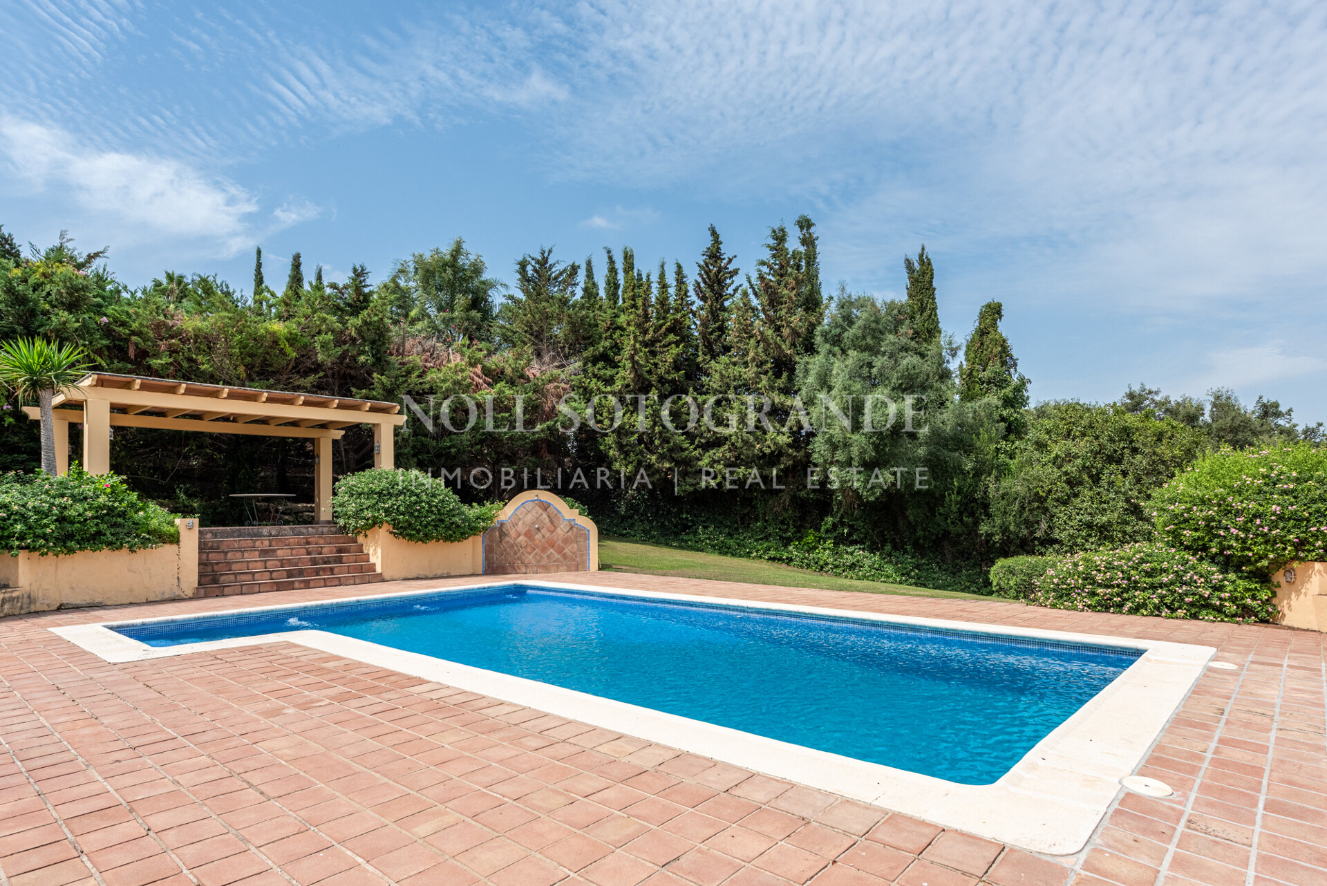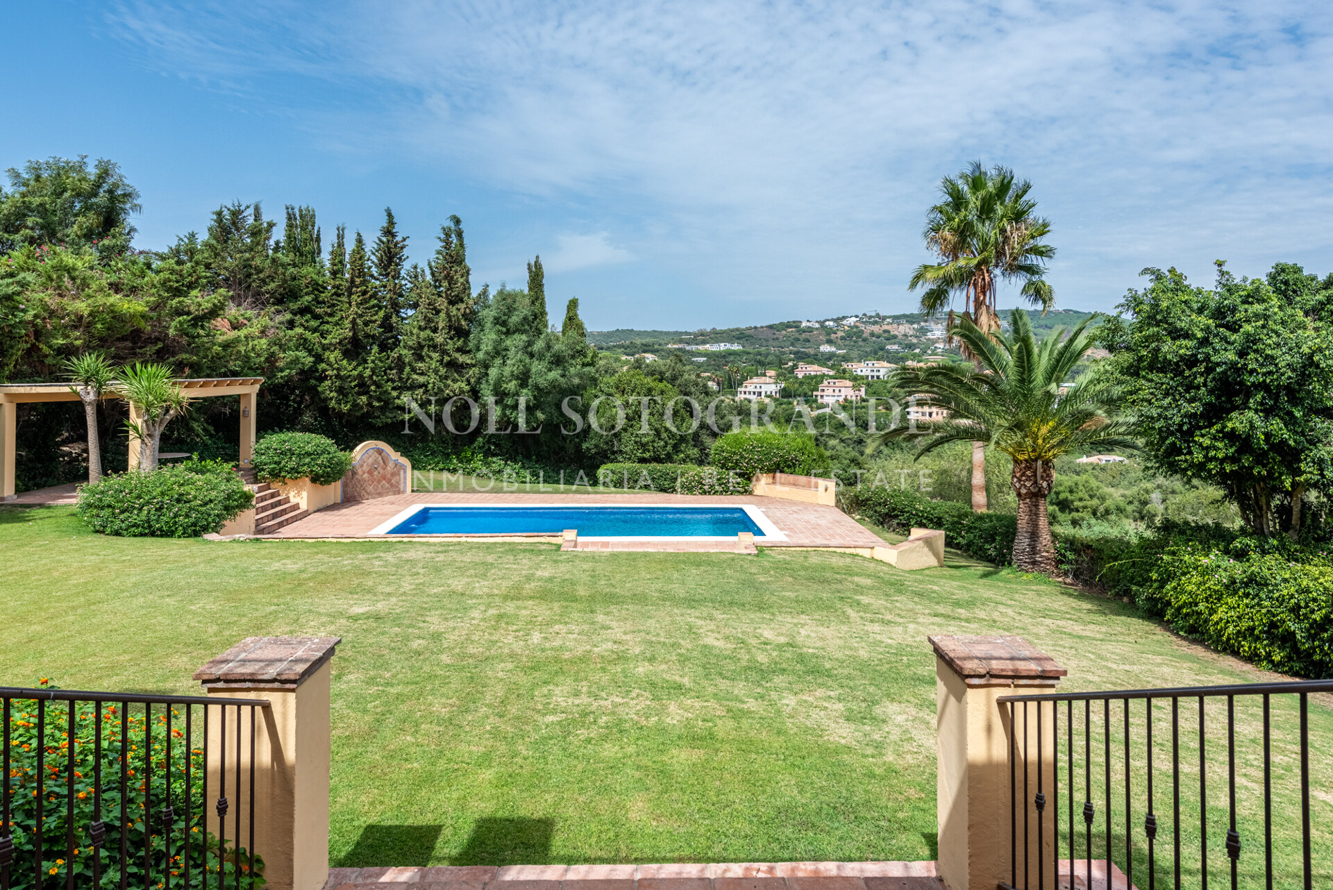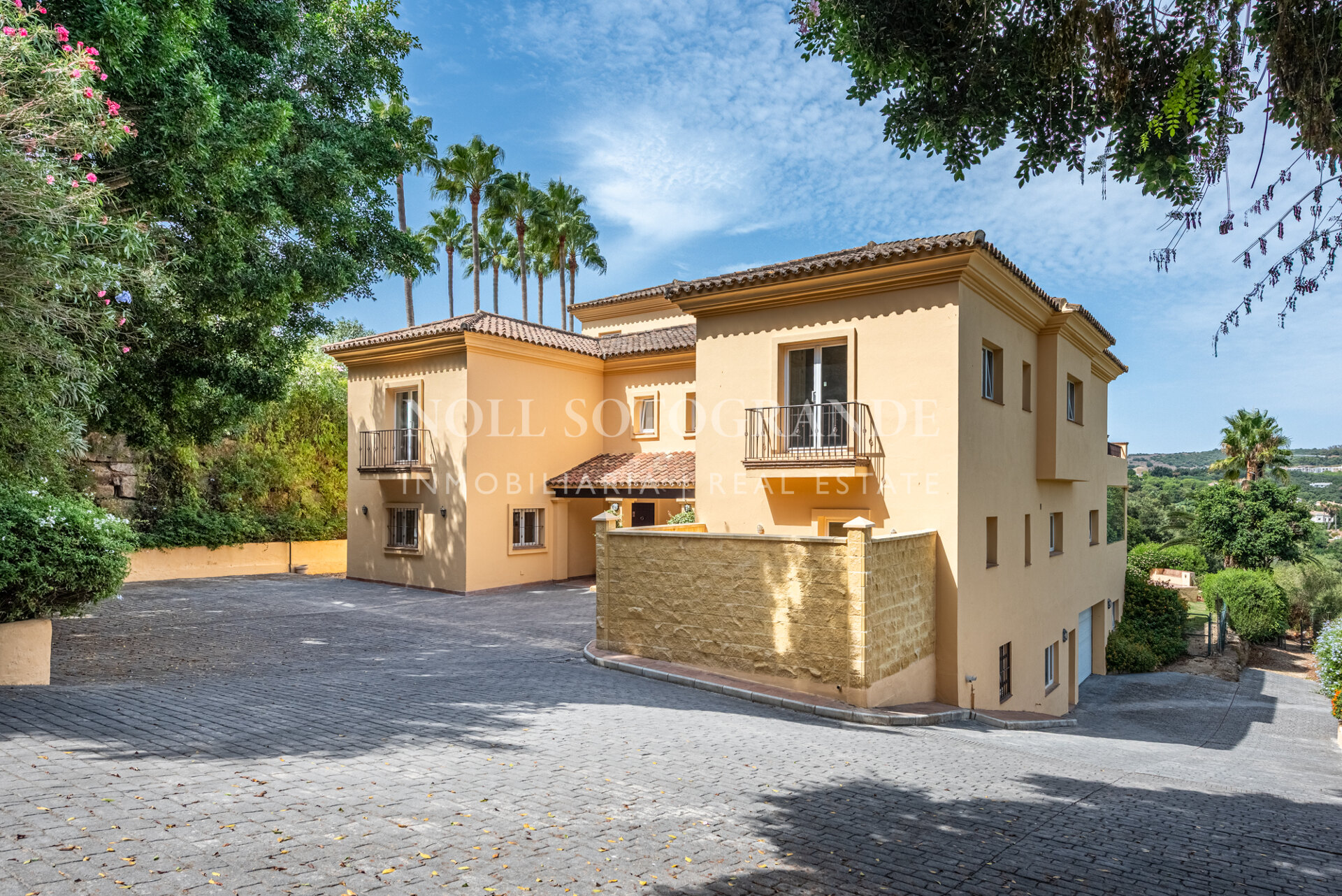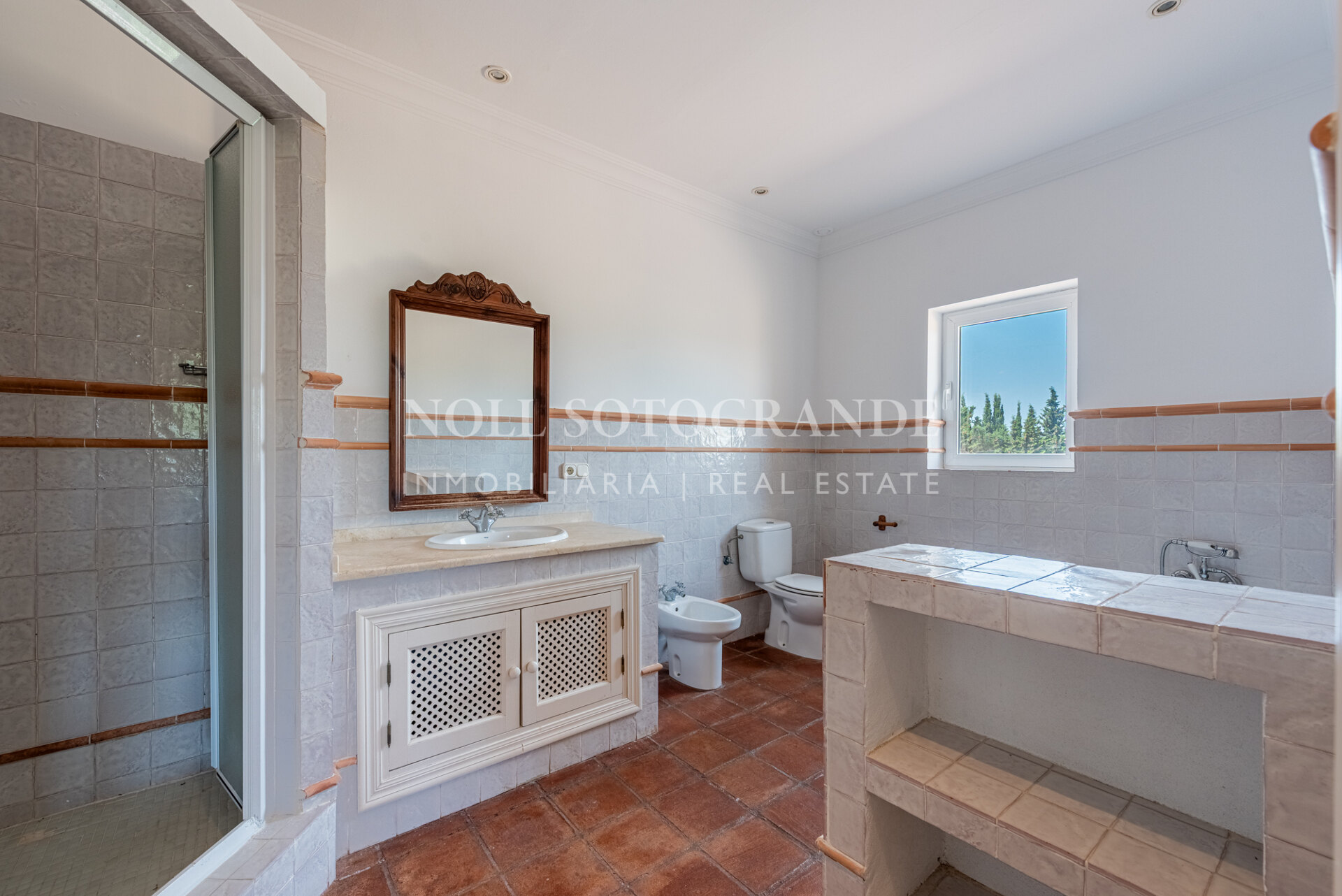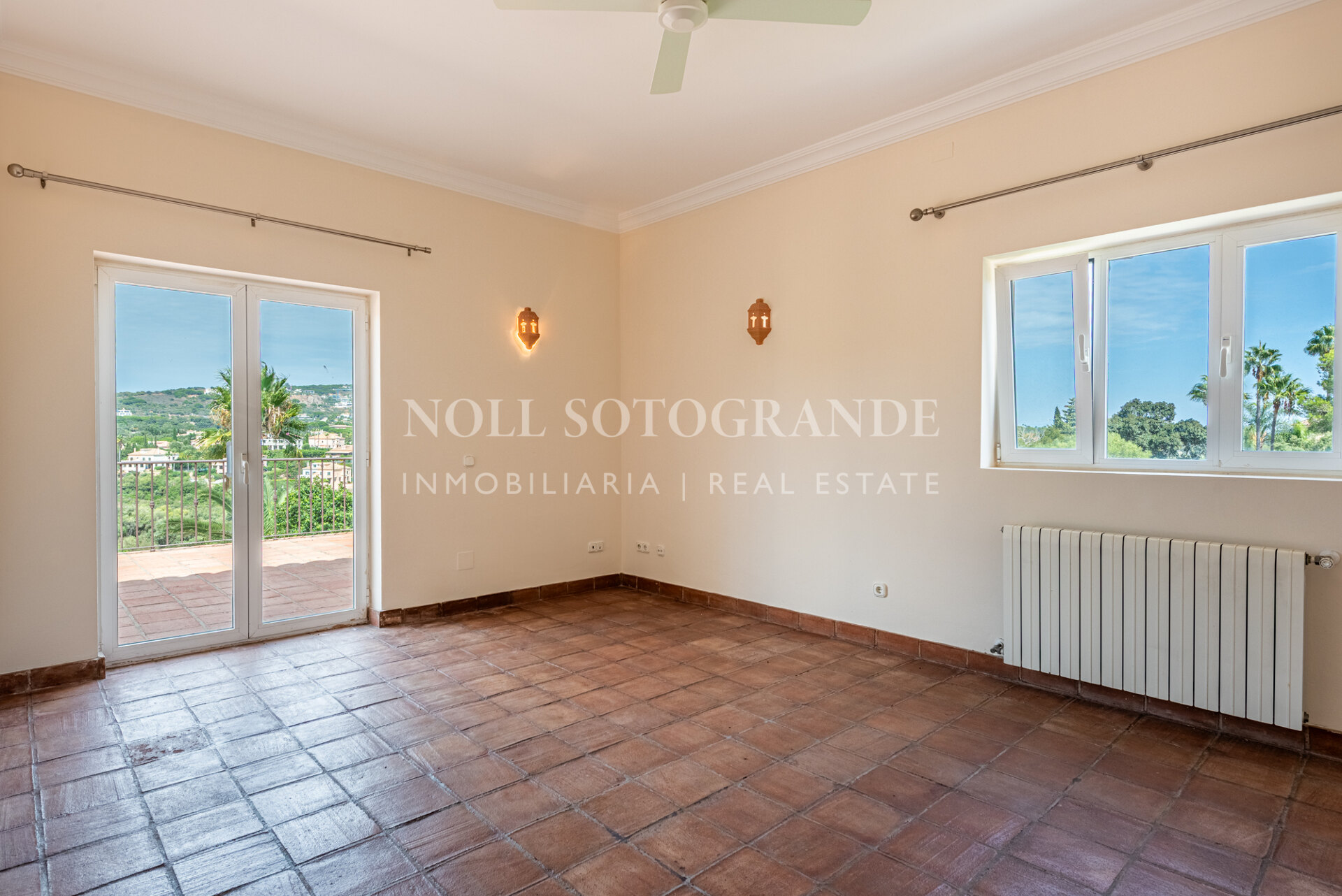 Esta villa de estilo andaluz se encuentra a solo cinco minutos en coche del Colegio Internacional, el campo de golf de Valderrama y el Hotel SO. Cuenta con seis dormitorios y cinco baños, y destaca por sus luminosos interiores, suelos de terracota y dos acogedoras chimeneas. El interior de la casa es luminoso y acogedor.