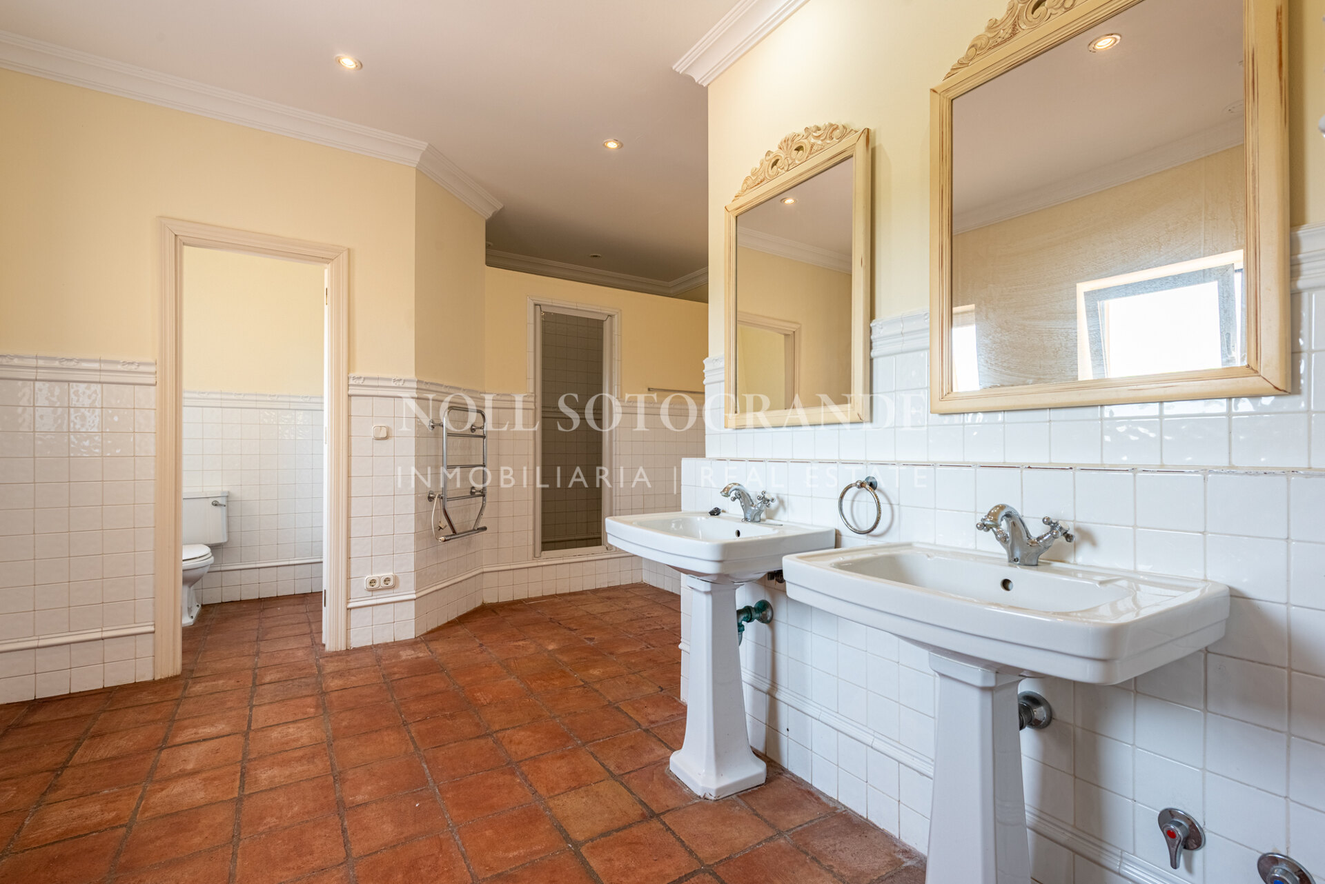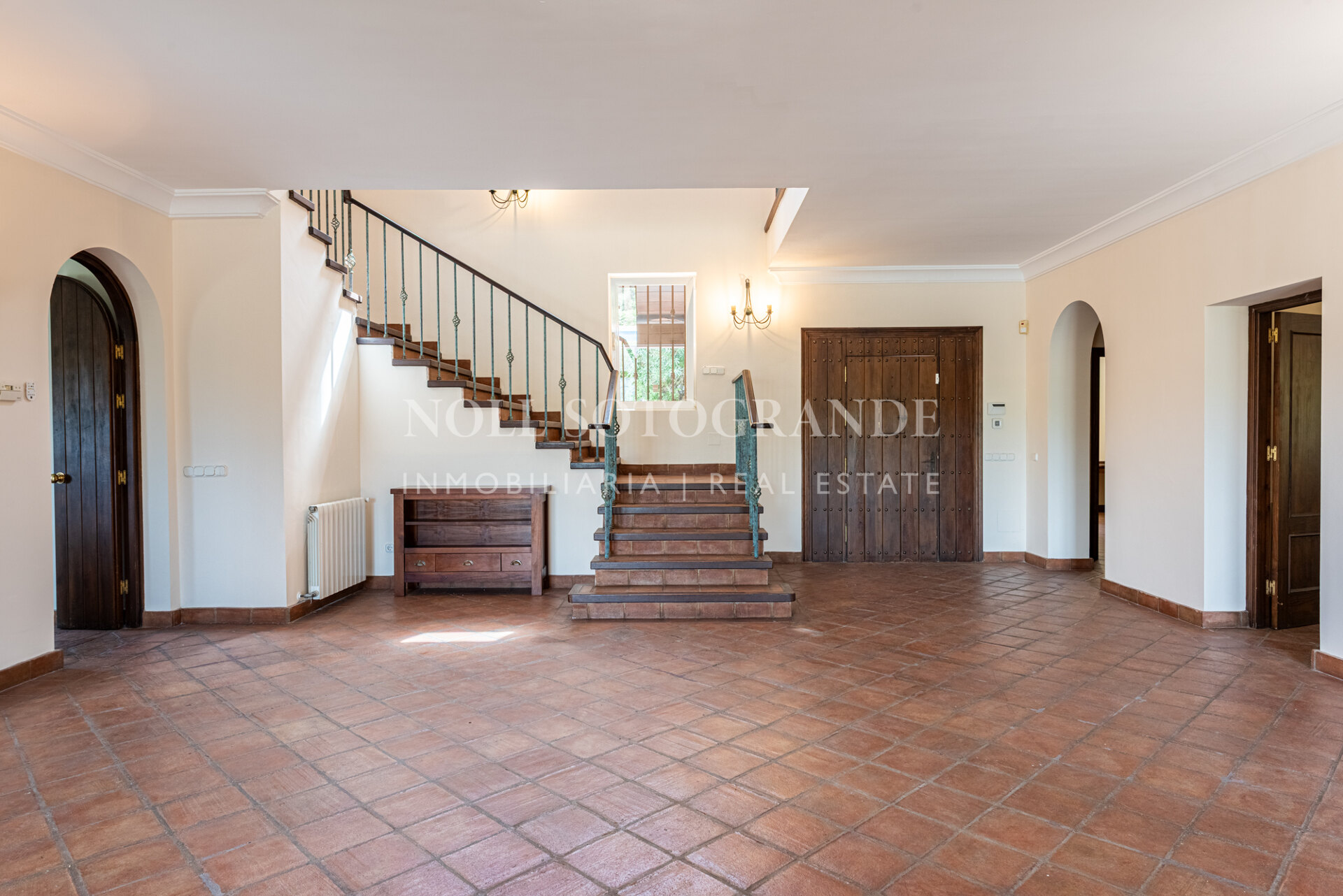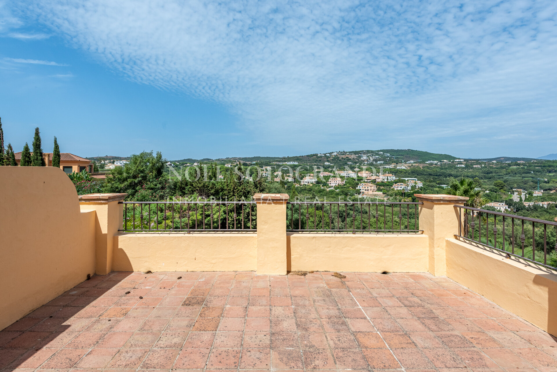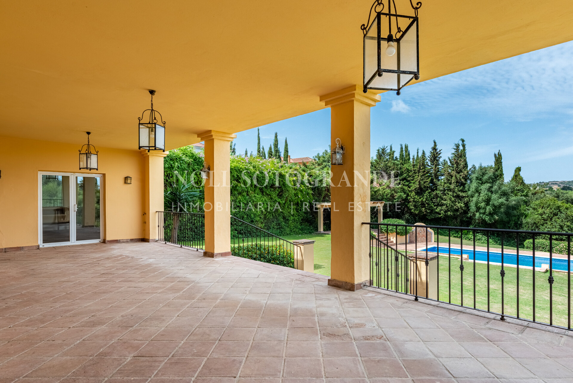 Esta villa de estilo andaluz se encuentra a solo cinco minutos en coche del Colegio Internacional, el campo de golf de Valderrama y el Hotel SO. Cuenta con seis dormitorios y cinco baños, y destaca por sus luminosos interiores, suelos de terracota y dos acogedoras chimeneas. El interior de la casa es luminoso y acogedor.