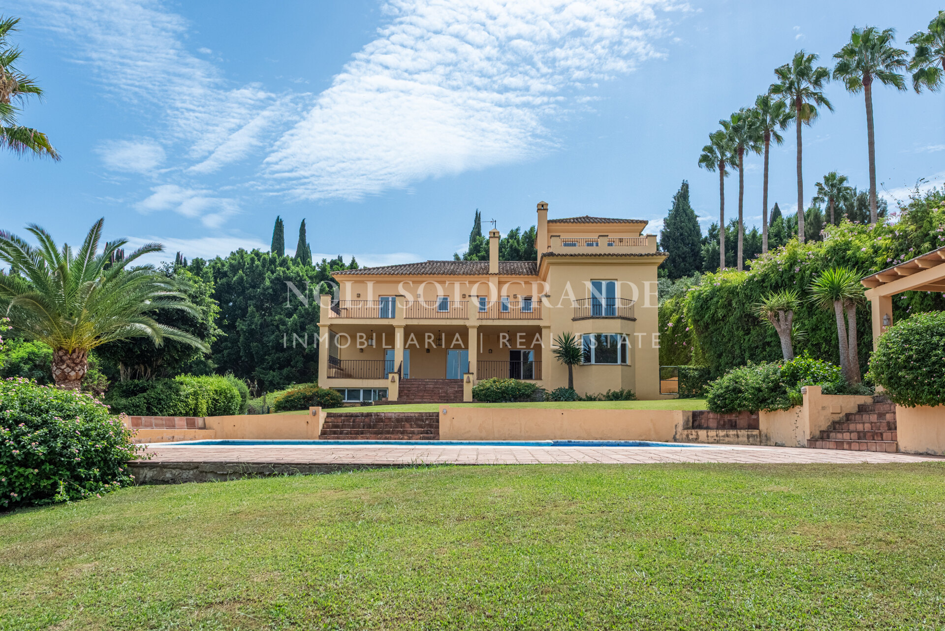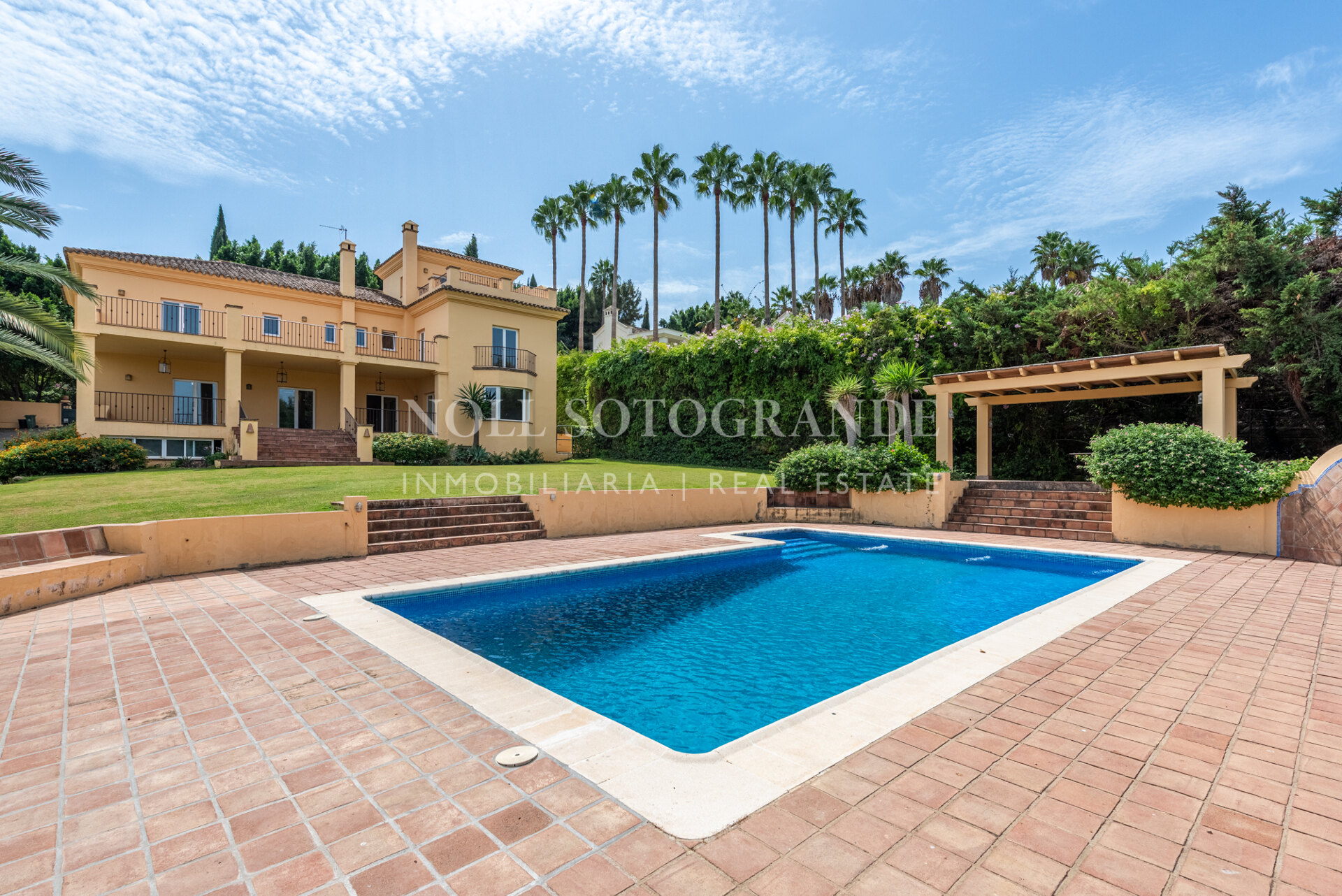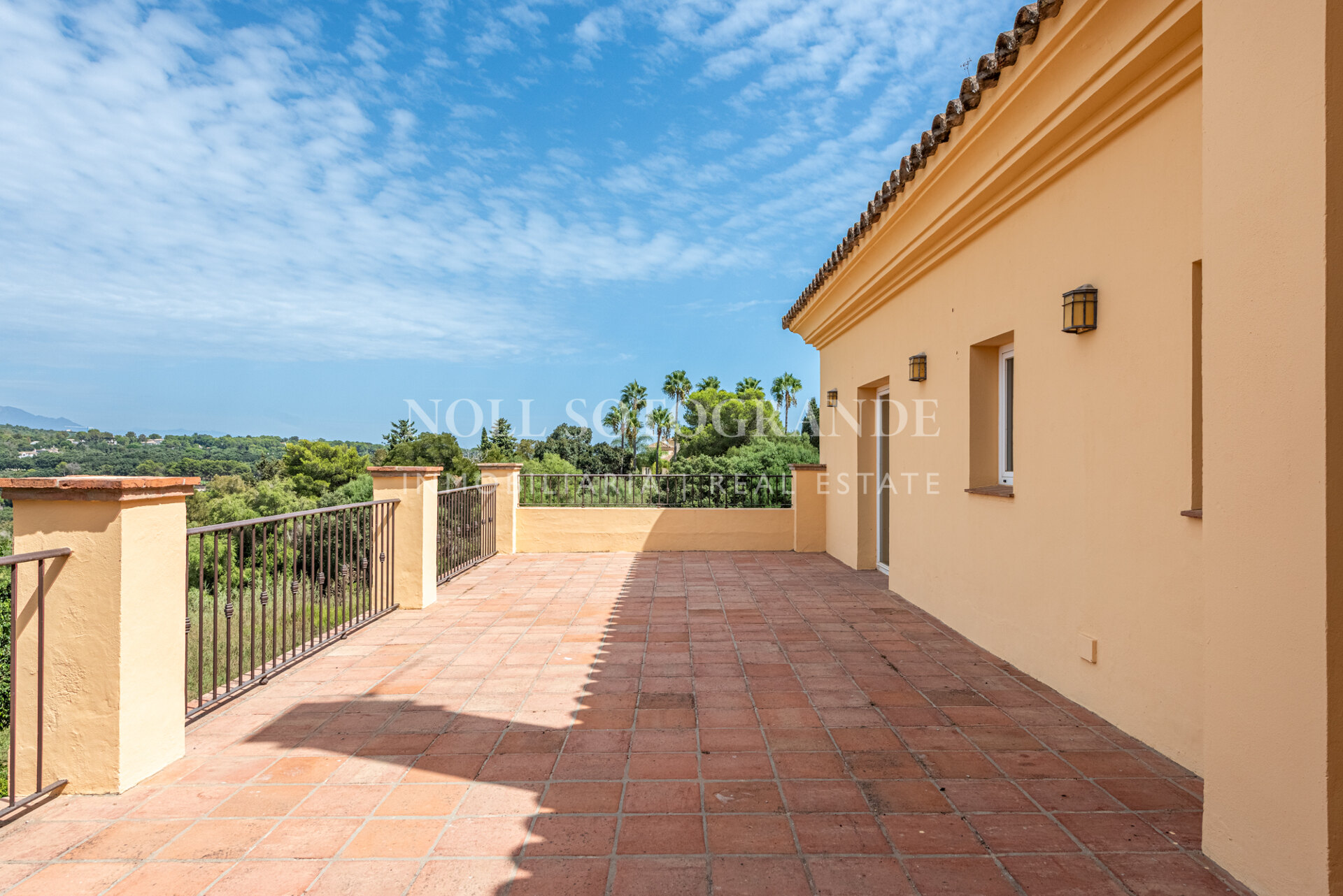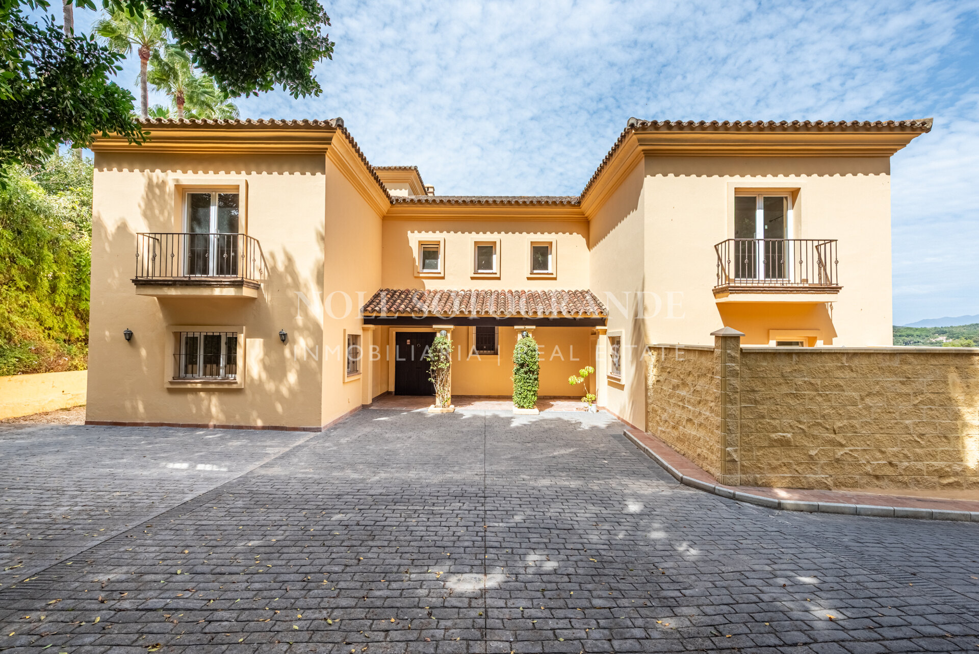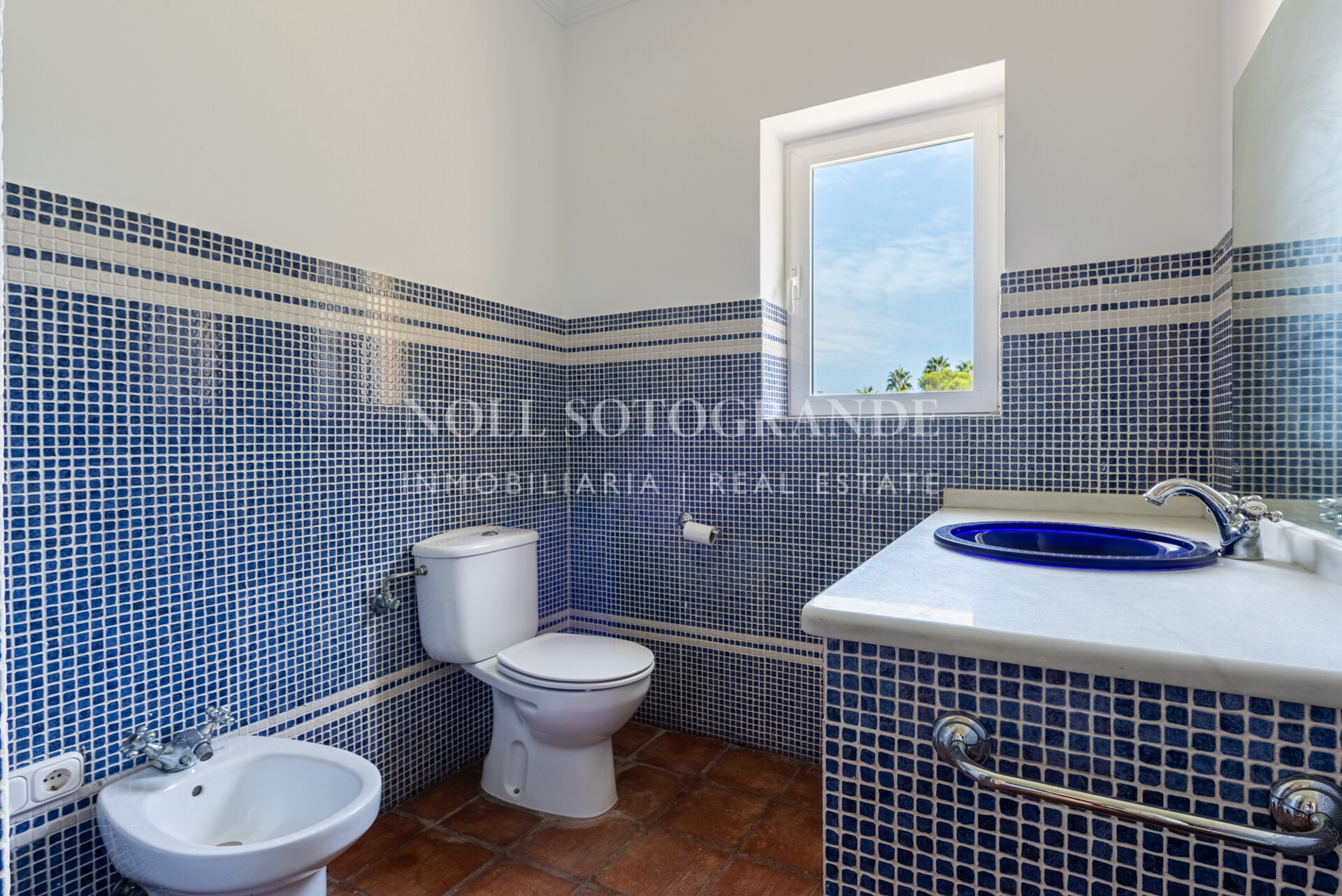 Esta villa de estilo andaluz se encuentra a solo cinco minutos en coche del Colegio Internacional, el campo de golf de Valderrama y el Hotel SO. Cuenta con seis dormitorios y cinco baños, y destaca por sus luminosos interiores, suelos de terracota y dos acogedoras chimeneas. El interior de la casa es luminoso y acogedor.