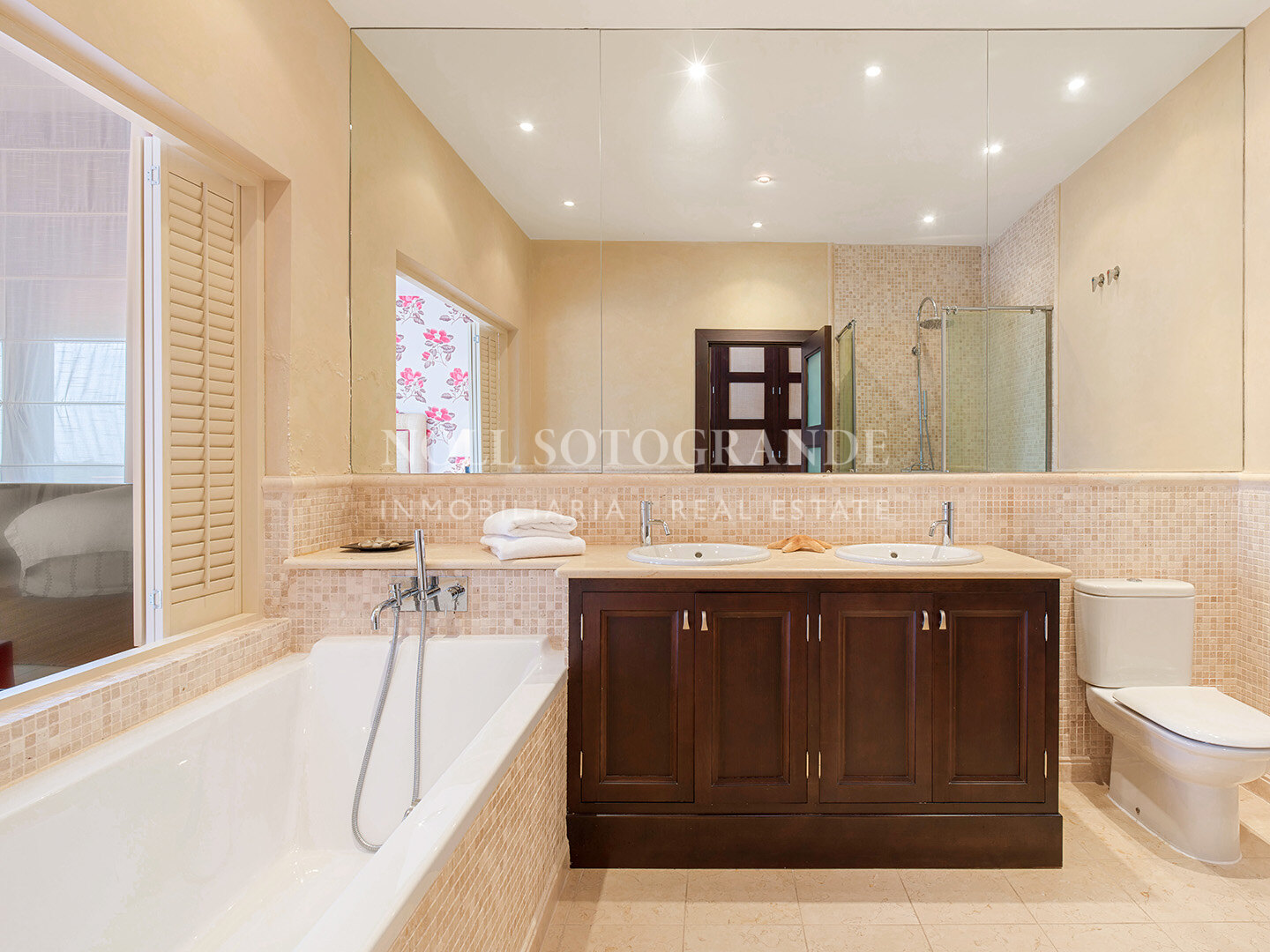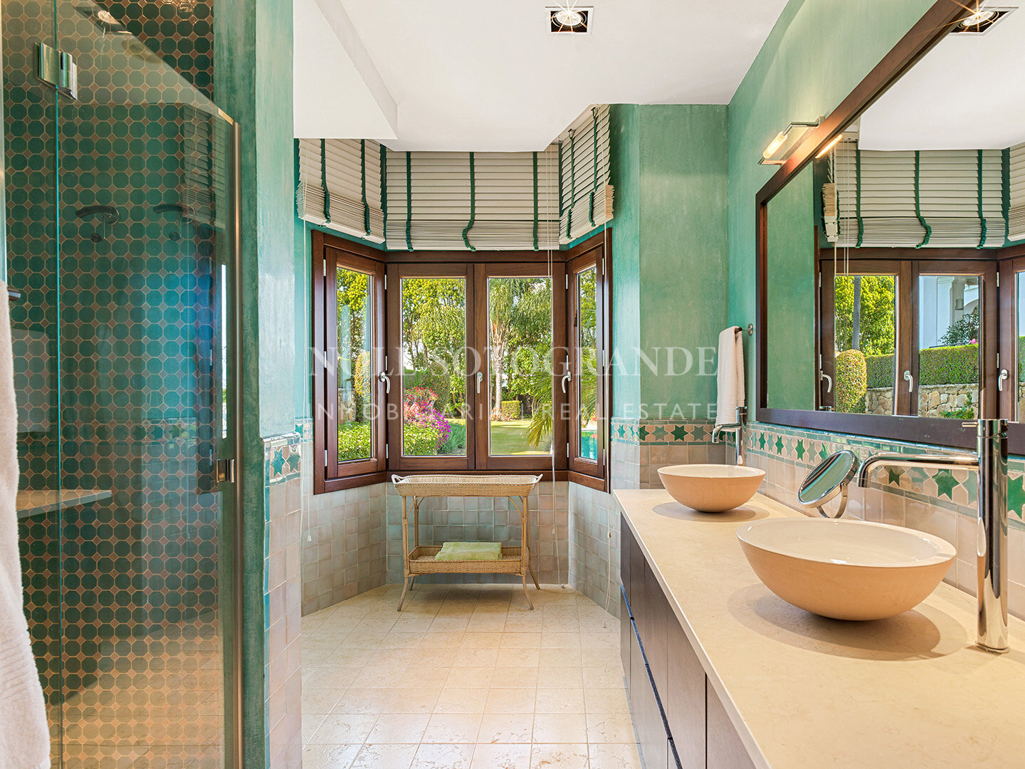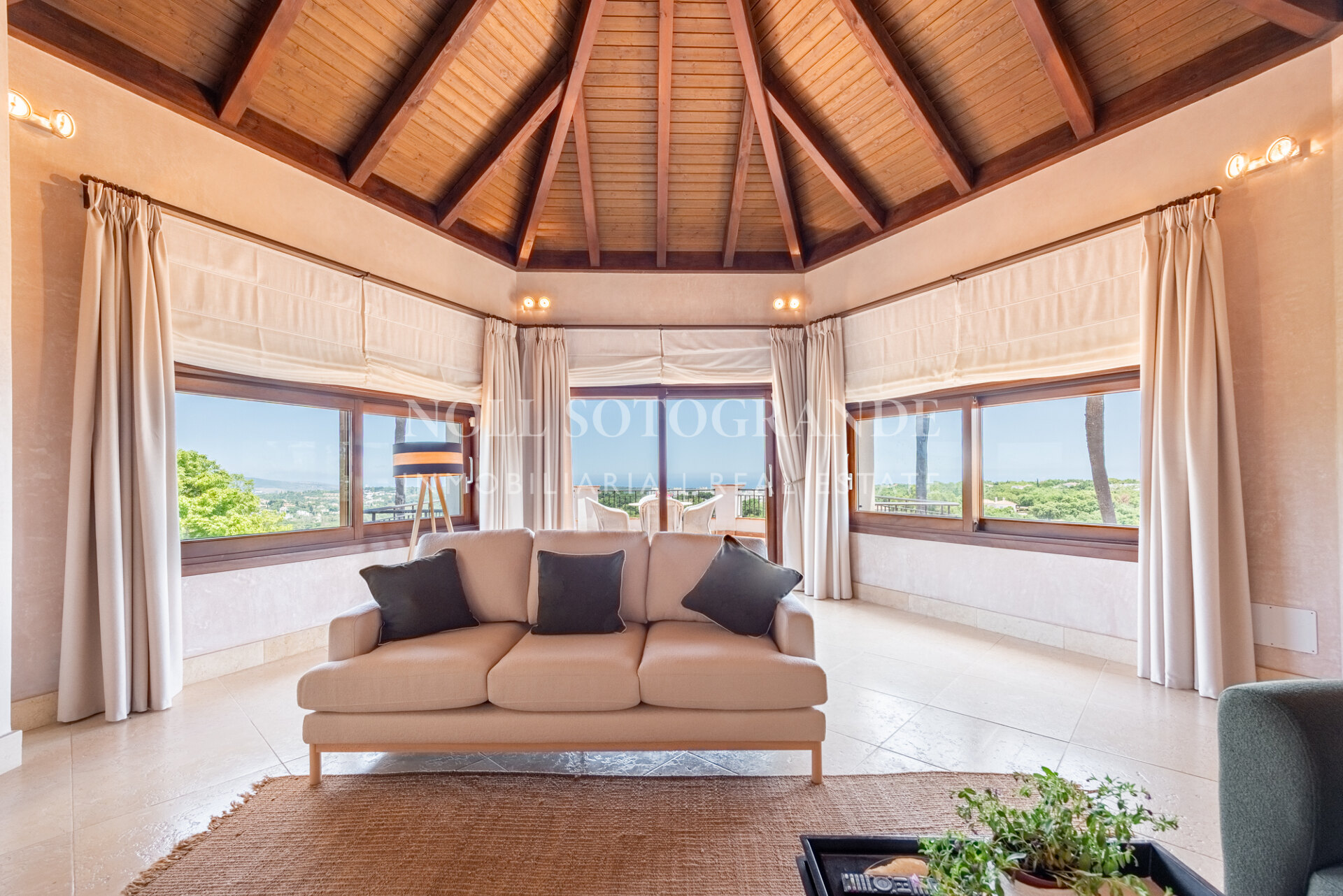 Descubra esta lujosa villa en la Zona G de Sotogrande Alto, que ofrece impresionantes vistas al mar. Esta propiedad tiene un diseño moderno con amplias terrazas un jardín. La villa incluye seis dormitorios en suite, proporcionando un amplio espacio para la familia y los invitados. En el interior, la villa ofrece tres salas de recepción, un gimnasio, sala de cine y un estudio. La planta baja incluye un gran salón, un comedor, una sala de estudio y una cocina totalmente equipada. El sótano alberga un lavadero, un gimnasio, una sala de cine y un apartamento independiente. La primera planta cuenta con una espaciosa suite principal con vestidor, zona de estar y una gran terraza para disfrutar de las vistas. Otras características incluyen una casa de invitados independiente, calefacción por suelo radiante, aire acondicionado y seguridad las 24 horas. La villa también ofrece excelentes espacios de entretenimiento al aire libre, incluyendo una gran piscina y zona de barbacoa.