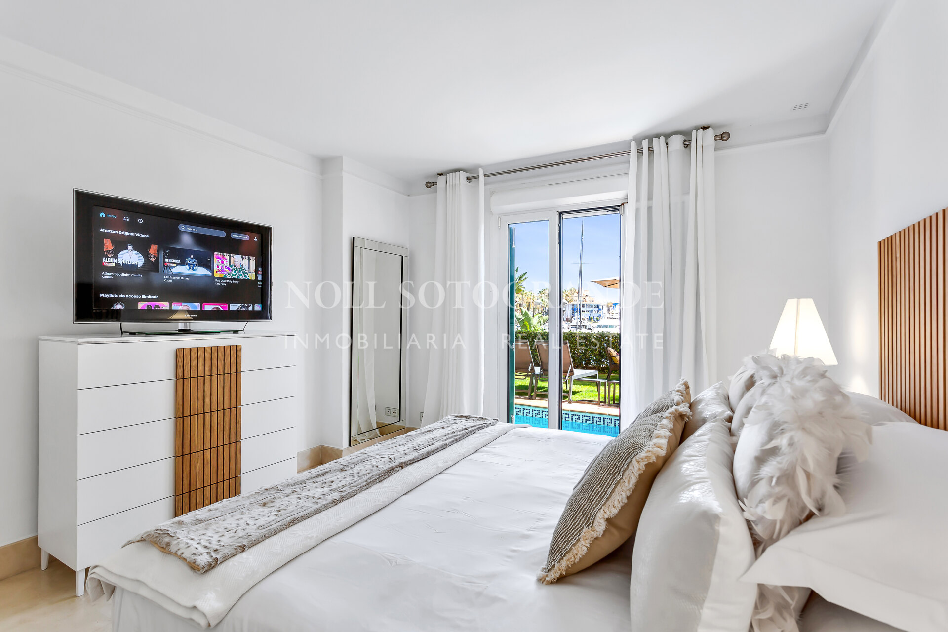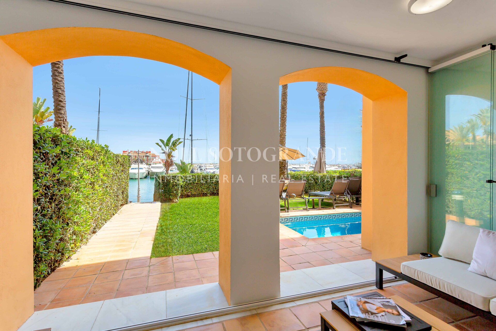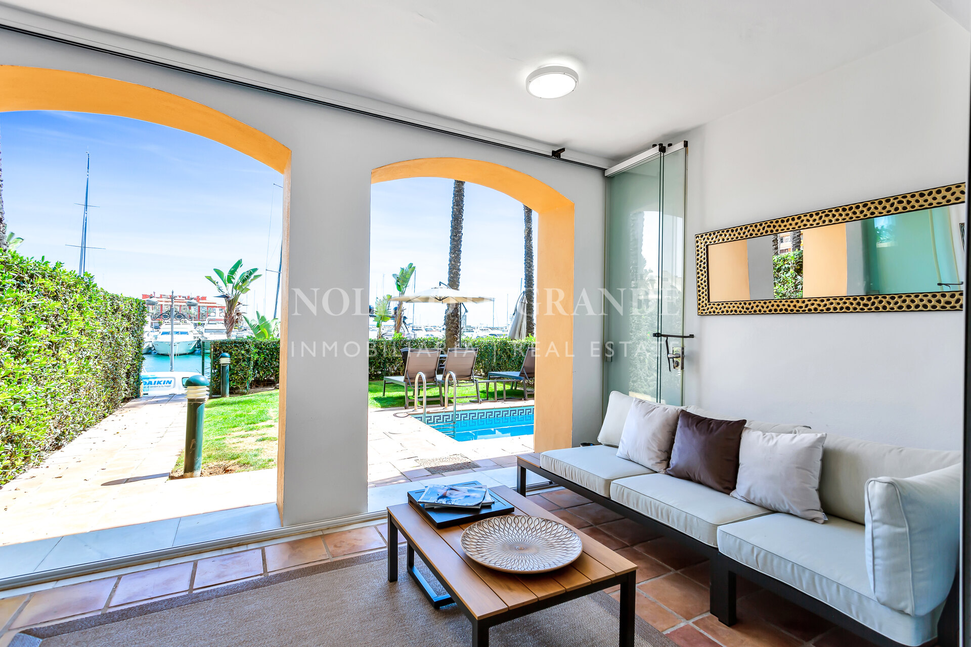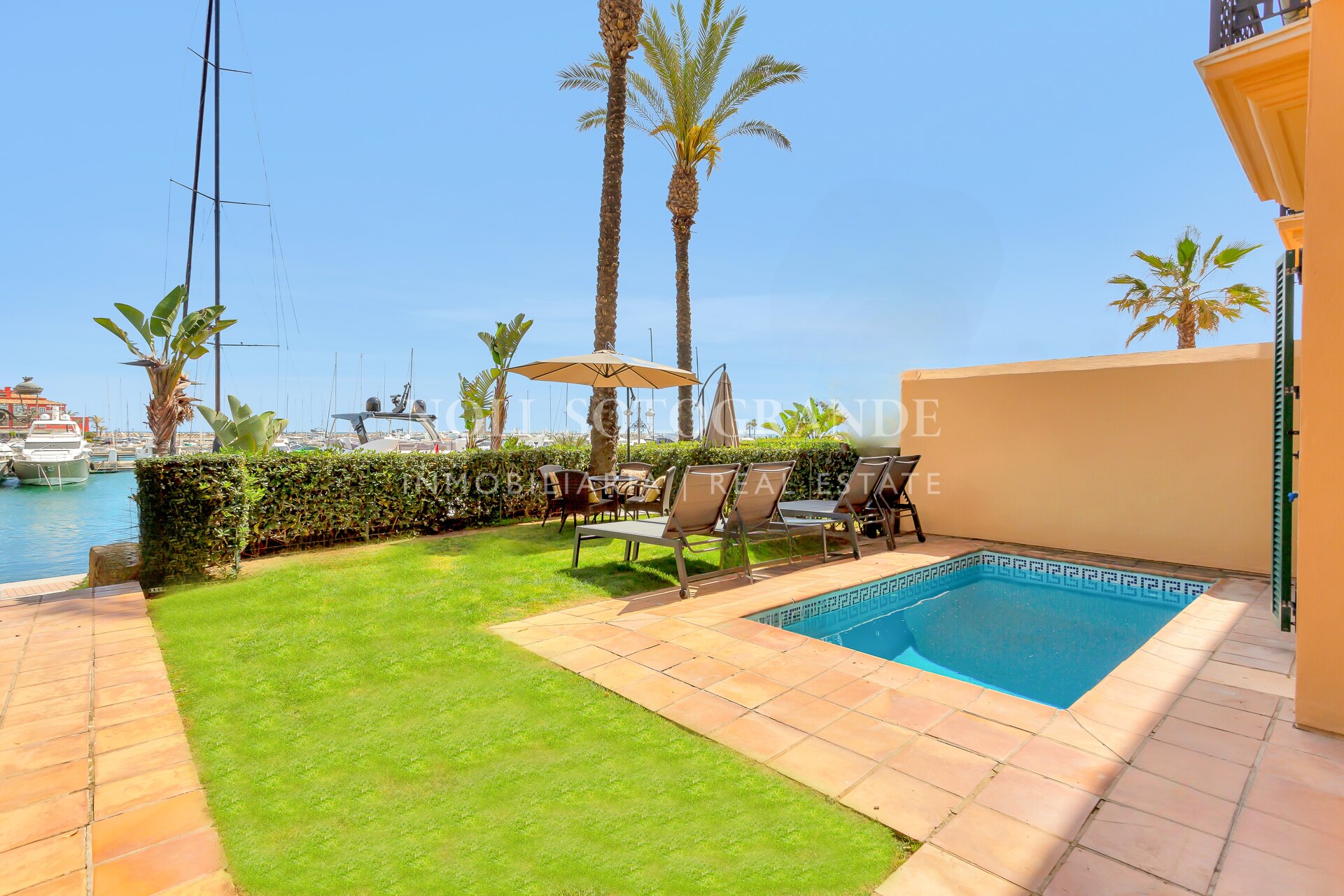 Esta exquisita propiedad está rodeada de una impresionante arquitectura, decoración vibrante y colores ricos que complementan las vistas ininterrumpidas de la marina y el océano. Pudiendo elegir entre relajarte en la terraza o darte un refrescante baño en la piscina privada, esta hermosa joya es el lugar perfecto para relajarse. En el interior, el apartamento cuenta con dos amplias habitaciones, cada una equipada con televisores inteligentes. La cocina totalmente equipada cuenta con modernas comodidades de alta calidad que hacen que la estancia sea libre de preocupaciones y disfrutada. La zona de estar es un salón de planta abierta, completo con cómodos muebles y una mesa de comedor de seis plazas. La zona de estar y la habitación principal en suite se abren a un jardín donde se pueden disfrutar de las impresionantes vistas de los lujosos yates que entran y salen de la bahía.