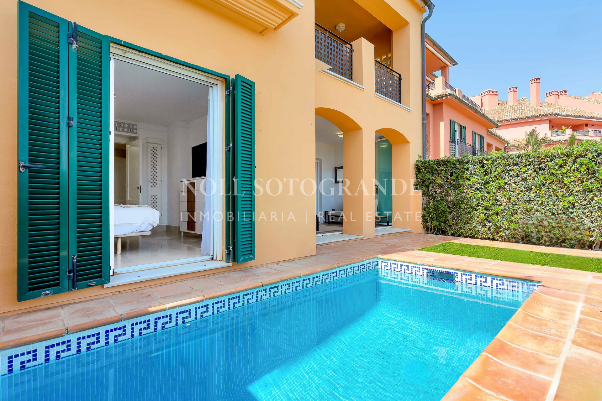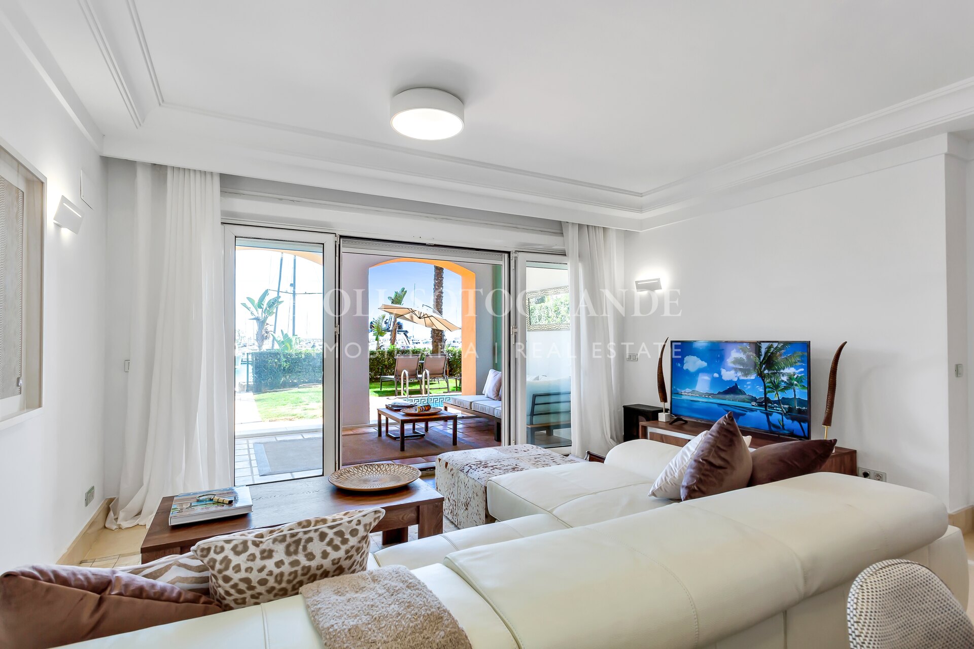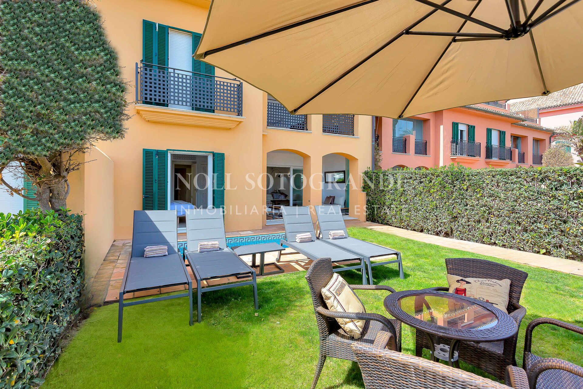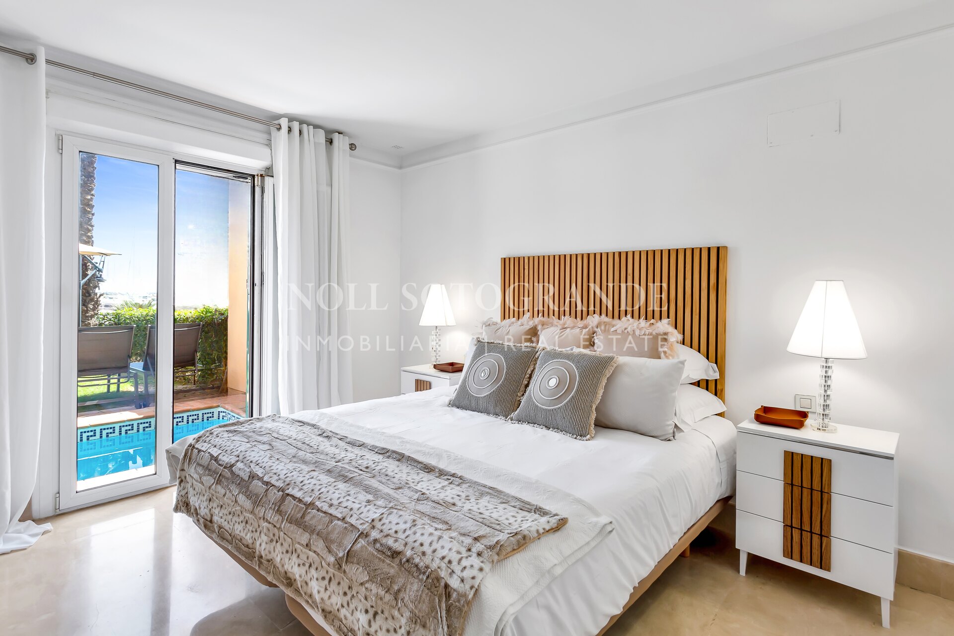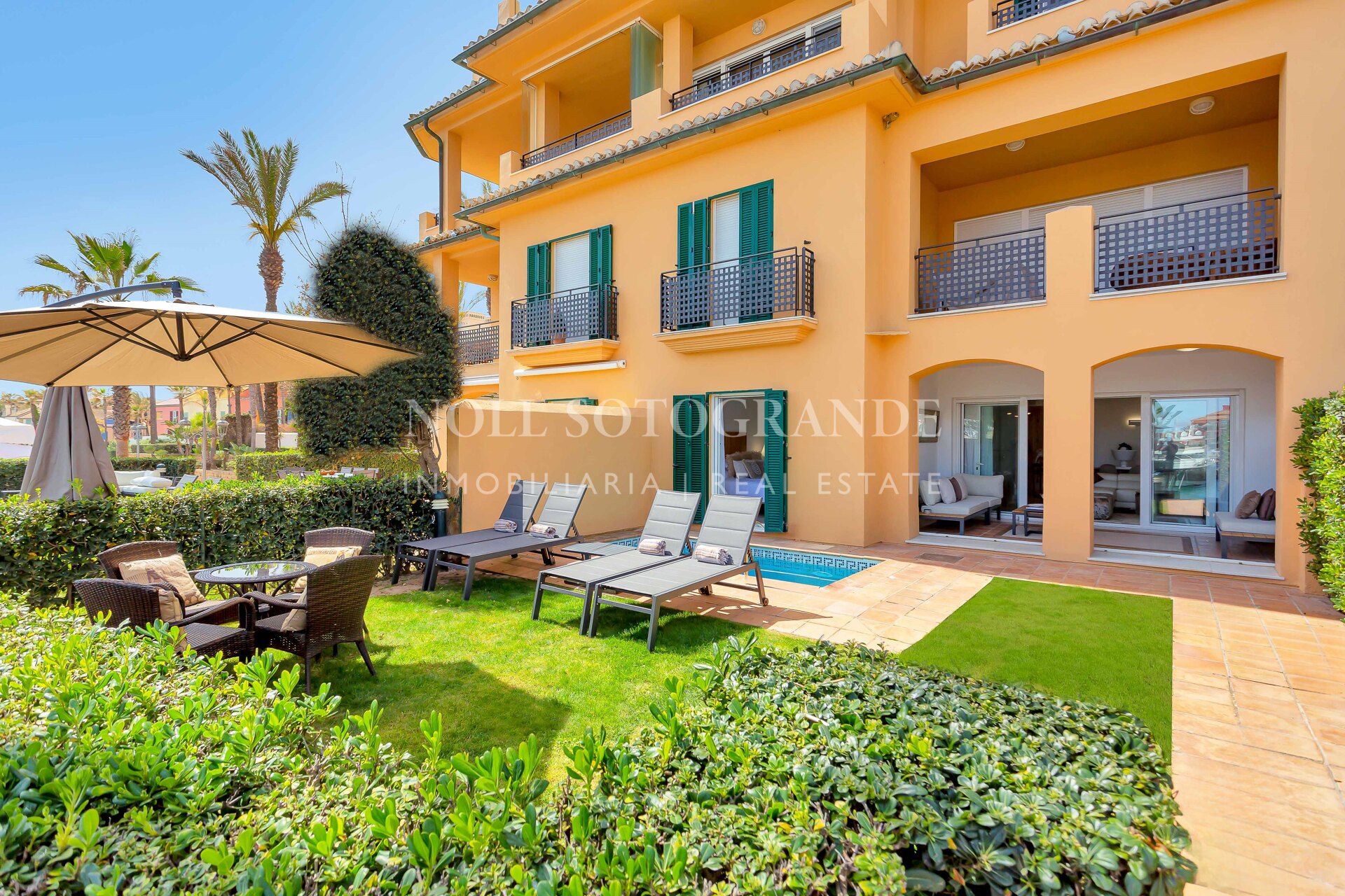 Esta exquisita propiedad está rodeada de una impresionante arquitectura, decoración vibrante y colores ricos que complementan las vistas ininterrumpidas de la marina y el océano. Pudiendo elegir entre relajarte en la terraza o darte un refrescante baño en la piscina privada, esta hermosa joya es el lugar perfecto para relajarse. En el interior, el apartamento cuenta con dos amplias habitaciones, cada una equipada con televisores inteligentes. La cocina totalmente equipada cuenta con modernas comodidades de alta calidad que hacen que la estancia sea libre de preocupaciones y disfrutada. La zona de estar es un salón de planta abierta, completo con cómodos muebles y una mesa de comedor de seis plazas. La zona de estar y la habitación principal en suite se abren a un jardín donde se pueden disfrutar de las impresionantes vistas de los lujosos yates que entran y salen de la bahía.