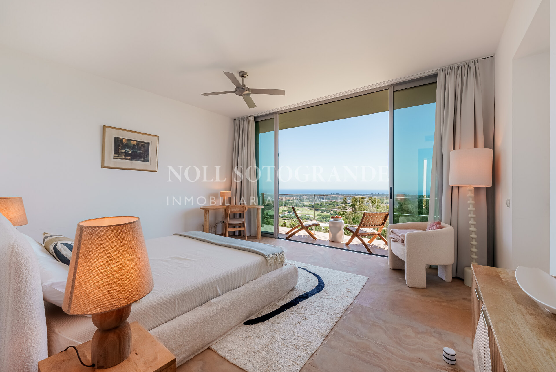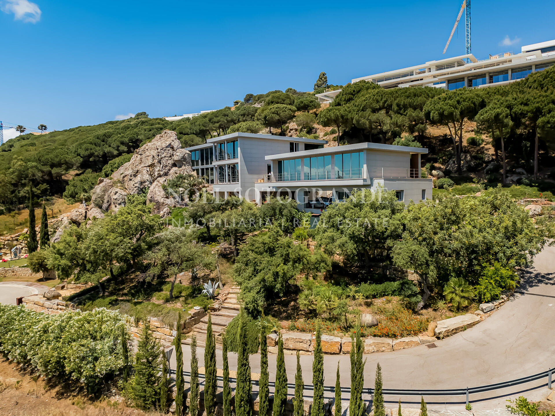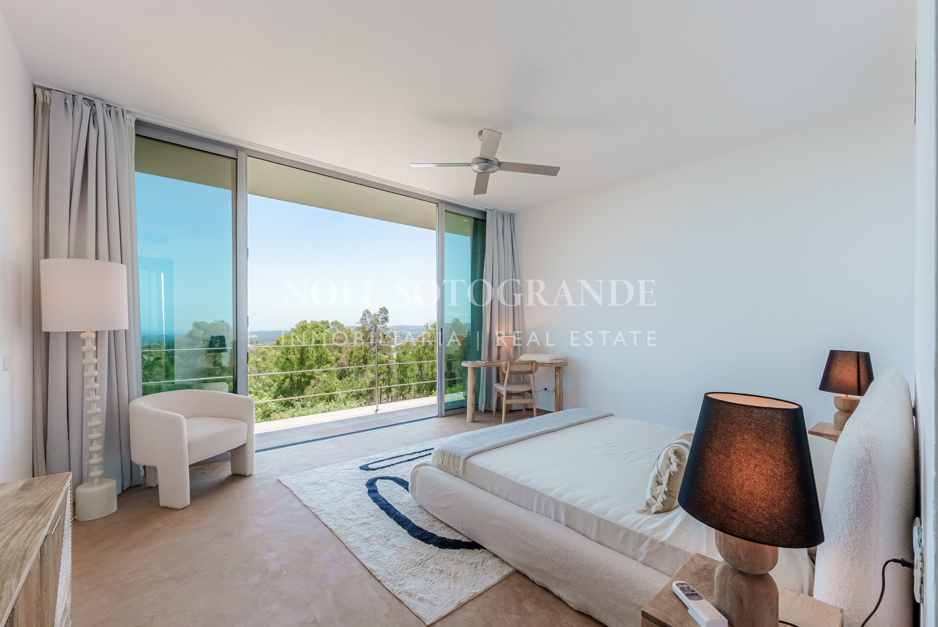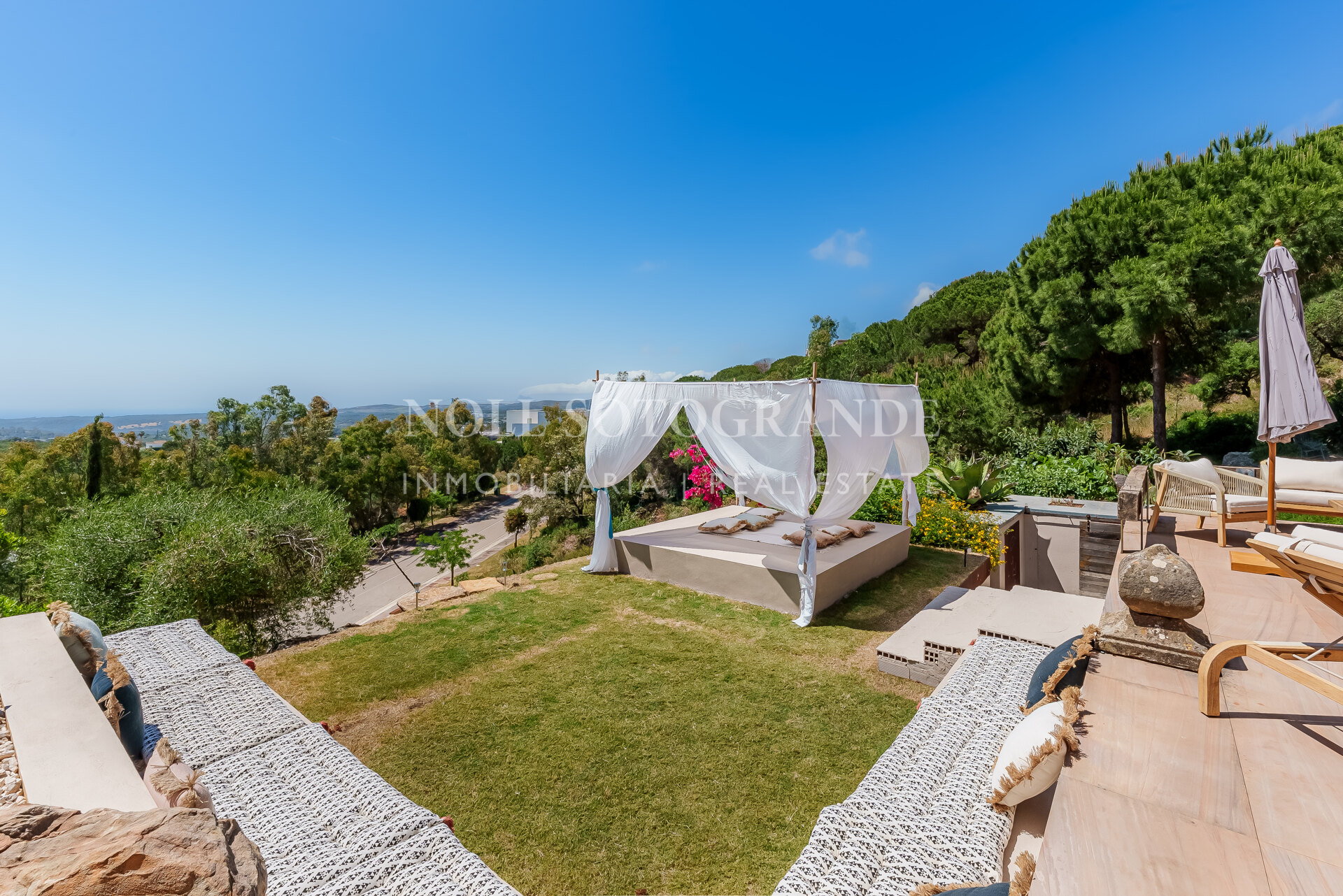 Villa Bond further provides an outdoor pool, staff accommodations, and a spacious multi-car garage. A fun and secure playground for children lies on the side at the entrance to the property. Equipped with underfloor heating throughout and a solar energy system for hot water, the villa ensures comfort and sustainability, as well as Fibre Optic Internet connection. The unobstructed view of Sotogrande, the sea, the African coast and the Atlas Mountains from almost every room, combined with the originality of the villa design, make this holiday property an experience in a class of its own.
