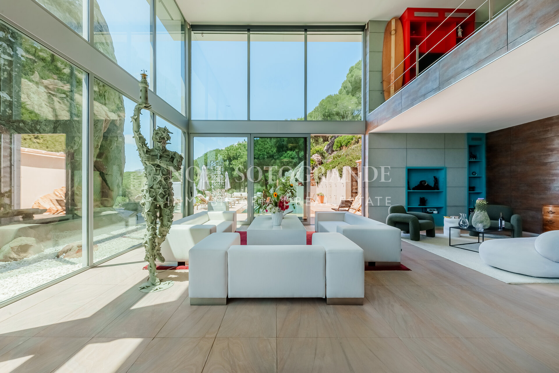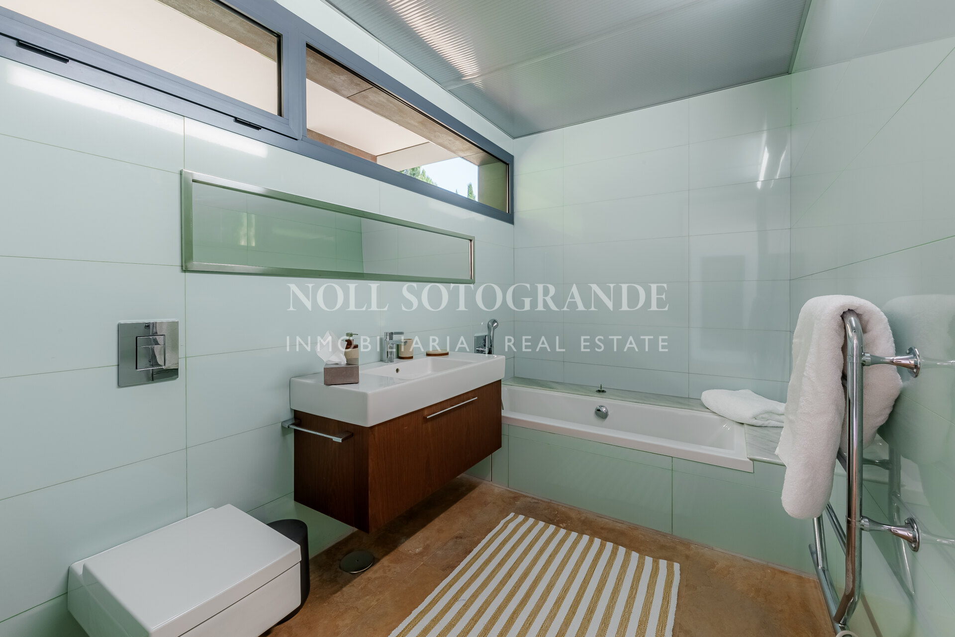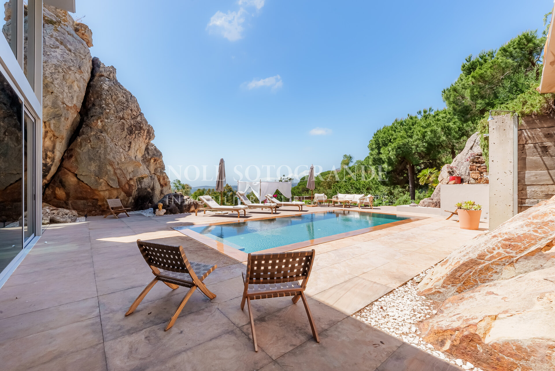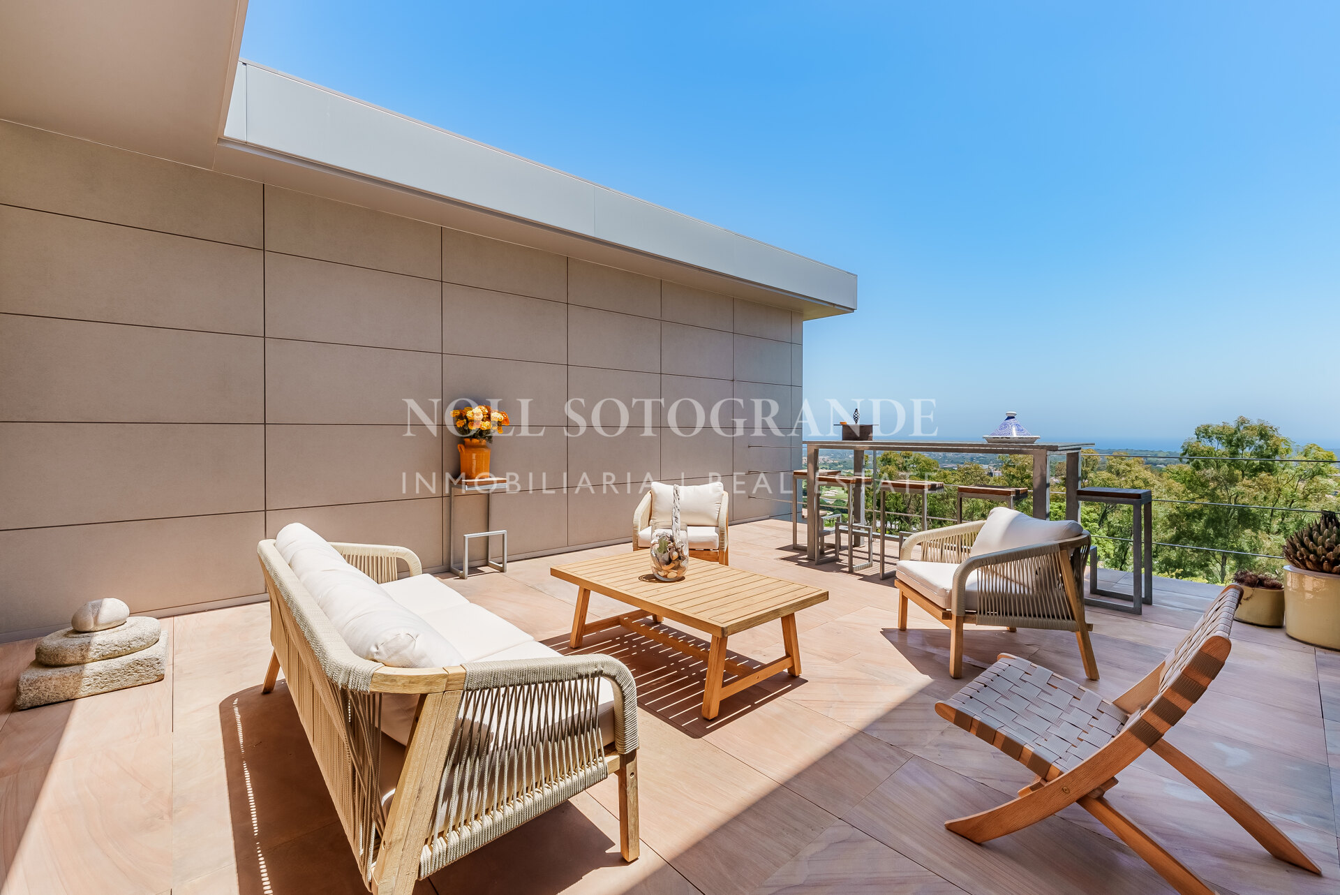 Villa Bond further provides an outdoor pool, staff accommodations, and a spacious multi-car garage. A fun and secure playground for children lies on the side at the entrance to the property. Equipped with underfloor heating throughout and a solar energy system for hot water, the villa ensures comfort and sustainability, as well as Fibre Optic Internet connection. The unobstructed view of Sotogrande, the sea, the African coast and the Atlas Mountains from almost every room, combined with the originality of the villa design, make this holiday property an experience in a class of its own.