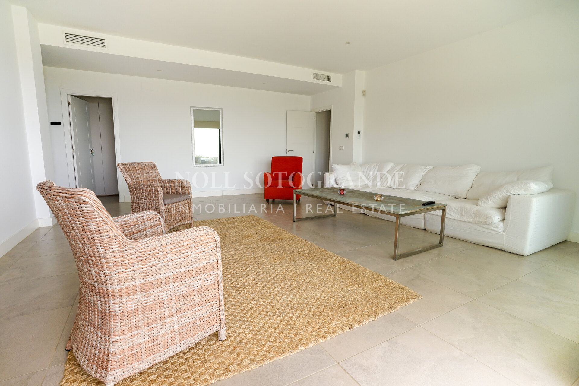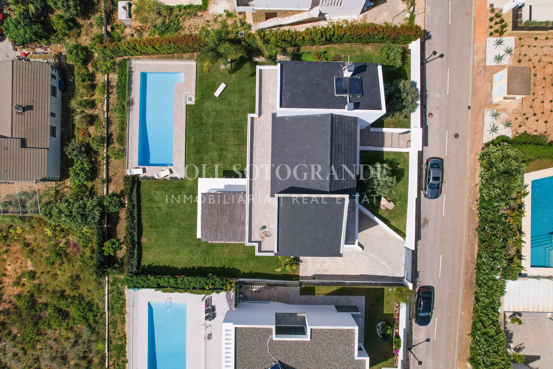 Large terraces of around 150 m² extend the living areas outdoors and overlook the landscaped garden and private swimming pool. The house is equipped with underfloor heating, air conditioning throughout and solar panels for hot water. The gated resort provides additional security and the property is located just minutes from the beach, Alcaidesa Golf Club and around 20 minutes from Gibraltar Airport, making it well suited as a primary residence or holiday home near Sotogrande..