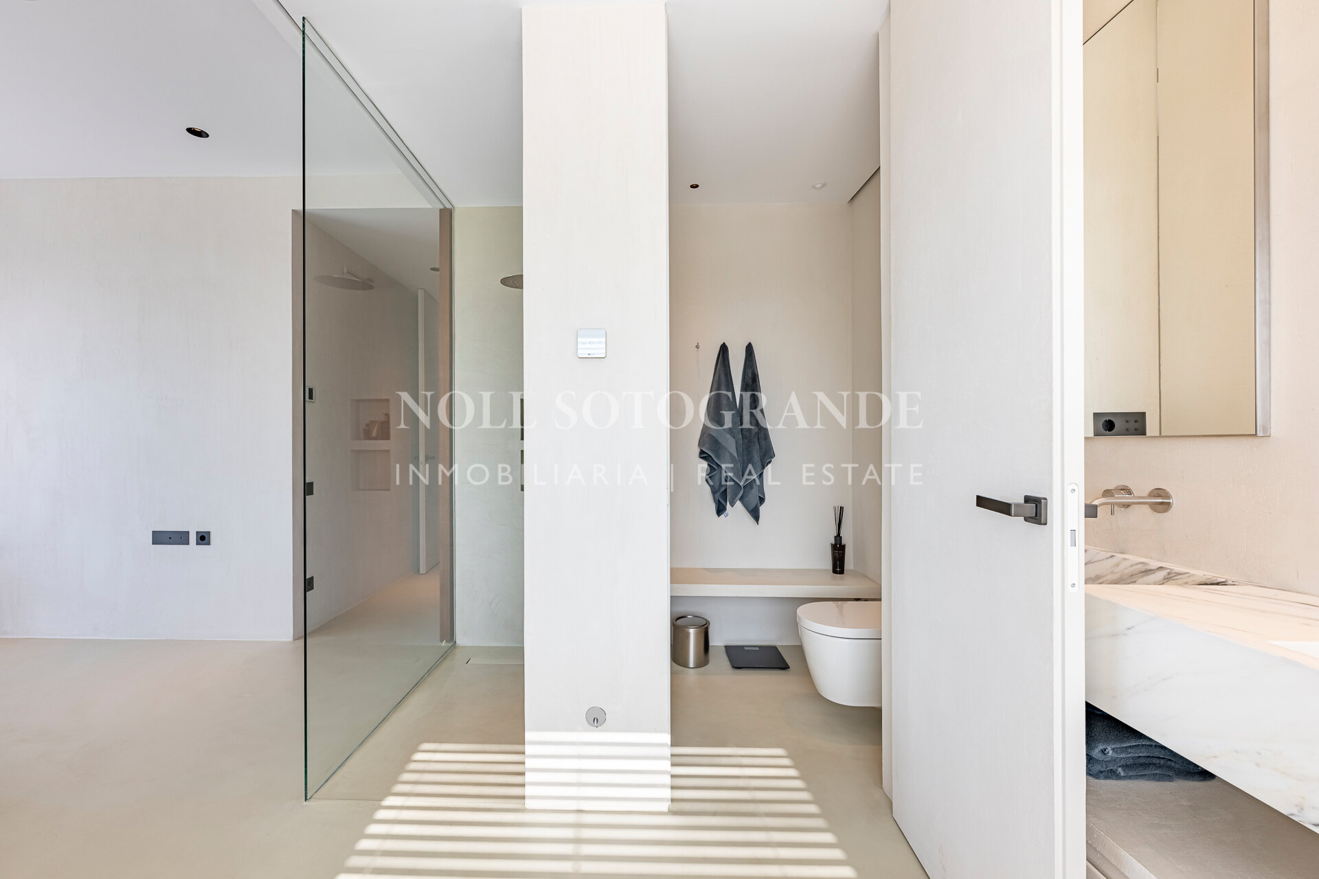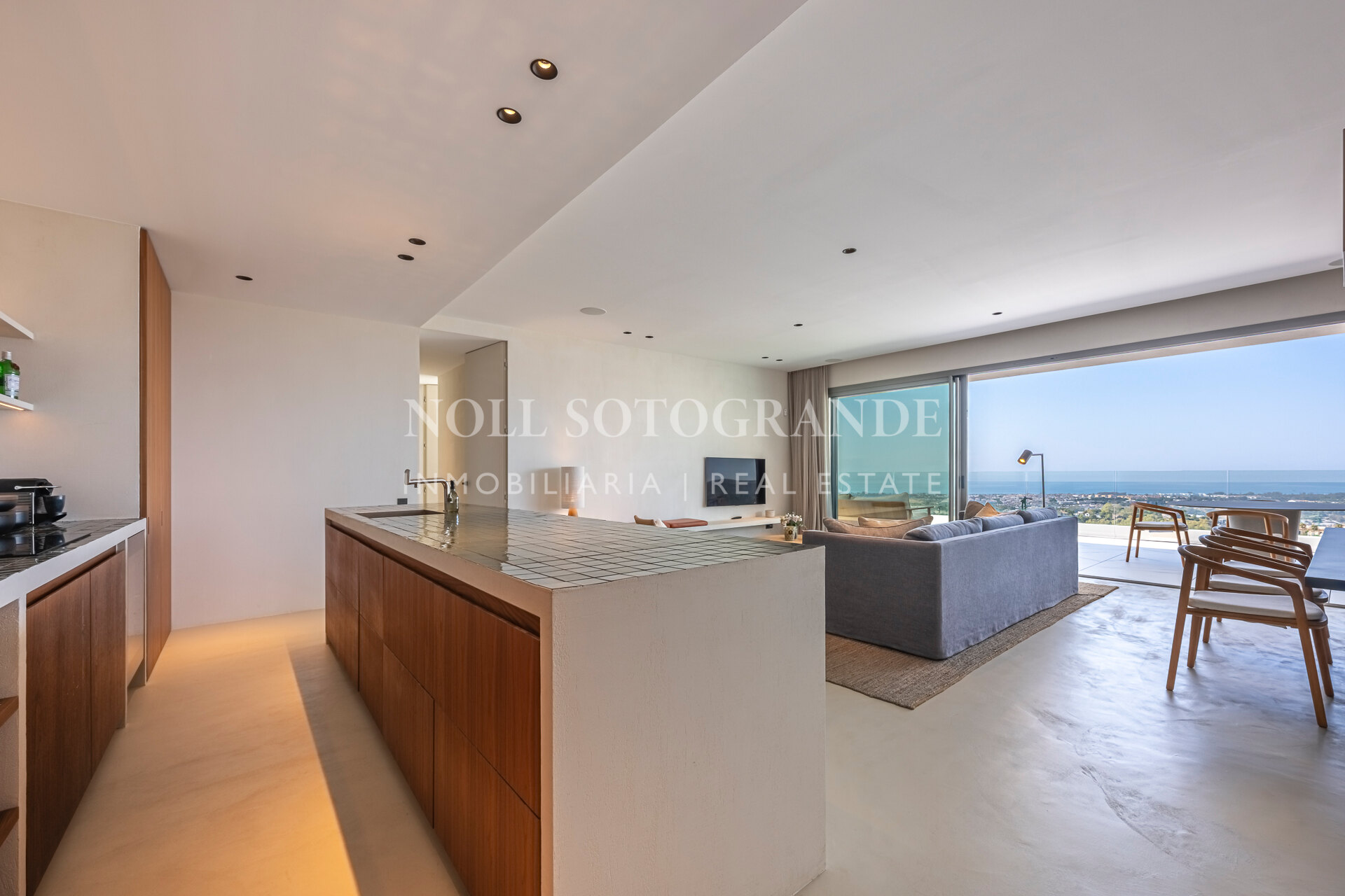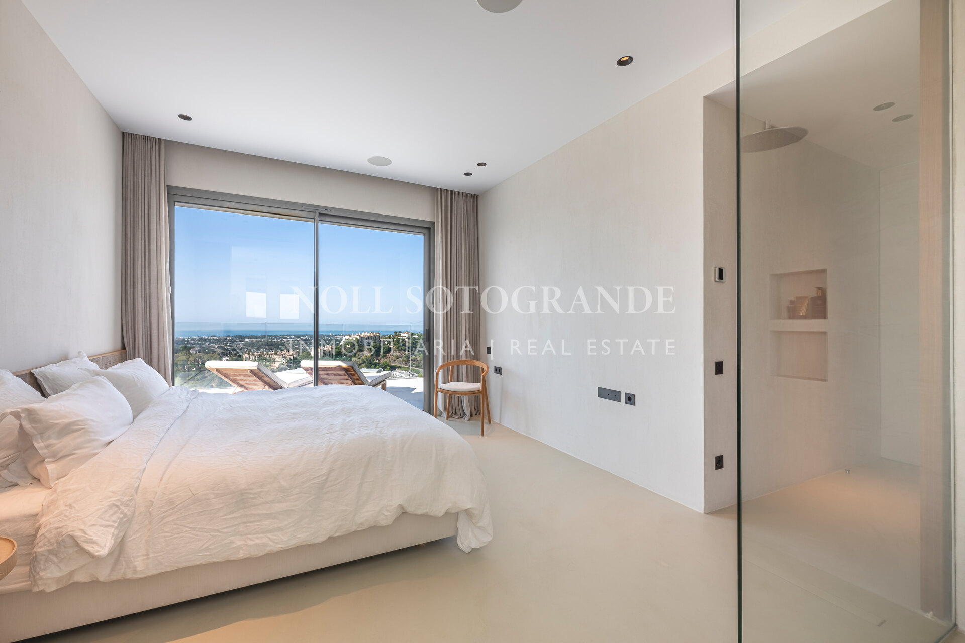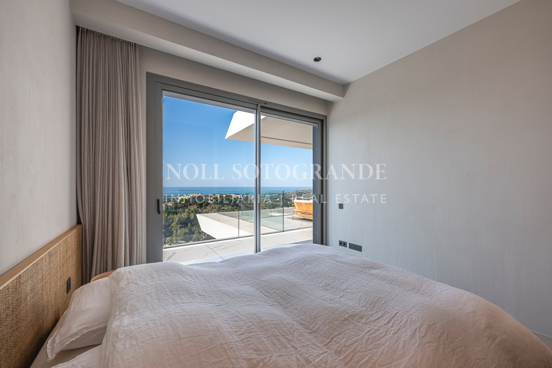 The property is in as-new condition and offers stunning sea views from the moment you enter and is contemporary, elegant with a premium feeling. The spacious open plan living area and high specification Bulthaup kitchen with Miele and Bora Dhu appliances, all leading onto the massive terrace of 61m2, bringing ideal indoor/outdoor feeling and permanent open views. The tastefully presented master bedroom with walk-in wardrobe and en-suite bathroom including an elegant bathtub and a walk-in shower. The two guest bedrooms sharing one bathroom, plus an additional guest toilet and utility room. The huge terrace is the perfect space to entertain whilst you enjoy an al-fresco dinner or sit back and relax, take in the impressive views with a glass of wine in hand!