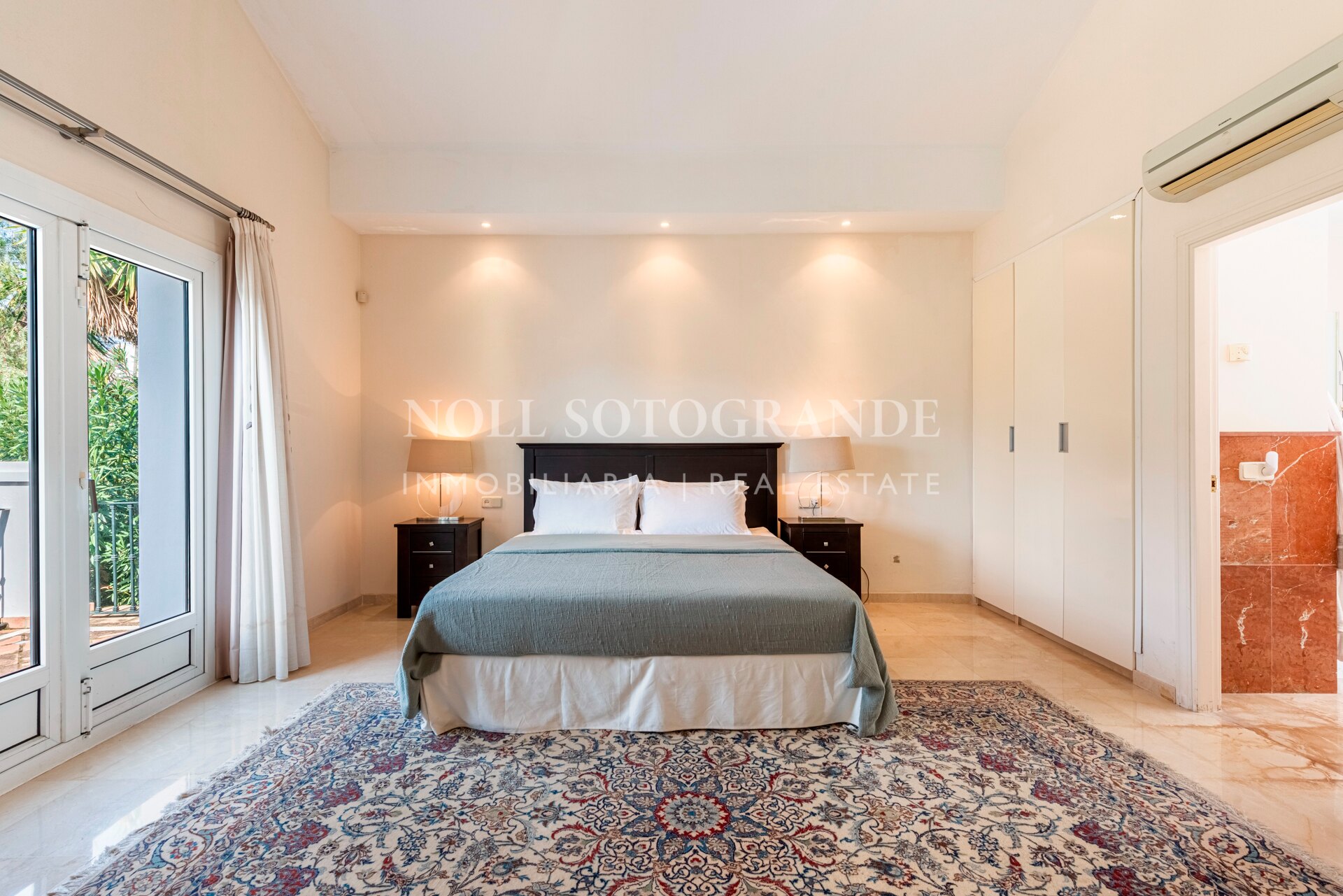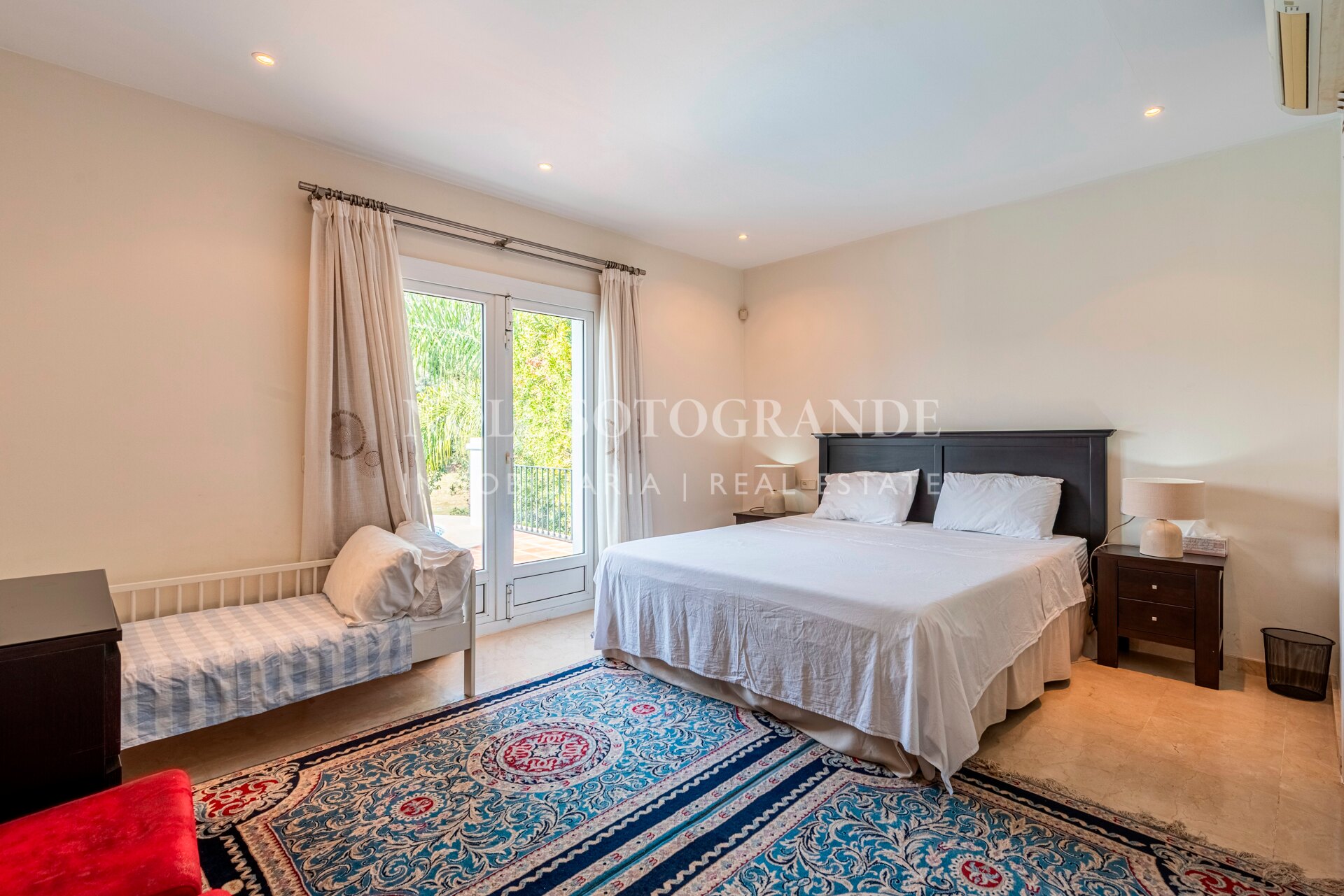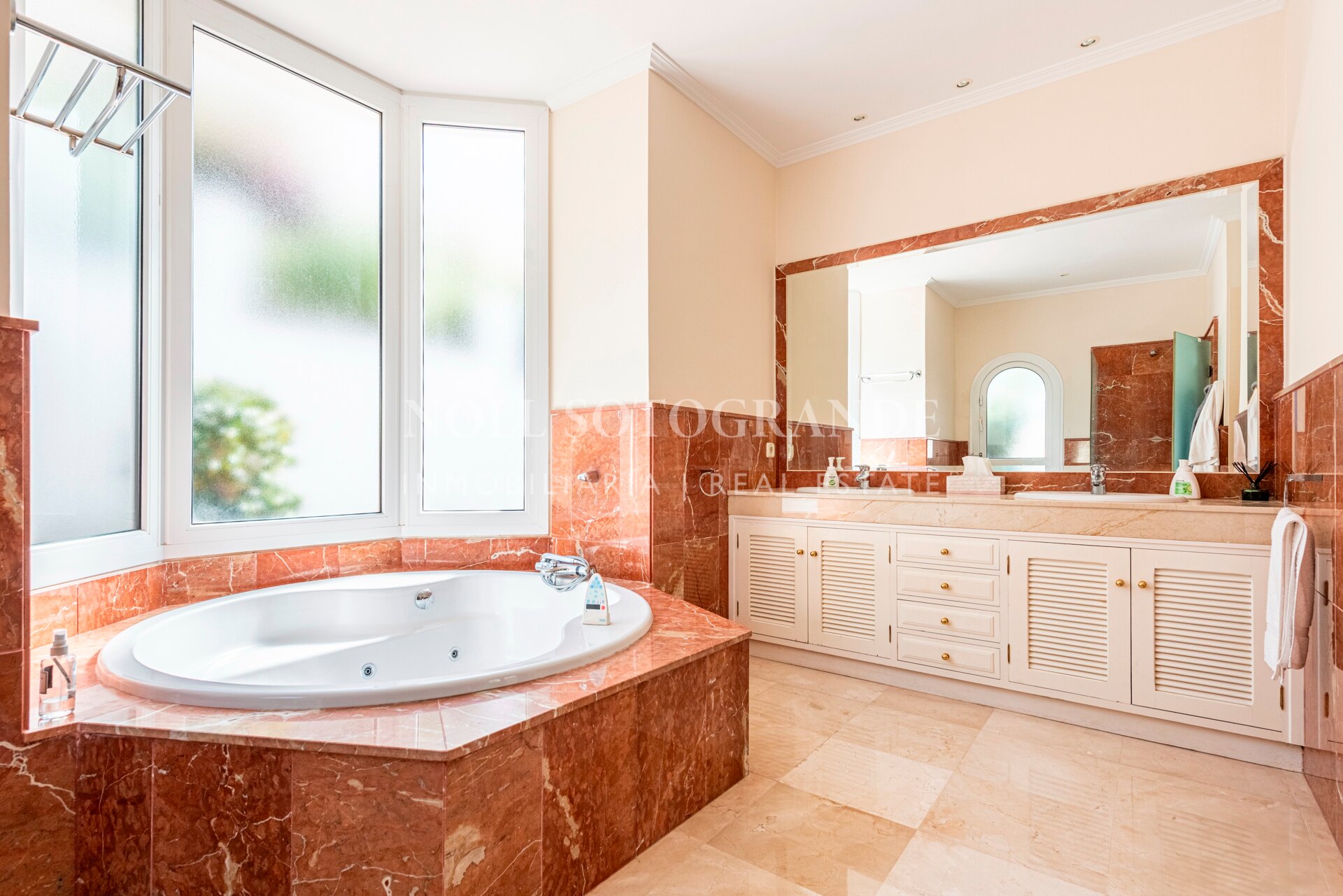 On the garden level, three spacious bedrooms with direct access to the garden, one of them en-suite and the others sharing a bathroom, plus a self-contained guest apartment —currently a games and entertainment area— including a fully fitted kitchen and a large bathroom. A jacuzzi and a petite private garden sit just outside, and there is scope to enlarge exterior areas by raising part of the plot to craft additional landscaped or leisure zones. Private 3-car garage and excellent storage space.