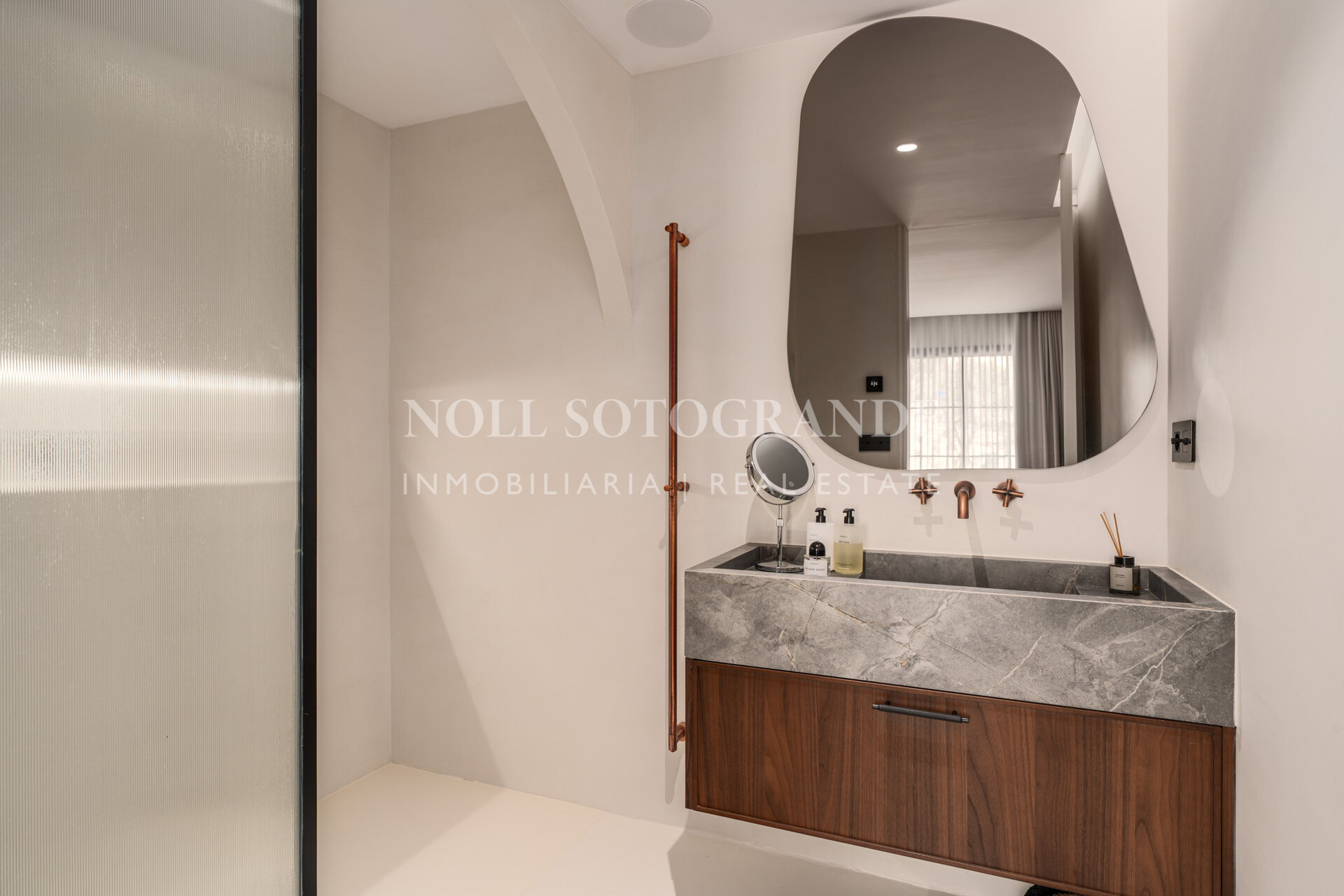 Further premium details: floor-to-ceiling Cortizo Slim windows and terrace doors, elegant wood flooring in chevron herringbone pattern in the interiors, Mykonos stone flooring in terraces. doors extend from floor to ceiling, furnishings from high-end design labels such as Bycrea and Zoco Home, bespoke and tailor-made carpentry, UFH in bathrooms, zoned Airzone climate control system, 15 integrated Sonos speakers, smart Buster and Punch switches and sockets, unique designer tinted glass partitions and microcement finishes in bathrooms,