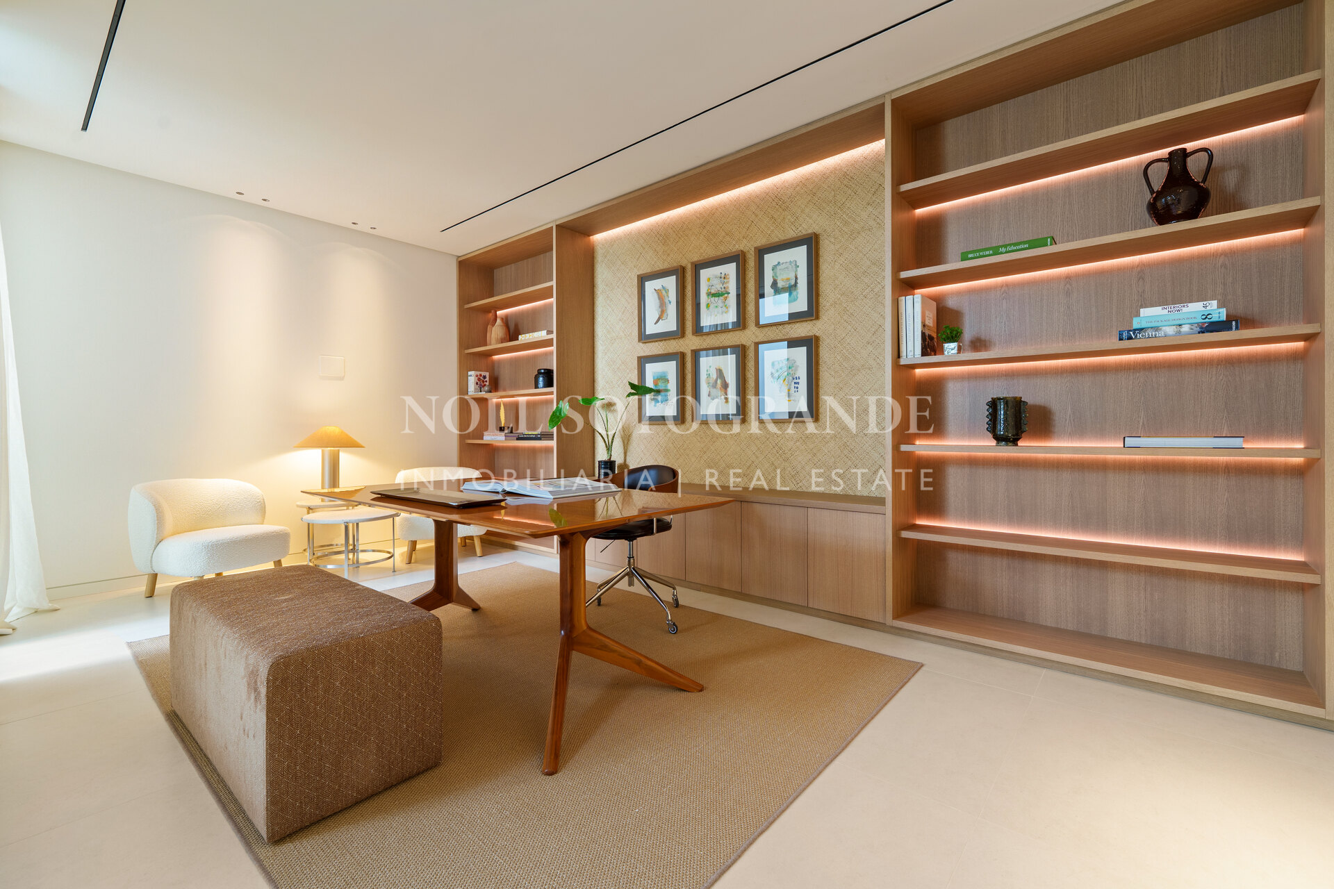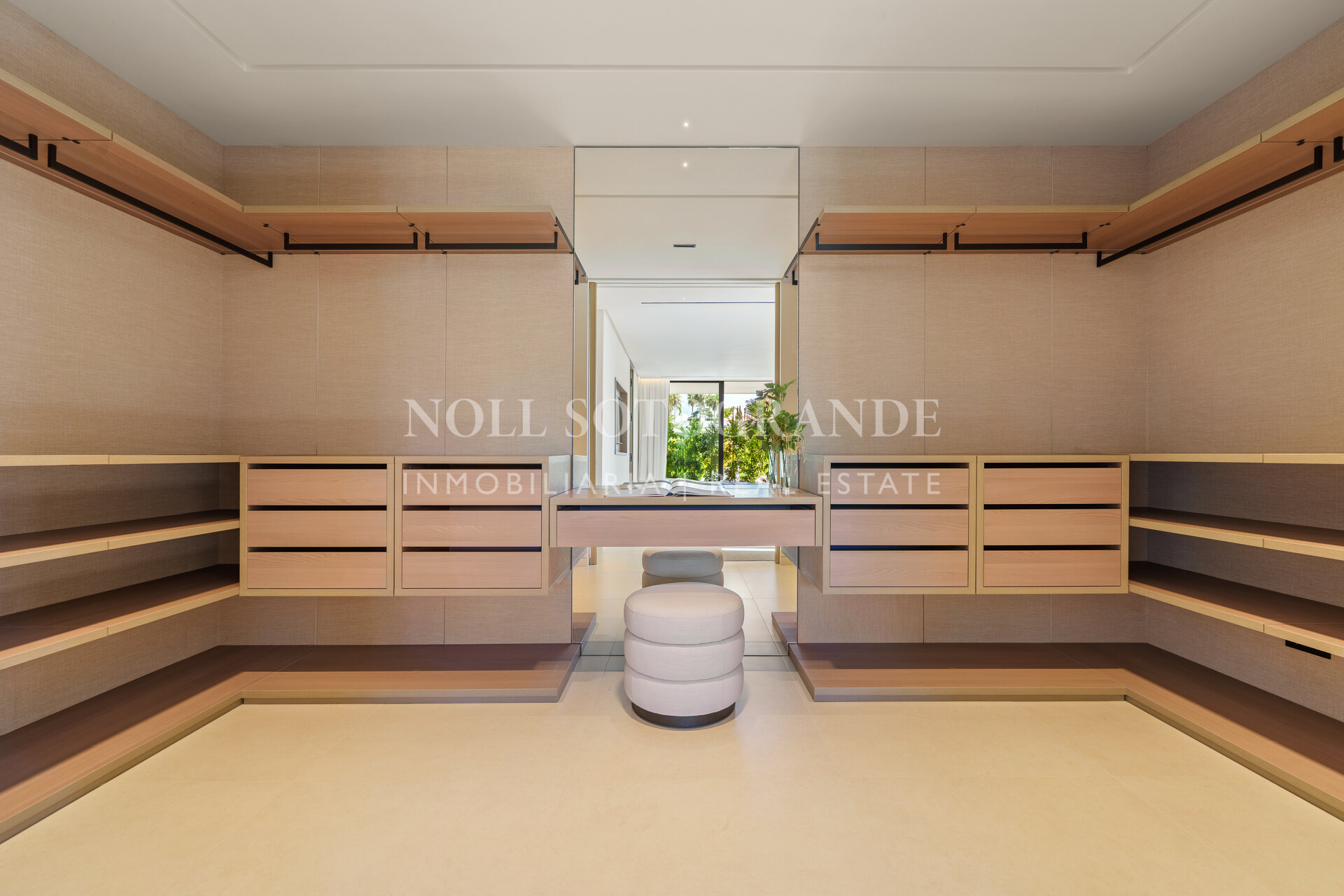 On the first level you´ll find 3 bedrooms. Two guest bedrooms en suite with access to the first-floor terrace. The master bedroom, a generous suite with serene design, walk-in closet and master bathroom with rain shower and bathtub.