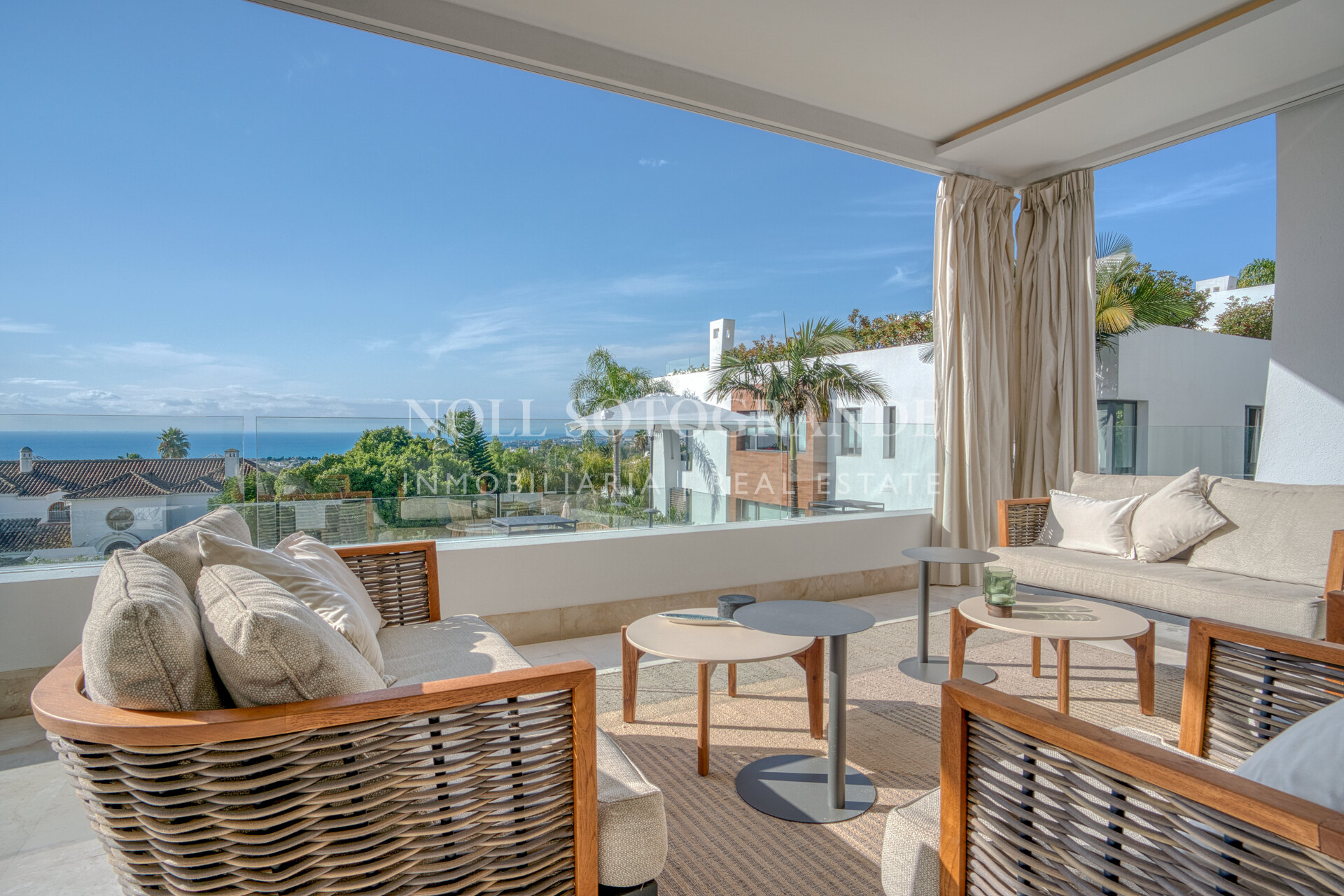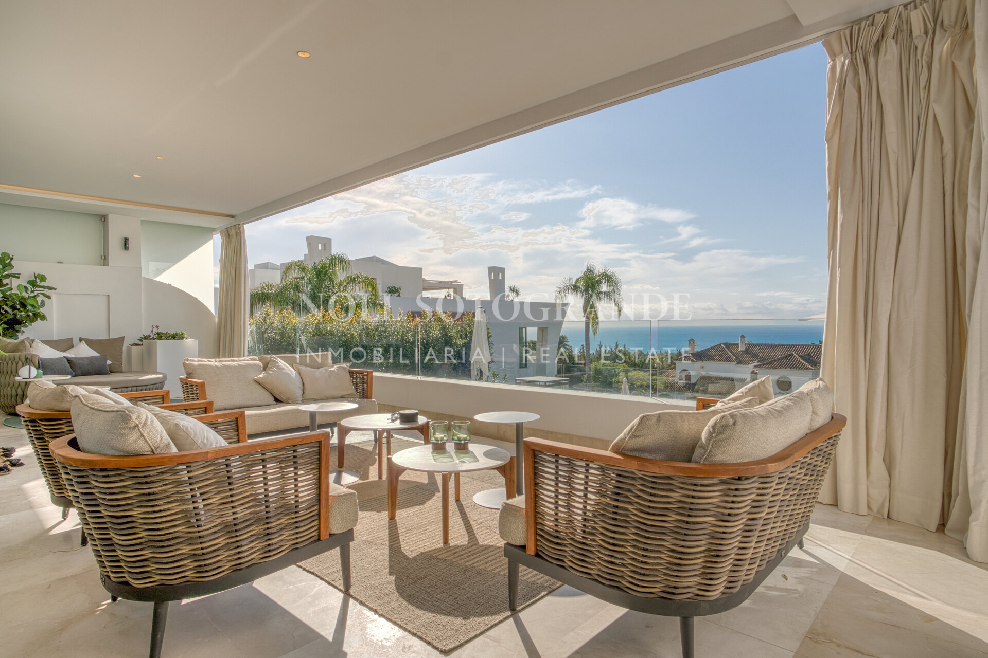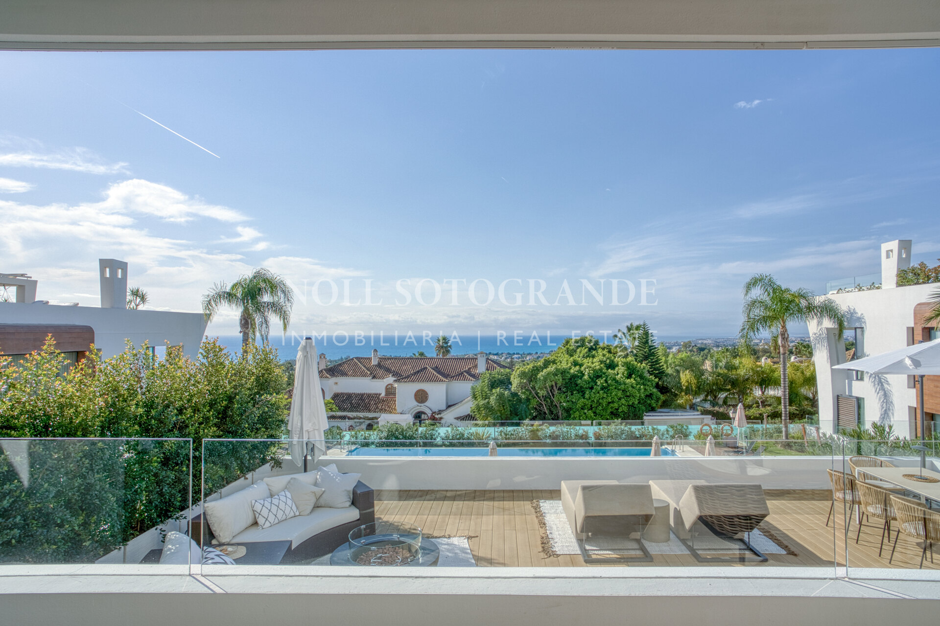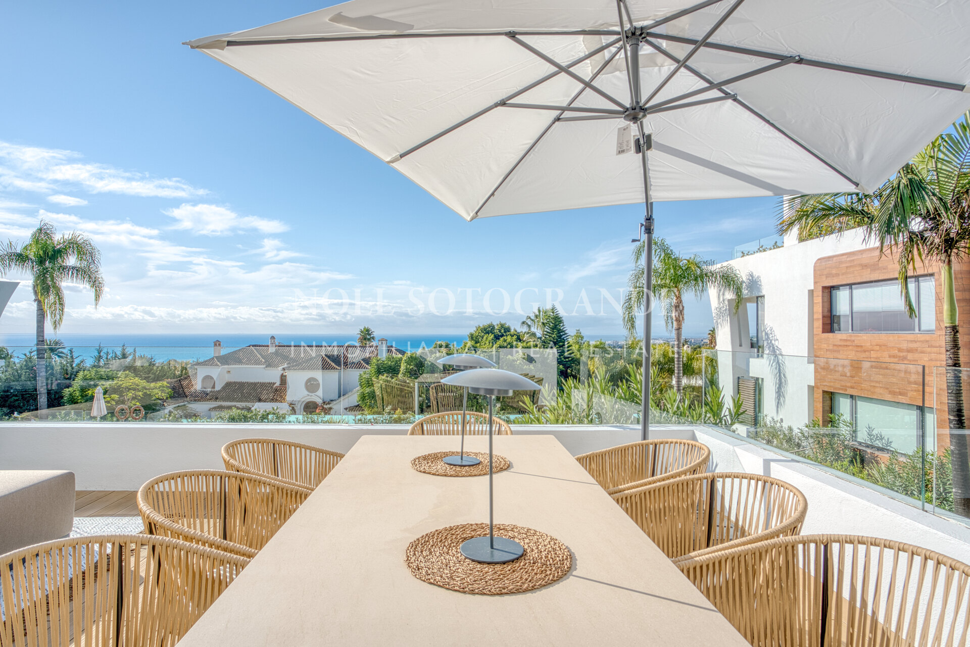 The property consists on the entrance level of an open plan and very generous living and dining area with patio doors leading to the private terraces that boast stunning sea views, fully fitted open plan kitchen with high end appliances, the master suite with access to the terrace, two guest suites and a guest toilet.