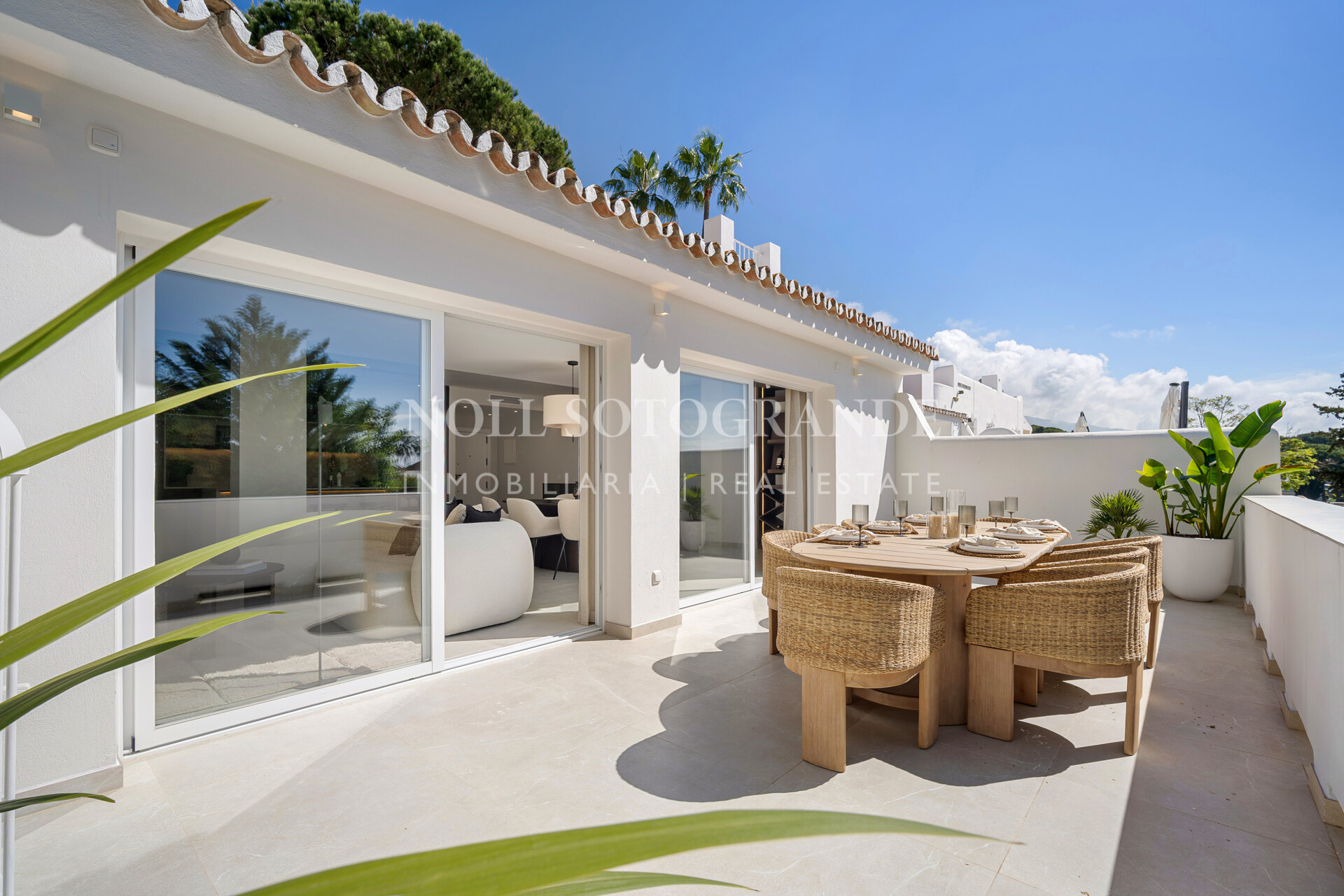 Bathed in natural light, this property is a perfect permanent home, or holiday retreat, or a sound investment, within walking distance from restaurants, shops and the golf course and a few minutes drive to Puerto Banús and the beach.