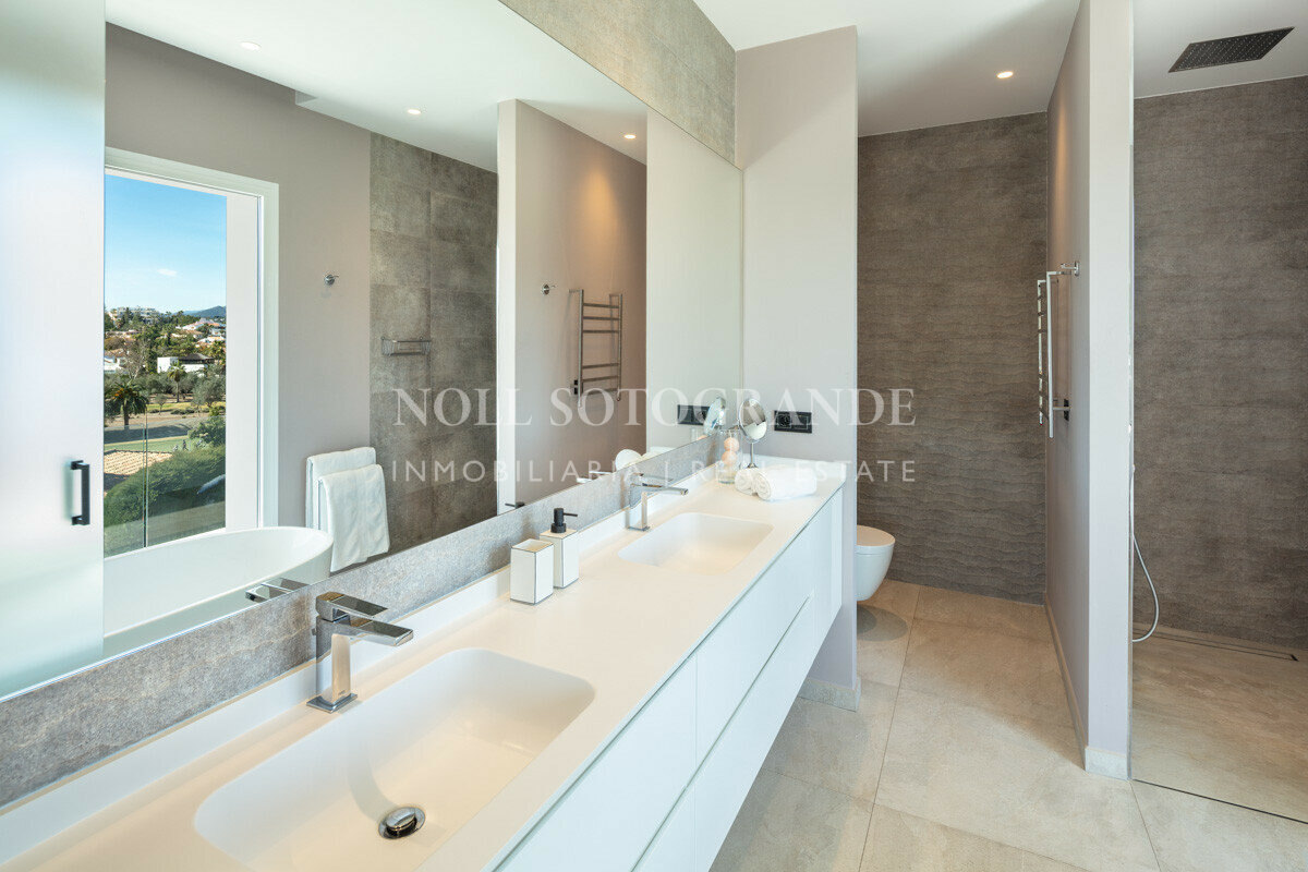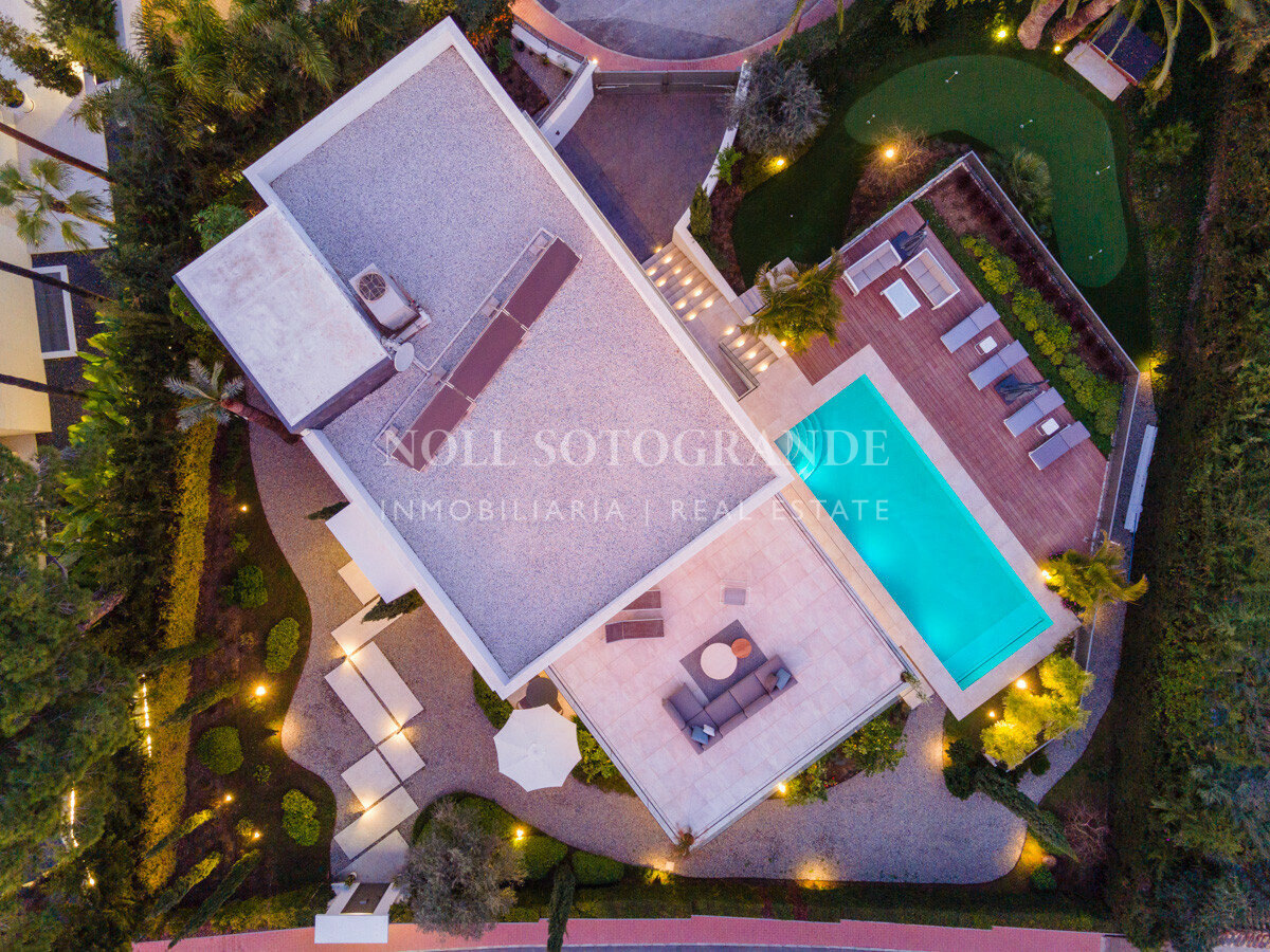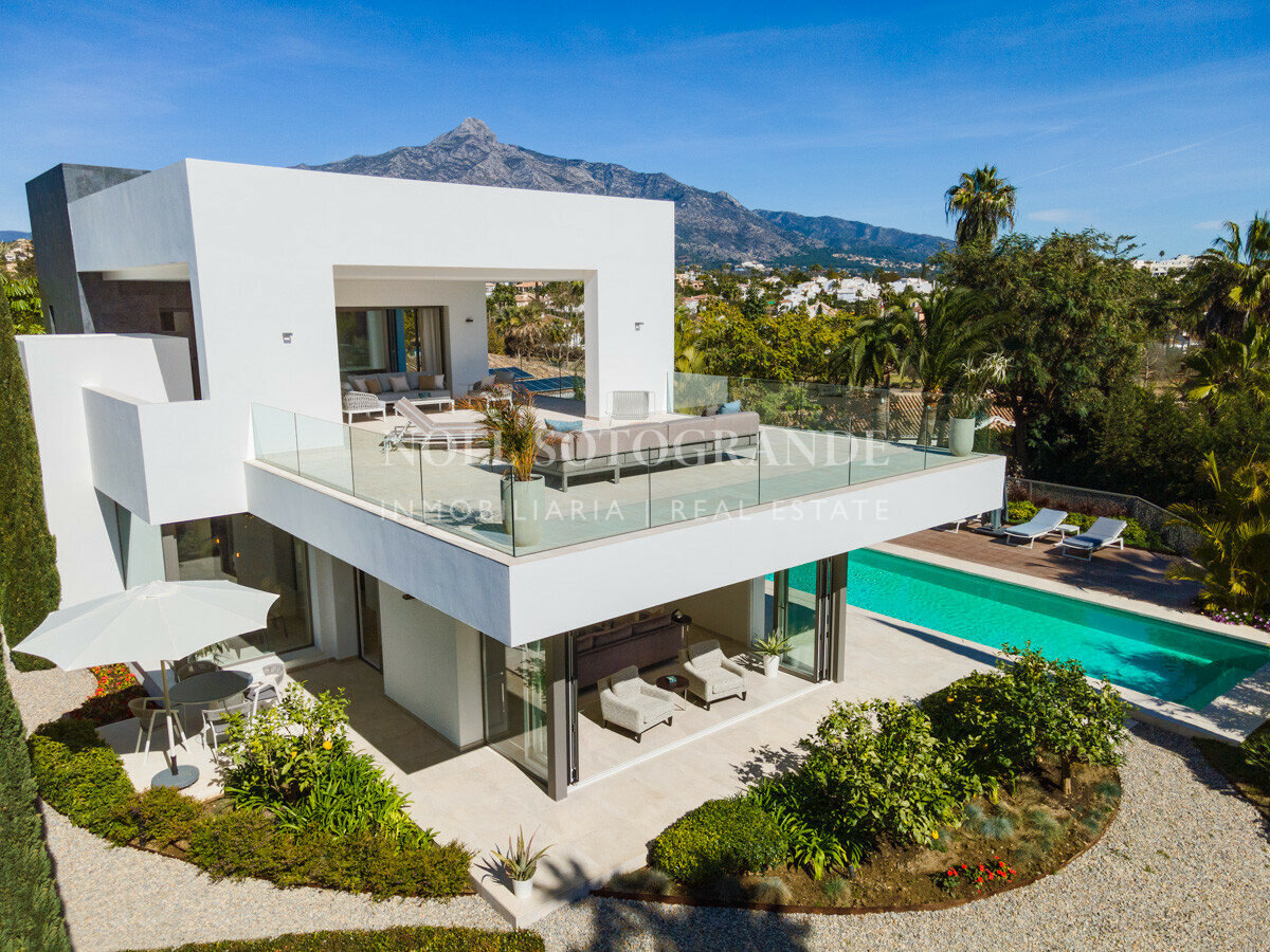 This south-west facing contemporary style 5 bedroom Villa is built with the highest quality and finishes of renowned brands in the market. With superb views over the Las Brisas golf course and La Concha Mountain makes every angle in this villa an area you wish to spend time in!