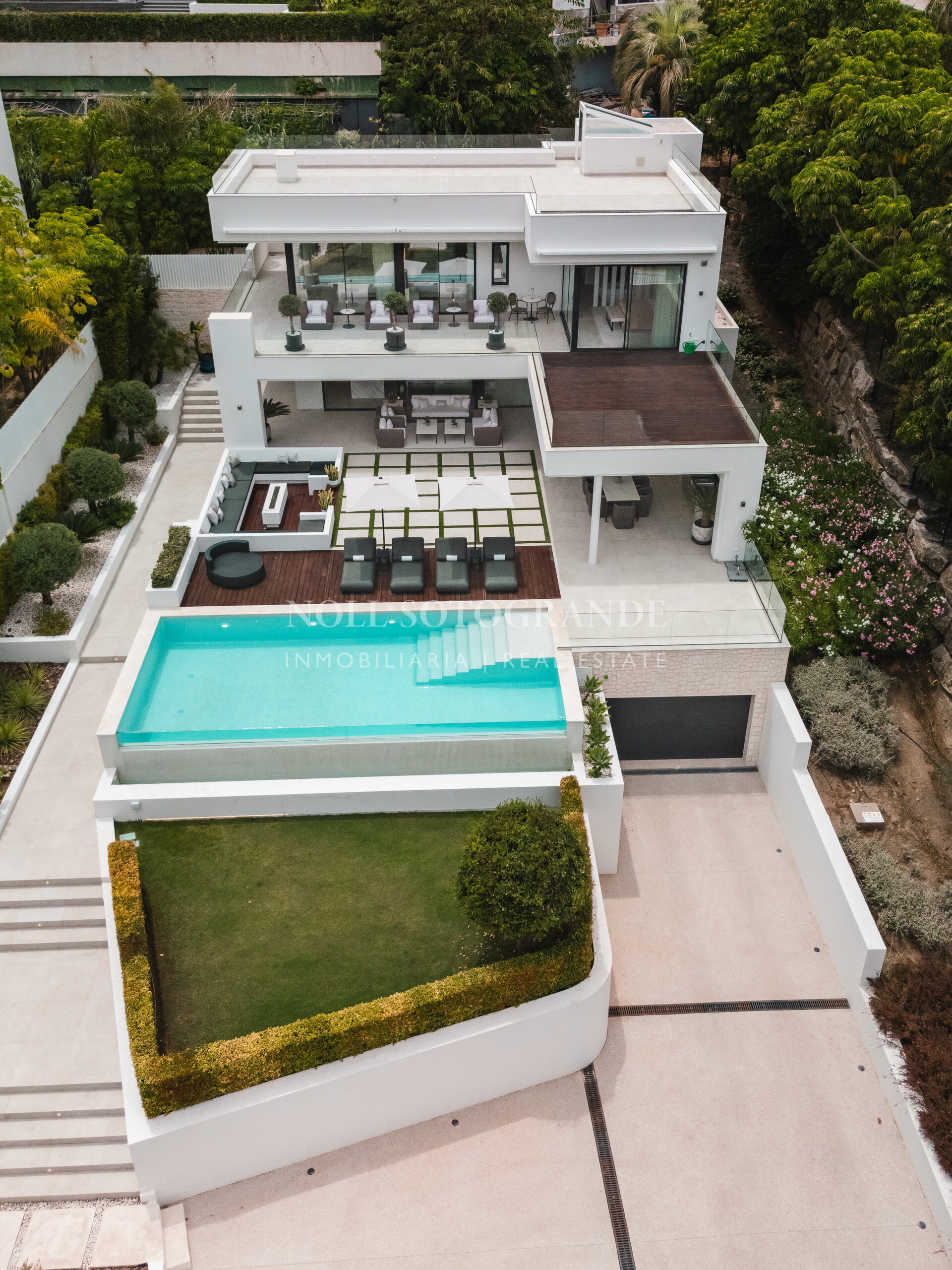 The property is crowned by a spectacular infinity pool that merges with the stunning view of the Golf Valley, creating an oasis of relaxation and luxury. The pool area is surrounded by sun loungers and offers the perfect place to enjoy Marbella´s wonderful climate! Unique opportunity to acquire a home that combines modern architecture and exclusive design in an unbeatable location.