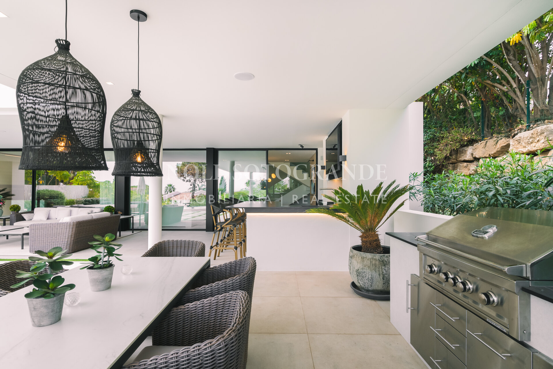 Stylishly designed 5 bedroom Villa in the prestigious area of Nueva Andalucia´s Golf Valley in Marbella. This contemporary home offers an unbeatable combination of luxury, comfort and proximity to some of the most desirable locations in the area. Here you have a short walk to the Las Brisas and Los Naranjos golf courses, as well as to the vibrant nightlife and shopping opportunities of Puerto Banús Yacht Harbour.
