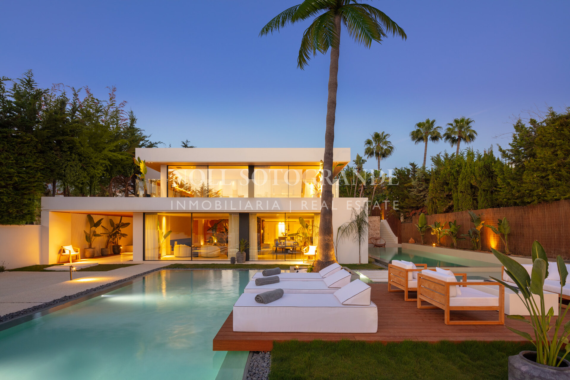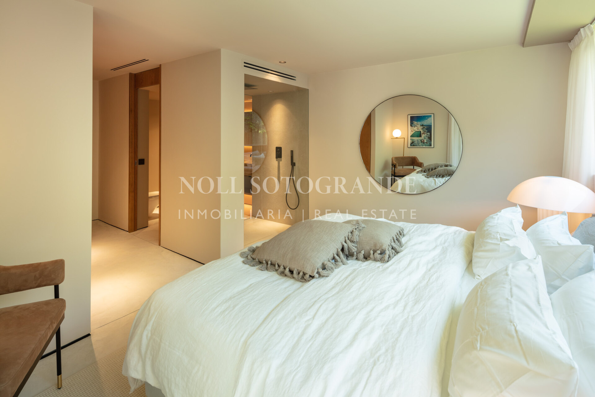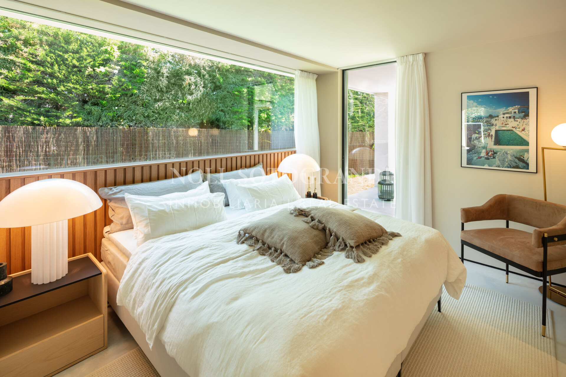 The principal bedroom suite is a true sanctuary, featuring a spa-like en-suite and views to the landscaped gardens. A unique highlight is the seamless transition between indoor and outdoor living, with large sliding doors opening onto a private oasis complete with a spectacular pool, lush green gardens and stylish chill-out zones – perfect for entertaining or relaxing in Marbella´s superb climate.