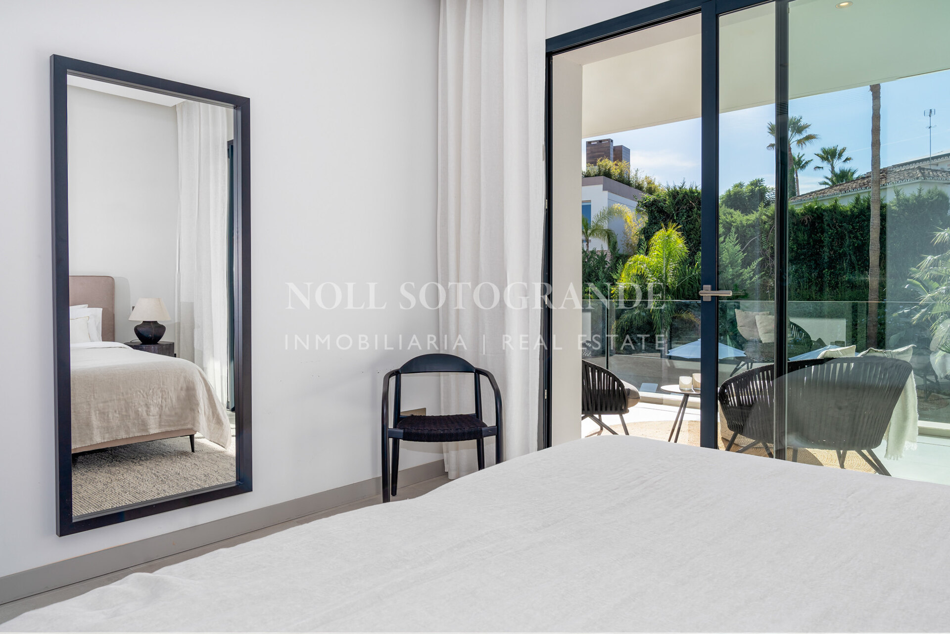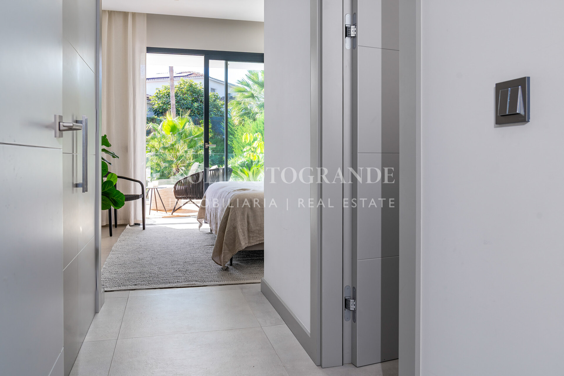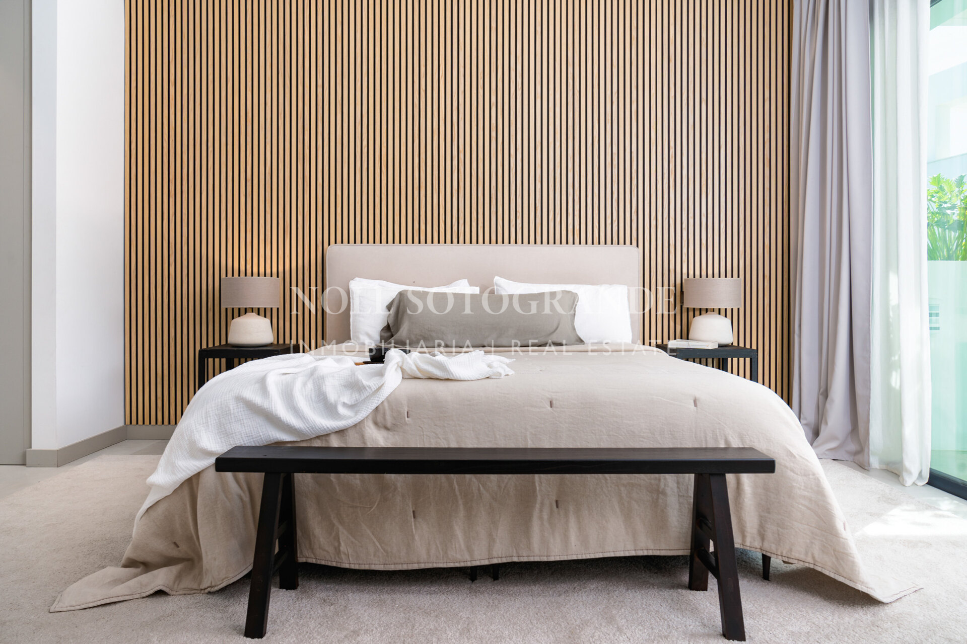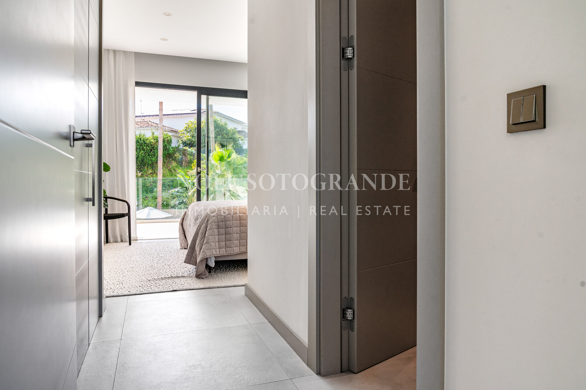 Located on the border between Puerto Banus and Nueva Andalucía, this West-facing 5-bedroom villa offers both luxury and an unrivalled location. This modern property with a built area of 517m2 and a large private and quiet garden with swimming pool, was constructed in 2020 and has since been updated to further enhance its features.