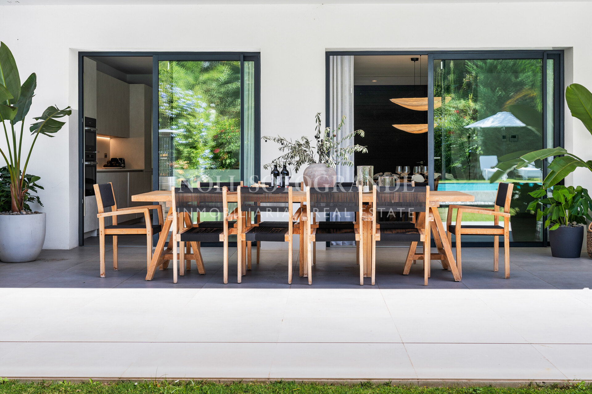 This beautiful residence features 5 large bedrooms with en suite bathrooms, and 2 guest toilets distributed over 3 floors, culminating in a captivating rooftop terrace with views to the sea and the peaceful green surroundings. Inside, premium materials are met with top tier Miele appliances, complemented by standout amenities like a wine cellar, cinema room, sauna, steam shower and a state-of-the-art gym.