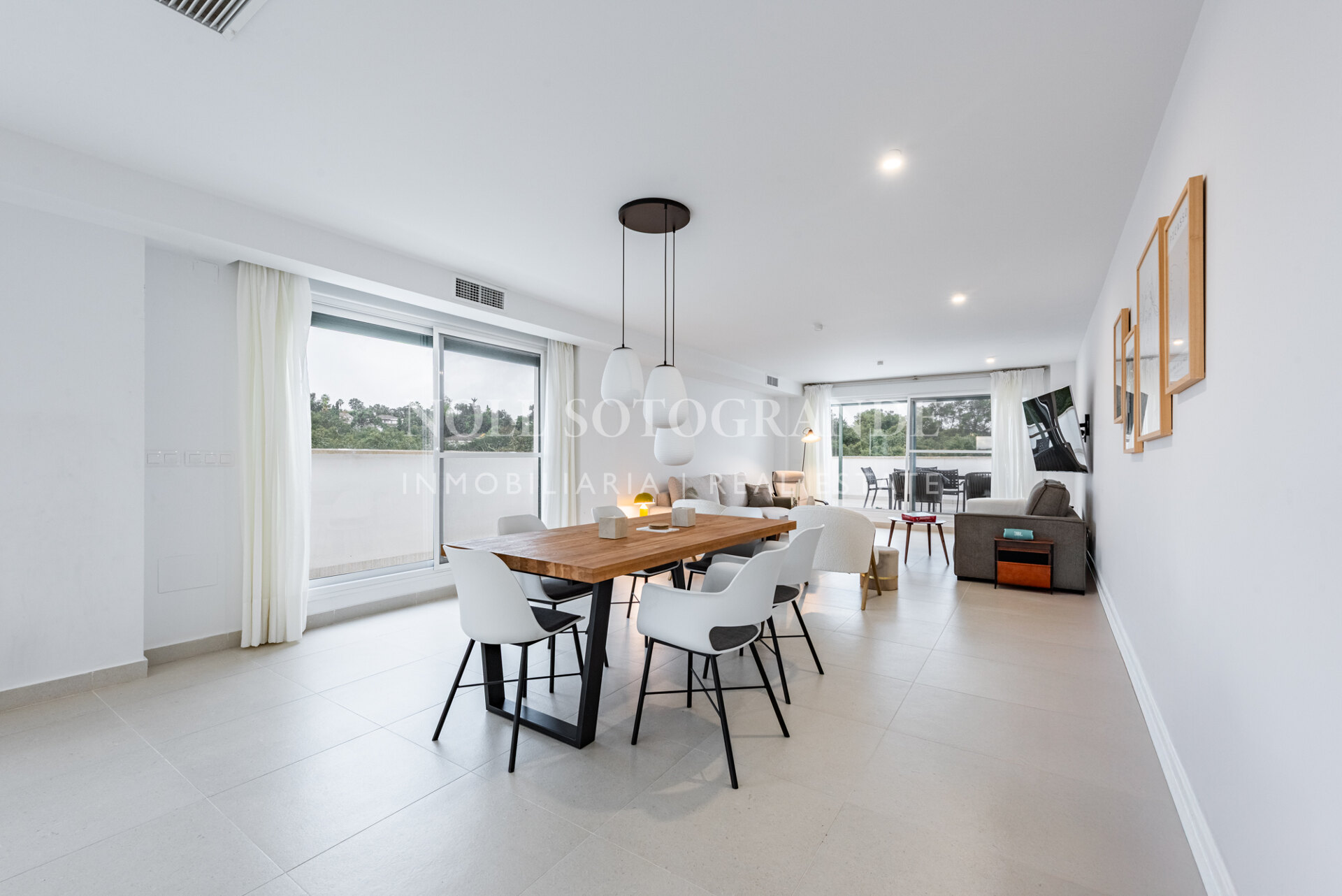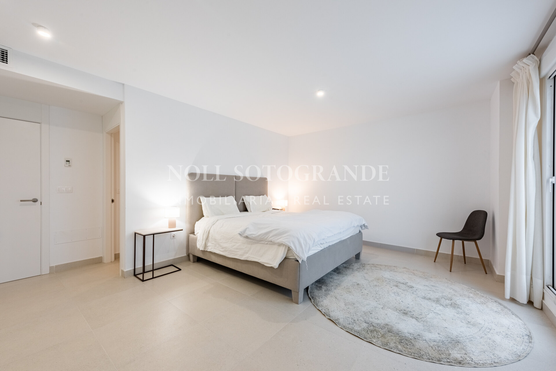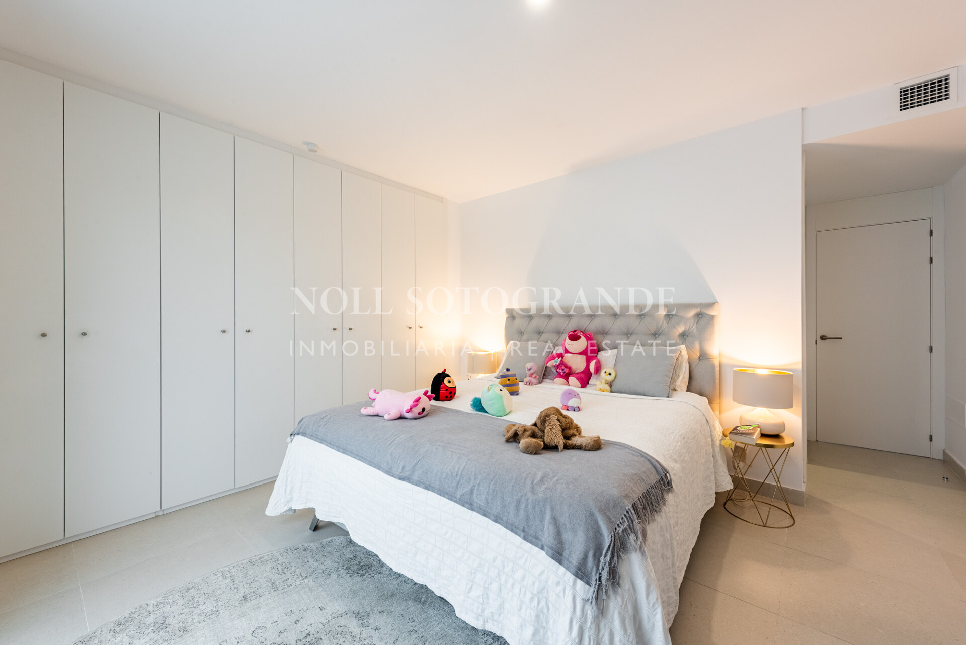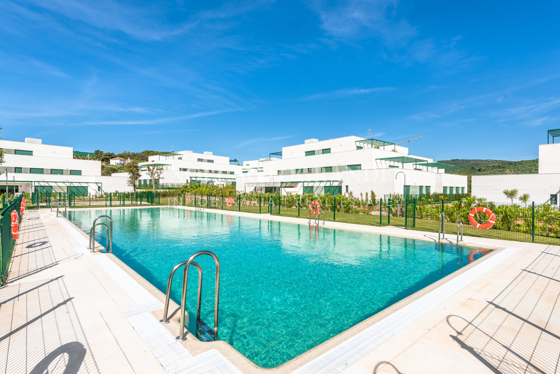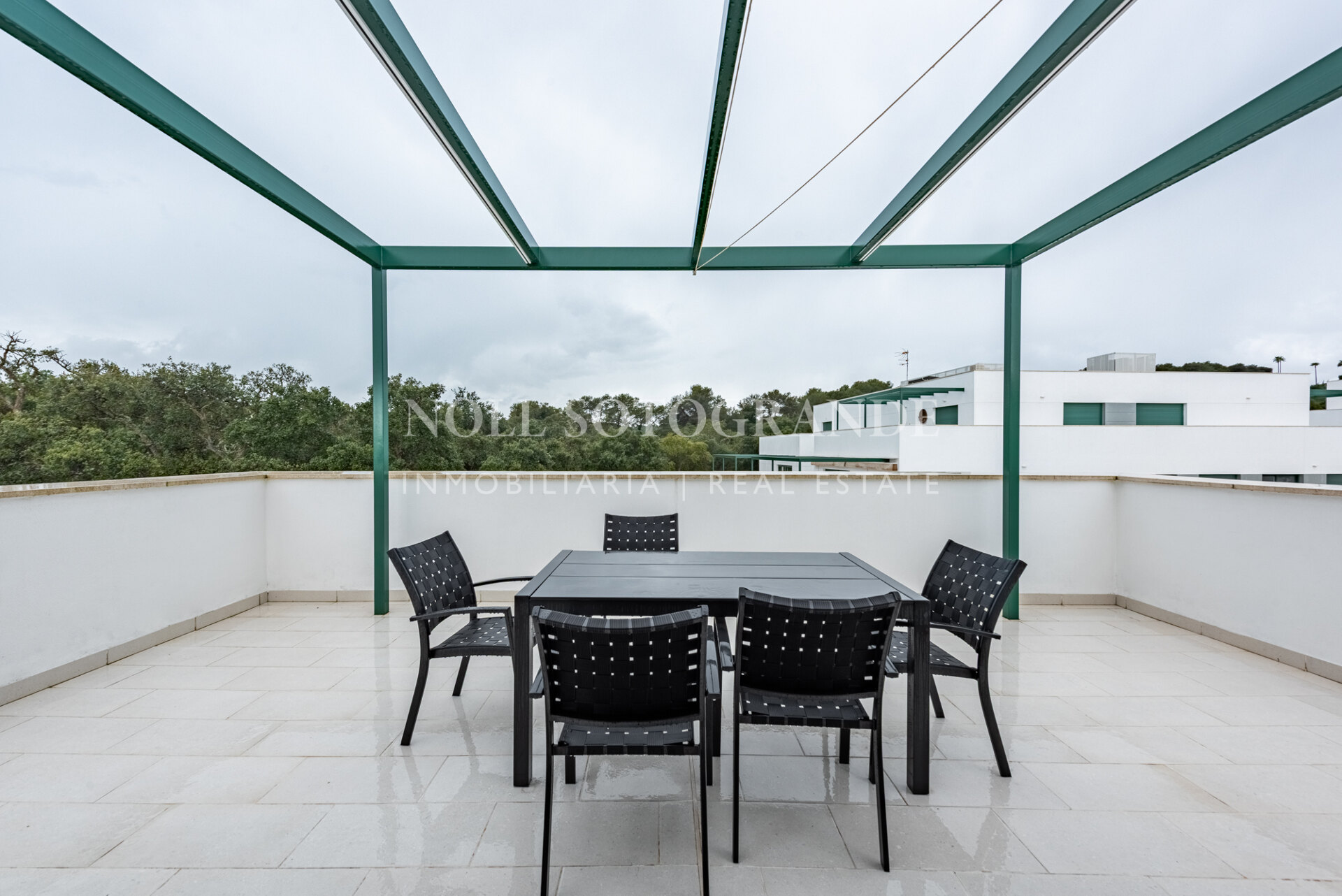 This penthouse provides three generously sized bedrooms, each with its own bathroom, offering privacy and comfort to all residents. The open-plan bright living and dining areas create an inviting atmosphere that extends onto a private terrace – ideal for al fresco dining or simply enjoying the tranquil views. Other amenities include a modern, fully equipped kitchen, secure parking and access to the development’s exclusive recreational areas. Residents can enjoy communal landscaped gardens, a communal swimming pool and proximity to world-class golf courses, ideally located to lead a luxurious and healthy lifestyle.