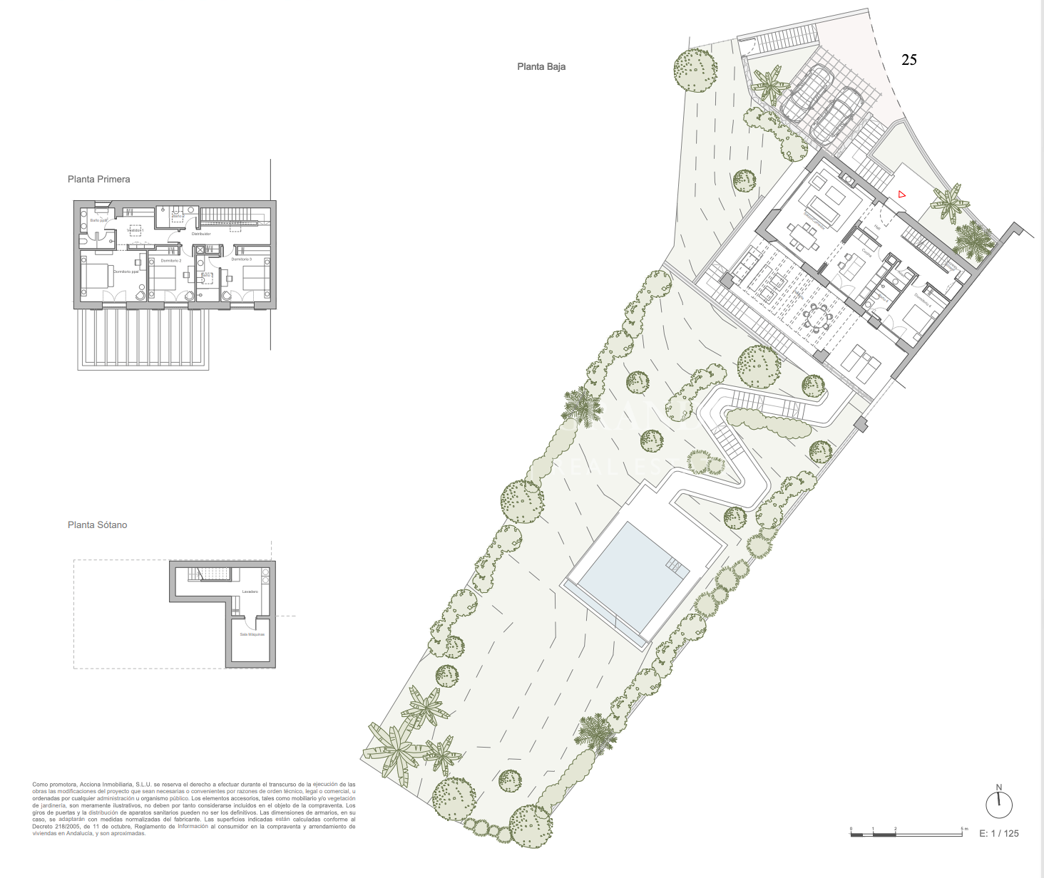 There will be three types of homes: Patio homes, Garden homes, and Villas. In this case, Garden homes consist of 24 timeless design semi-detached houses with volumes that seamlessly integrate into the different gardens and platforms, harmoniously adapting to the terrain’s topography. All of these residences offer spacious plots with private gardens and swimming pools, along with a spacious pergola that expands the indoor space to the outdoors, allowing residents to enjoy the pleasant climate of Sotogrande. Most of these homes have plots of more than 500 square meters.