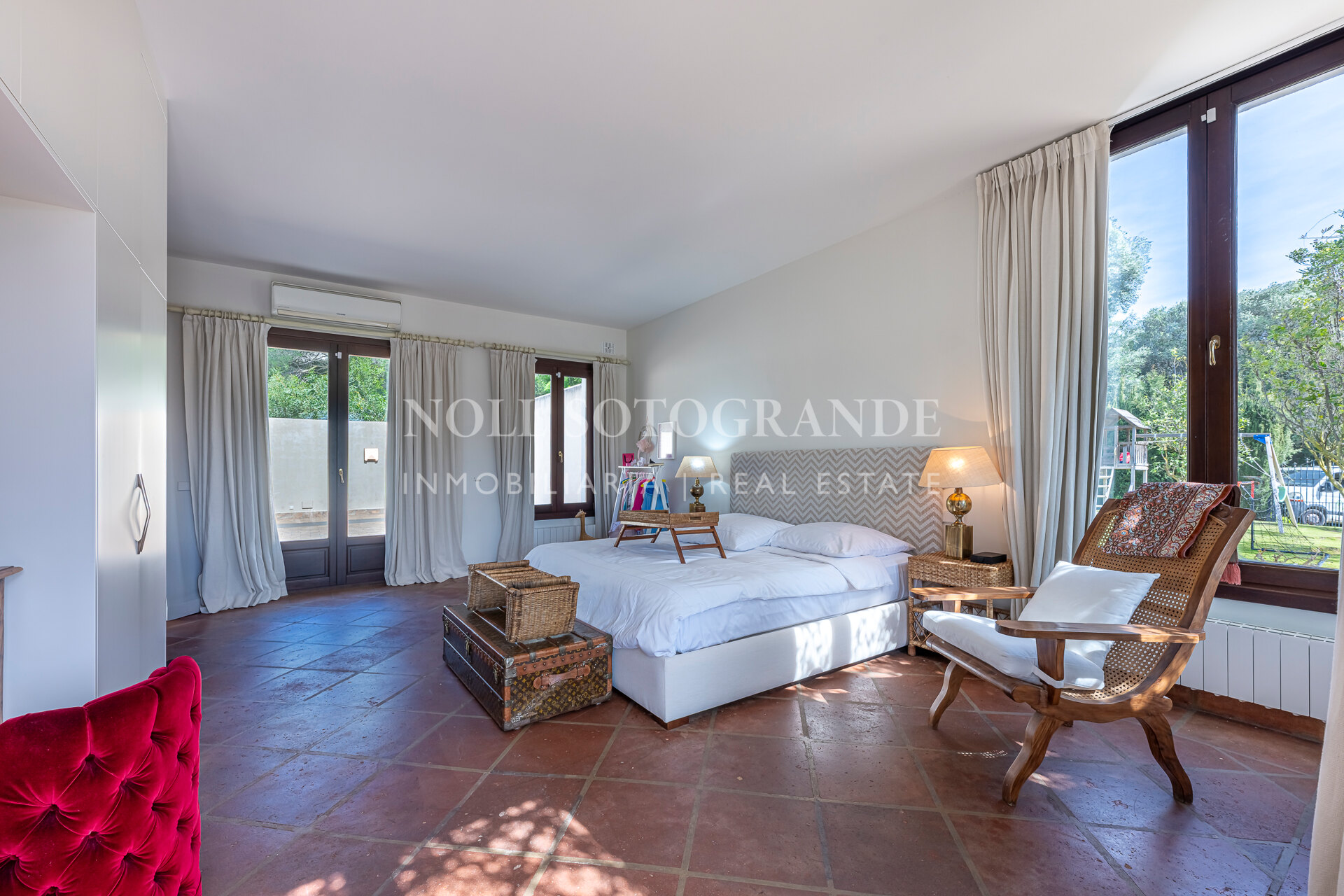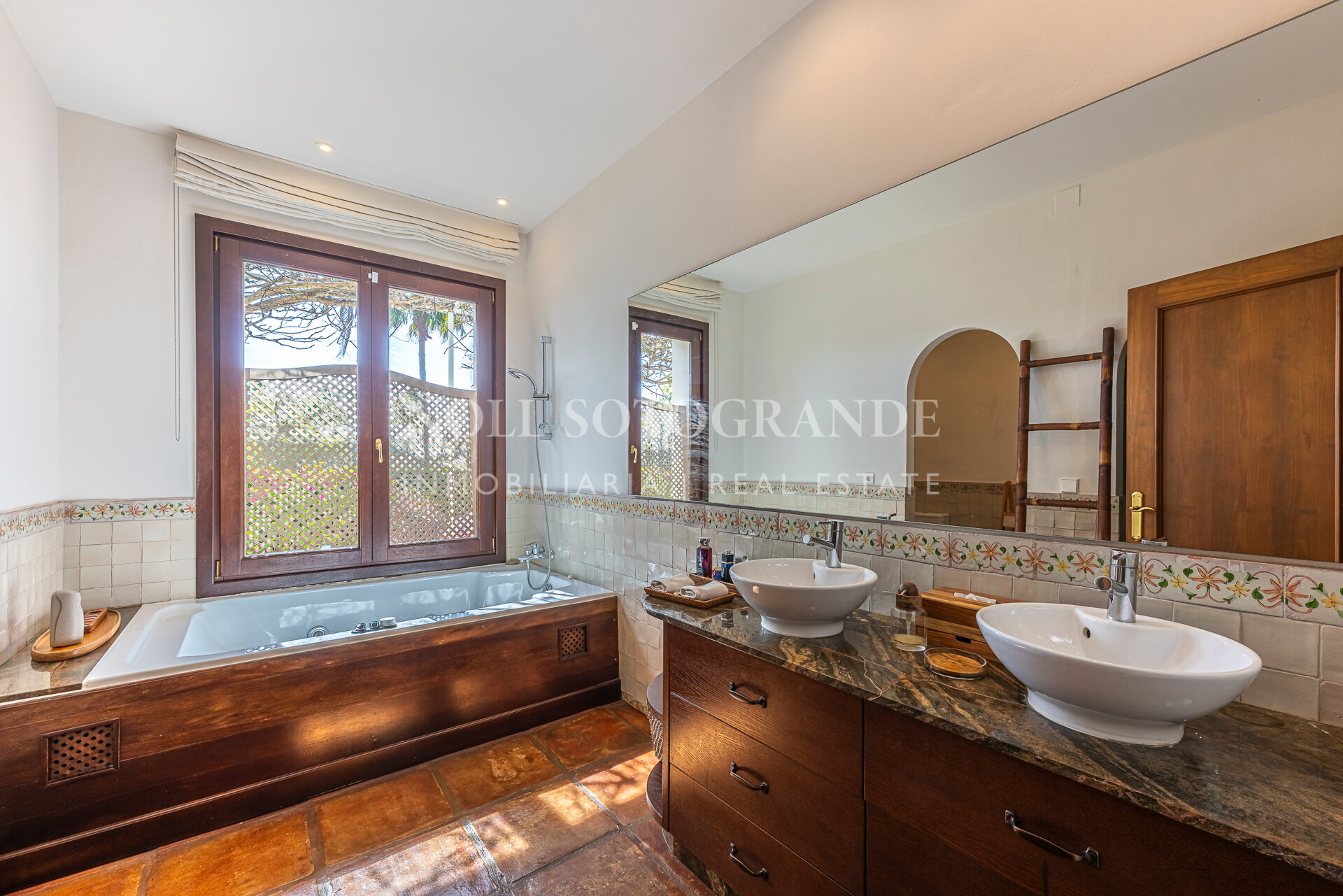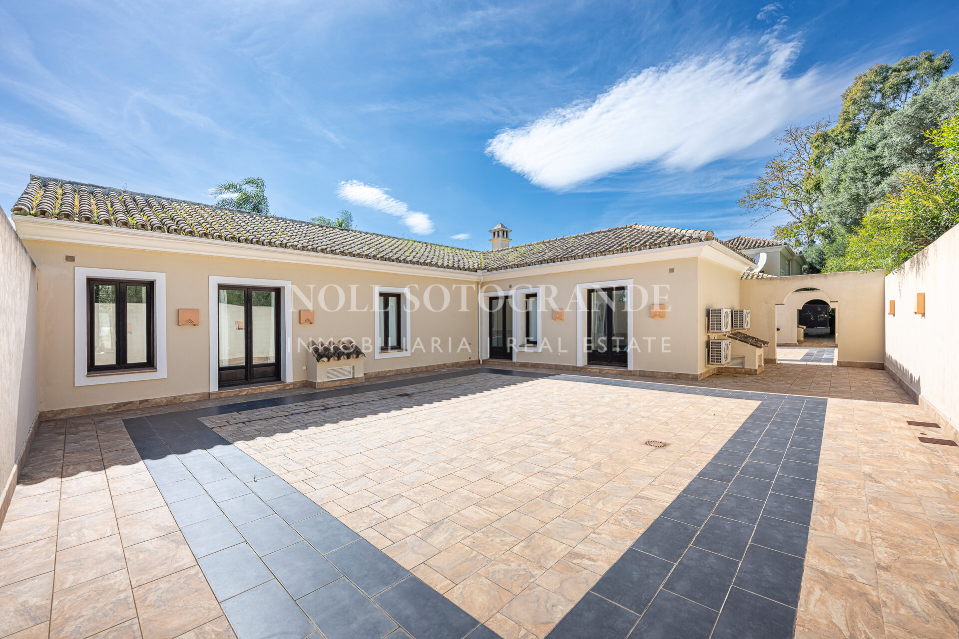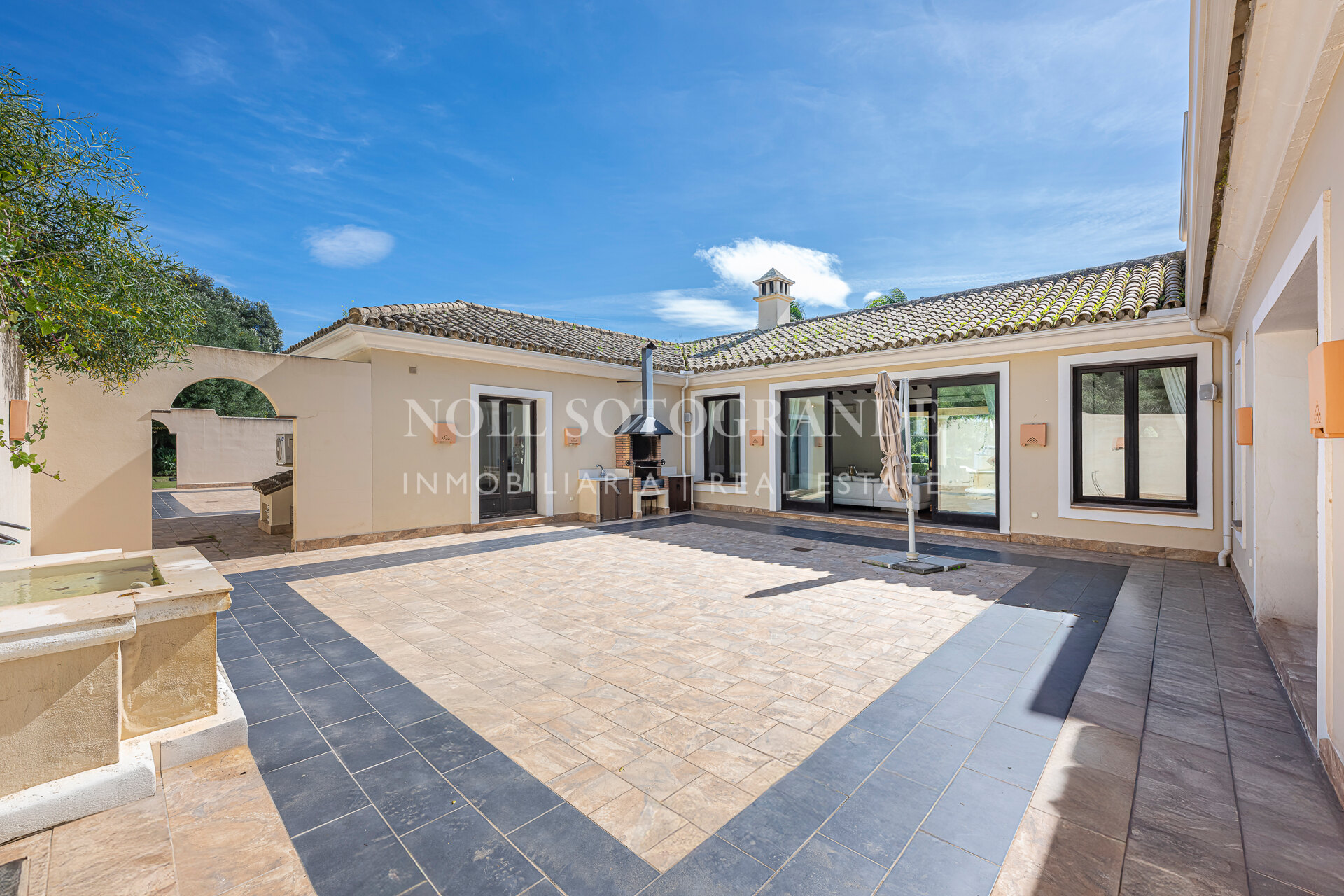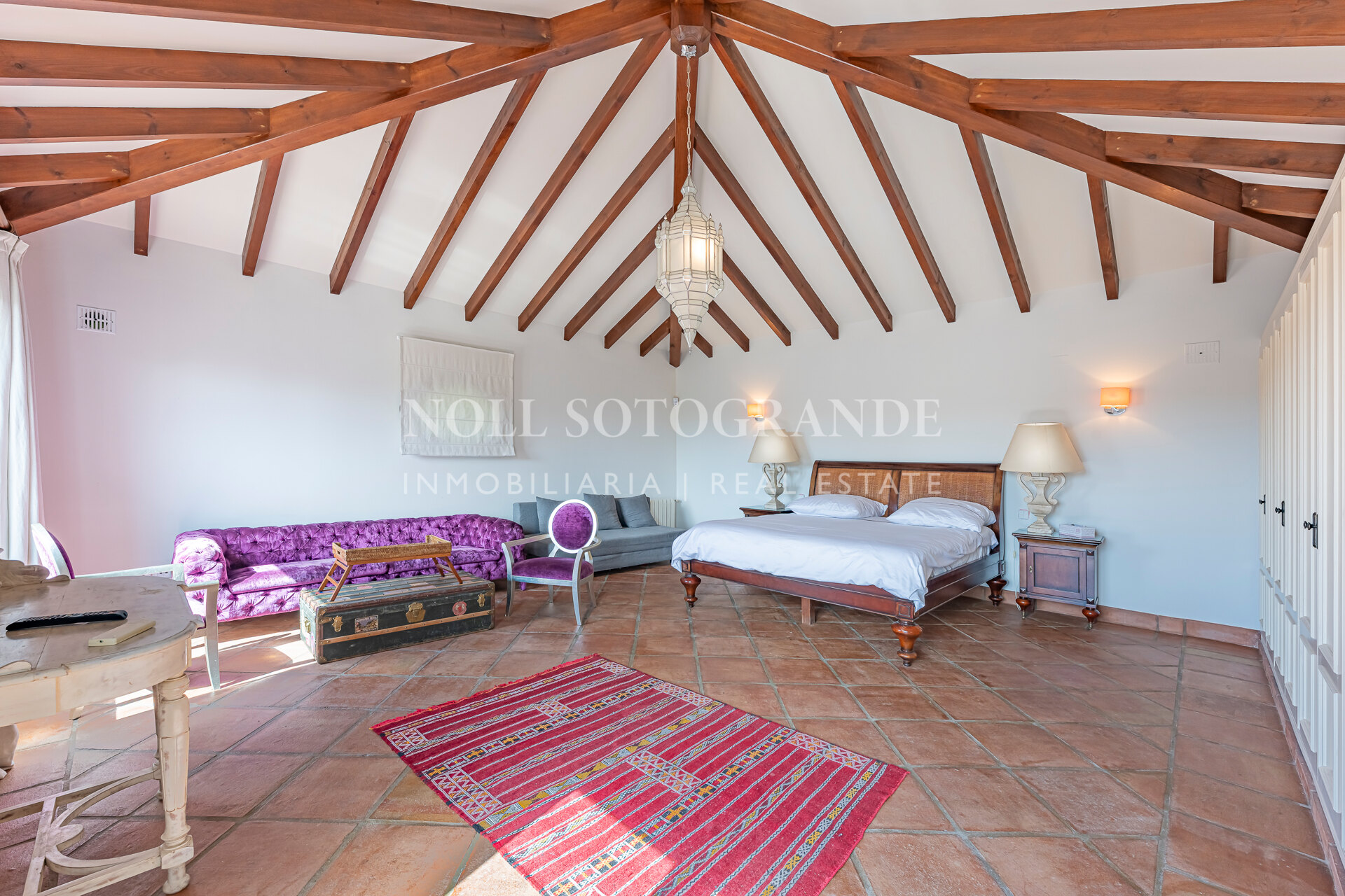 An impressive villa offering privacy, comfort and space, this residence is perfectly positioned in a peaceful residential area while remaining just minutes away from Sotogrande’s championship golf courses, marina, and all the lifestyle amenities. The property includes five spacious en-suite bedrooms. The master suite stands out with its private terrace and dressing area. The main living room features a fireplace and opens onto large terraces, seamlessly connecting indoor and outdoor living. A modern, fully equipped kitchen with pantry and utility area ensures both practicality and style. The villa’s gardens are beautifully landscaped, designed for family enjoyment and entertaining. A private swimming pool, children’s play area, and an outdoor summer kitchen with barbecue and pizza oven make it ideal for gatherings. Additional highlights include a guest annexe above the garage, perfect for visitors or staff accommodation, secure garage parking and further exterior parking spaces. This villa combines space, flexibility, and the relaxed Mediterranean lifestyle Sotogrande is known for.