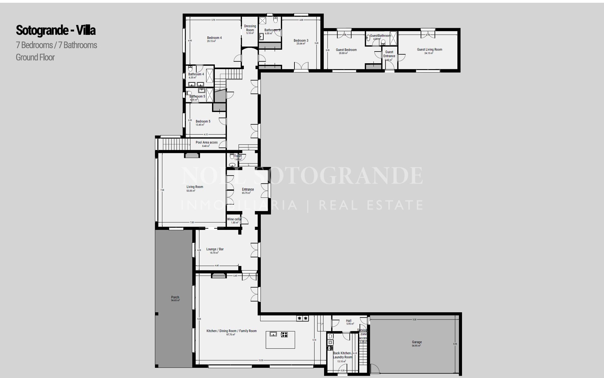 • Master suite of 75 m² + 4 en-suite family bedrooms