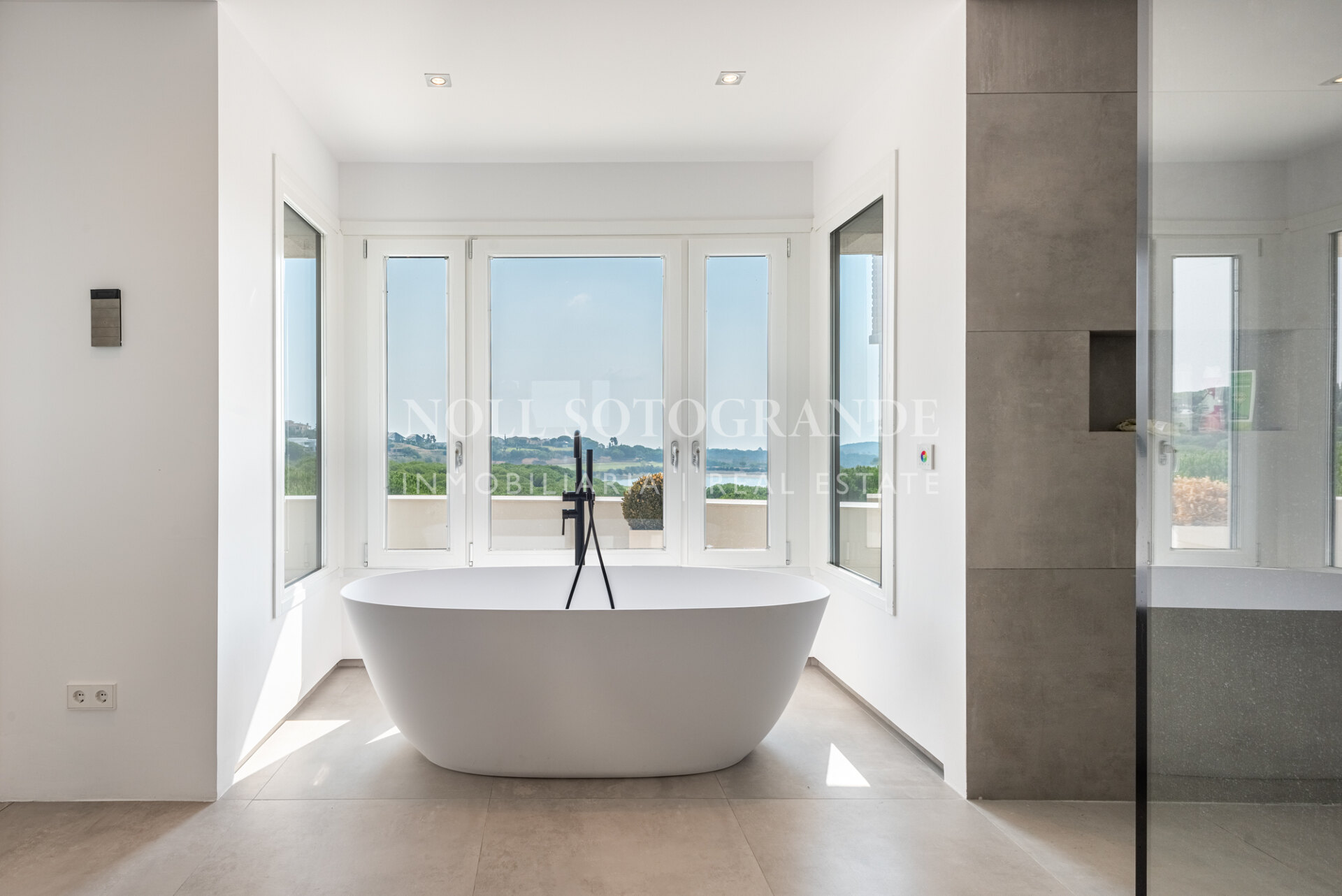 This substantial luxury villa, built in 2011, offers a unique blend of privacy, space, and breathtaking views. Located on a serene and exclusive street on the upper Alto of Sotogrande, the villa sits on a generous 4,037 m² plot with stunning views of the Almenara golf course and the Mediterranean Sea. The property has 890 m² of built space, featuring seven en-suite bedrooms and an array of premium amenities designed for a sophisticated lifestyle. The villa’s spacious layout includes two reception rooms, a large fully-equipped kitchen, and an outdoor area ideal for entertainment. Whether relaxing in the garden or hosting a gathering in the barbecue area, this home caters to every need for comfort and luxury.