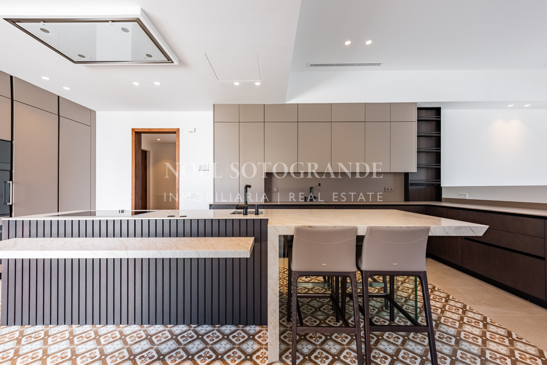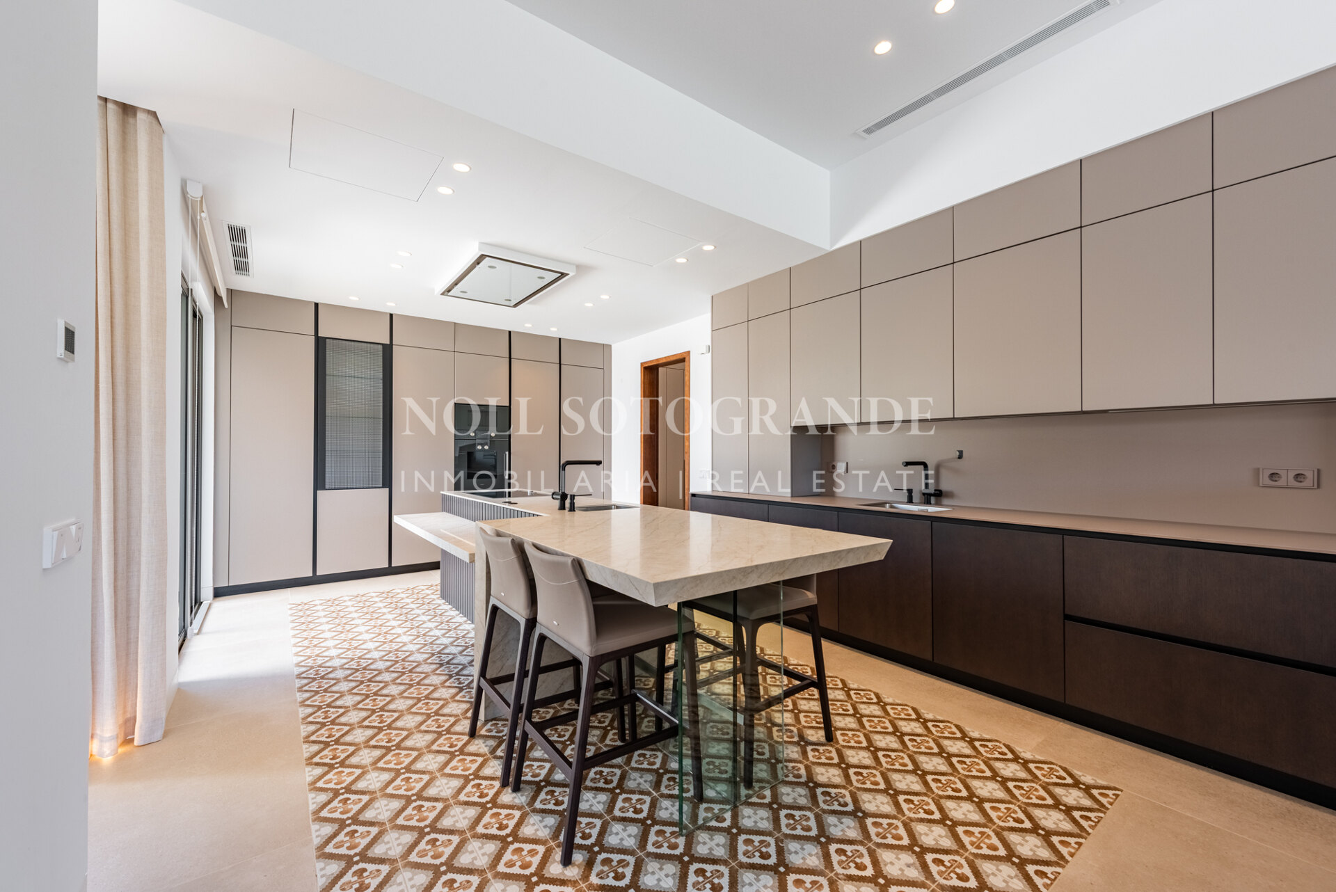 The villa has five bedroom suites, all carefully designed to ensure privacy and tranquillity. The spacious, light-filled living room is the centrepiece of the home and offers seamless access to the beautifully landscaped outdoor areas. A separate kitchen and dining area, equipped with top-of-the-line appliances and sophisticated finishes, create an inviting atmosphere for both intimate gatherings and entertaining.