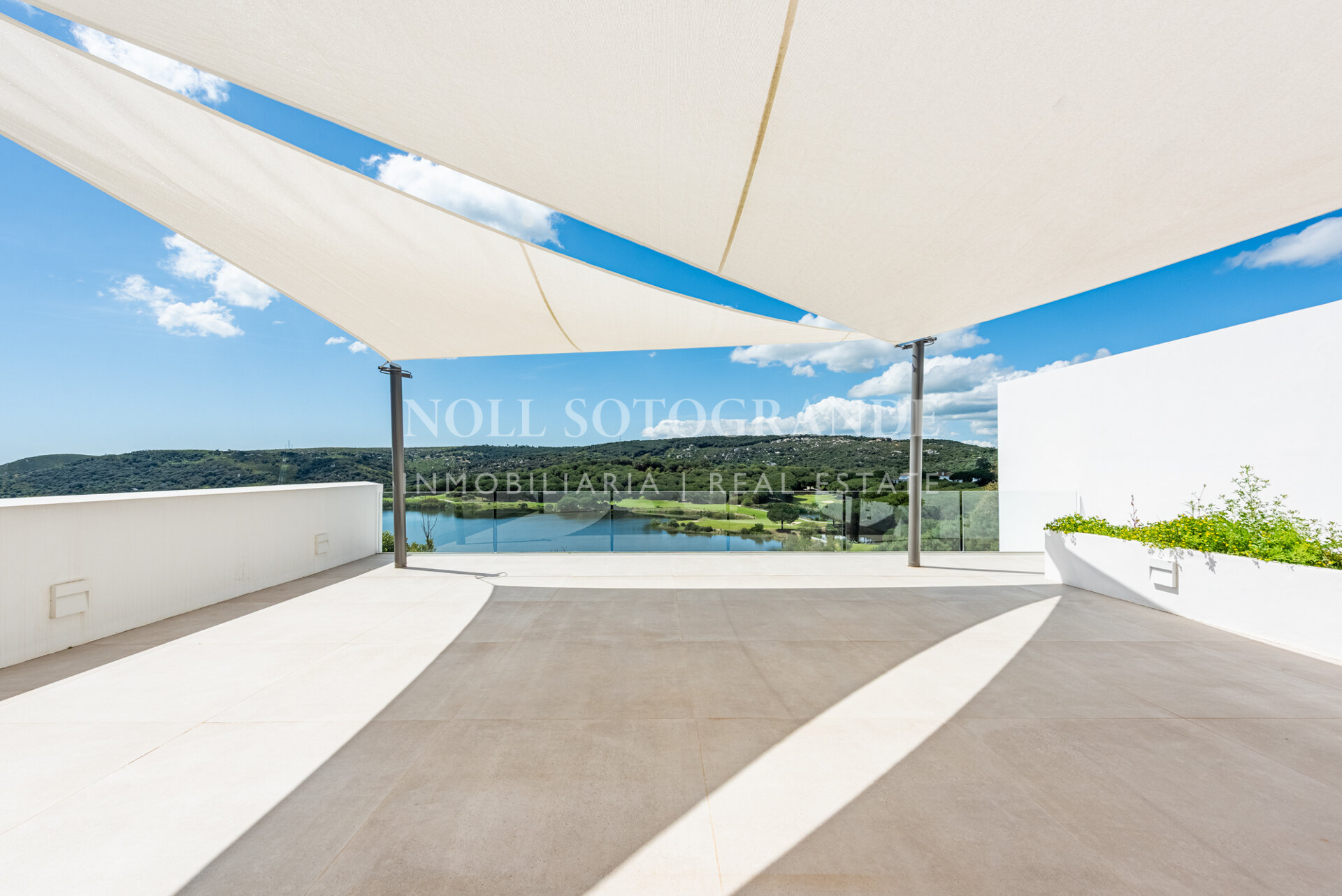 This contemporary villa in the prestigious enclave of Sotogrande Alto boasts an unrivalled frontline golf location with stunning panoramic views over a tranquil lake. Designed to the highest standards, the residence seamlessly blends modern elegance with comfort, offering an exquisite living experience in one of Sotogrande’s most sought-after locations.