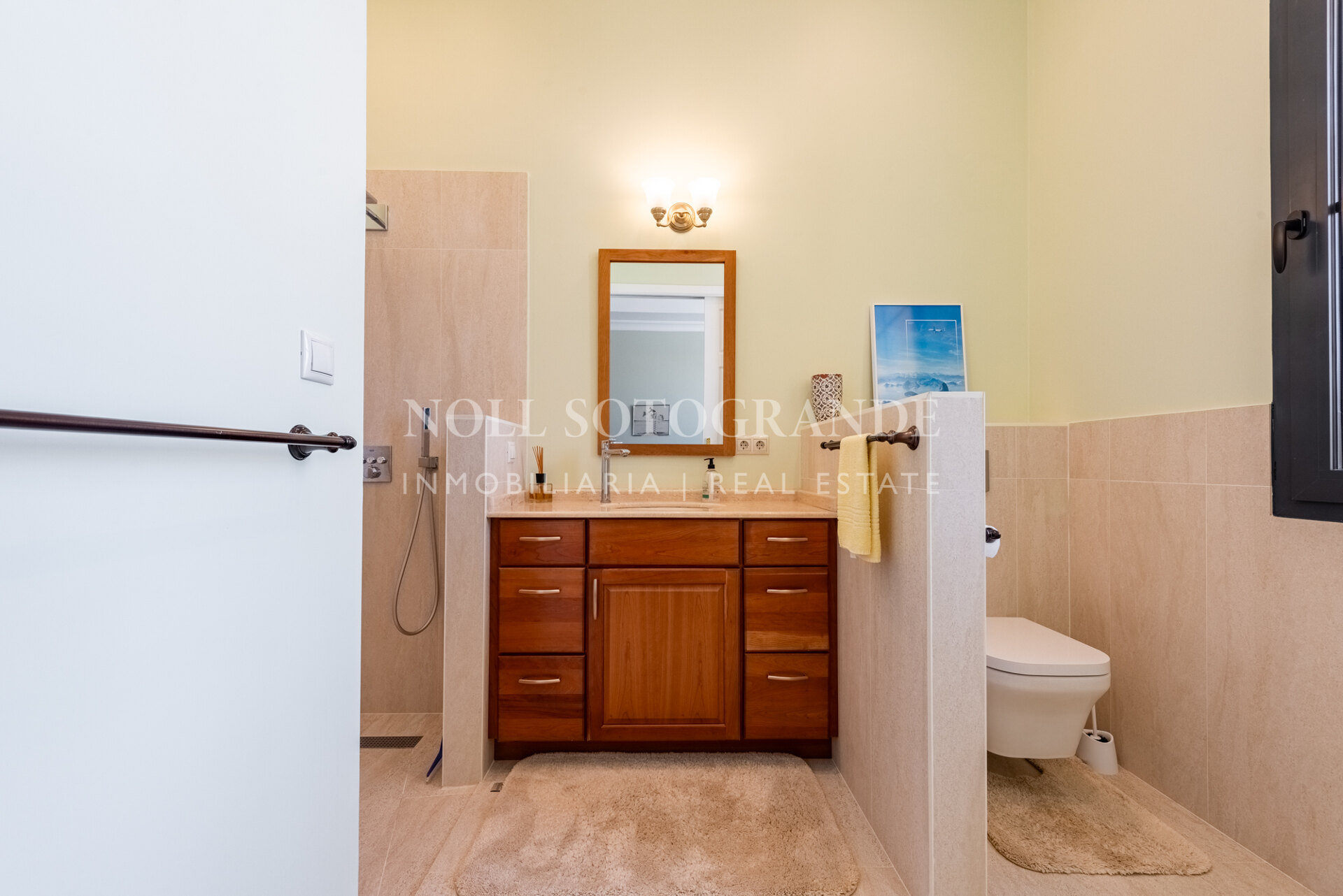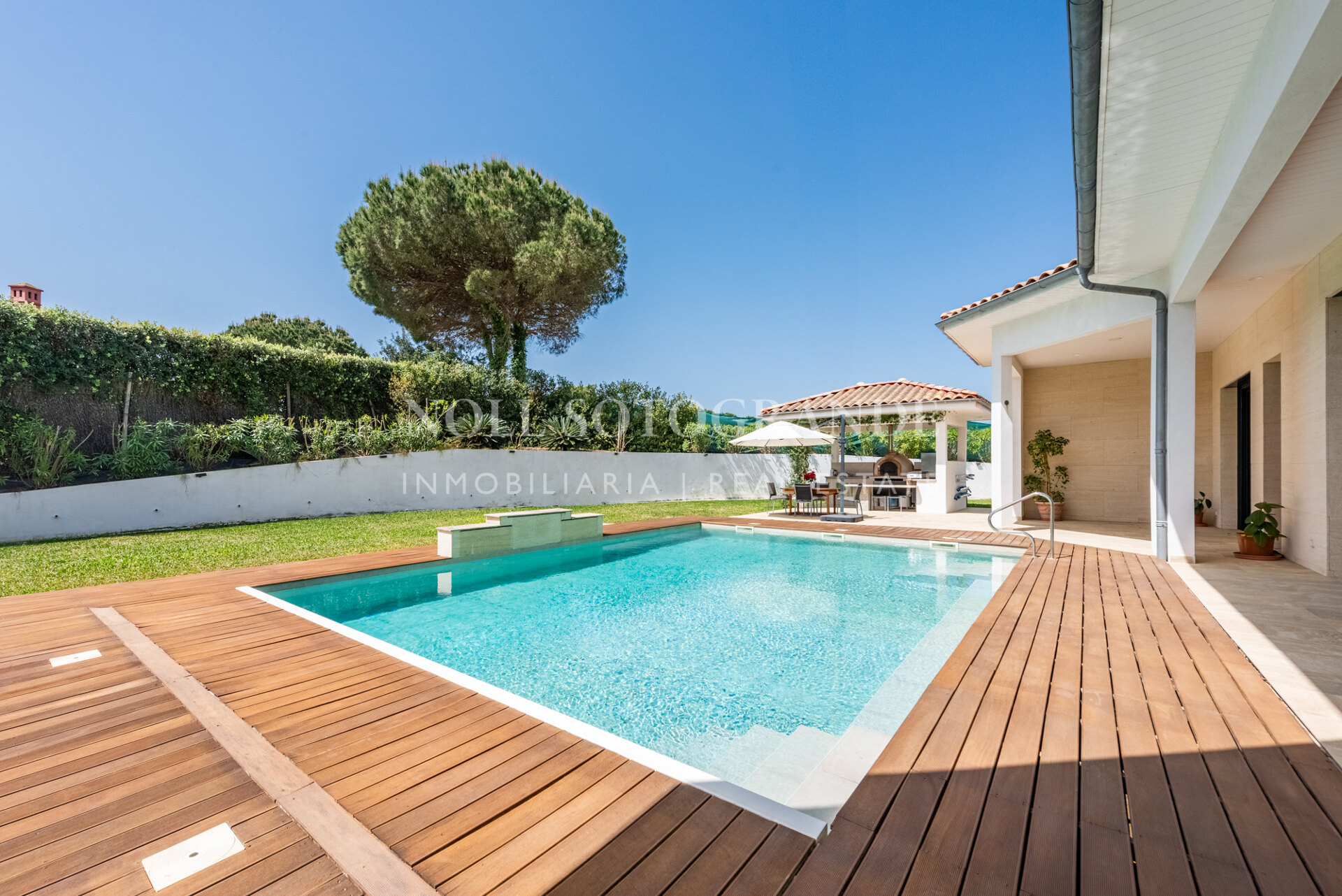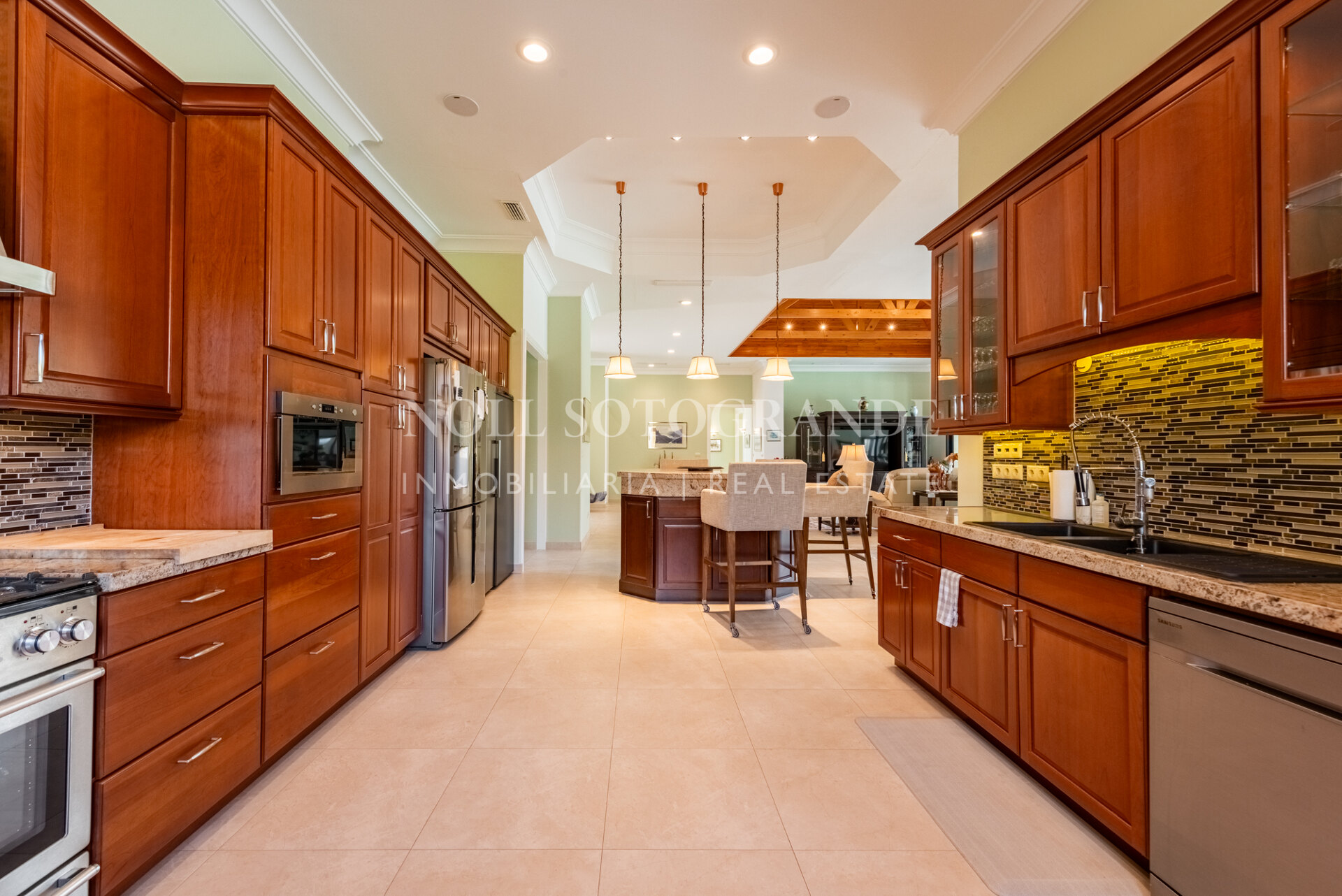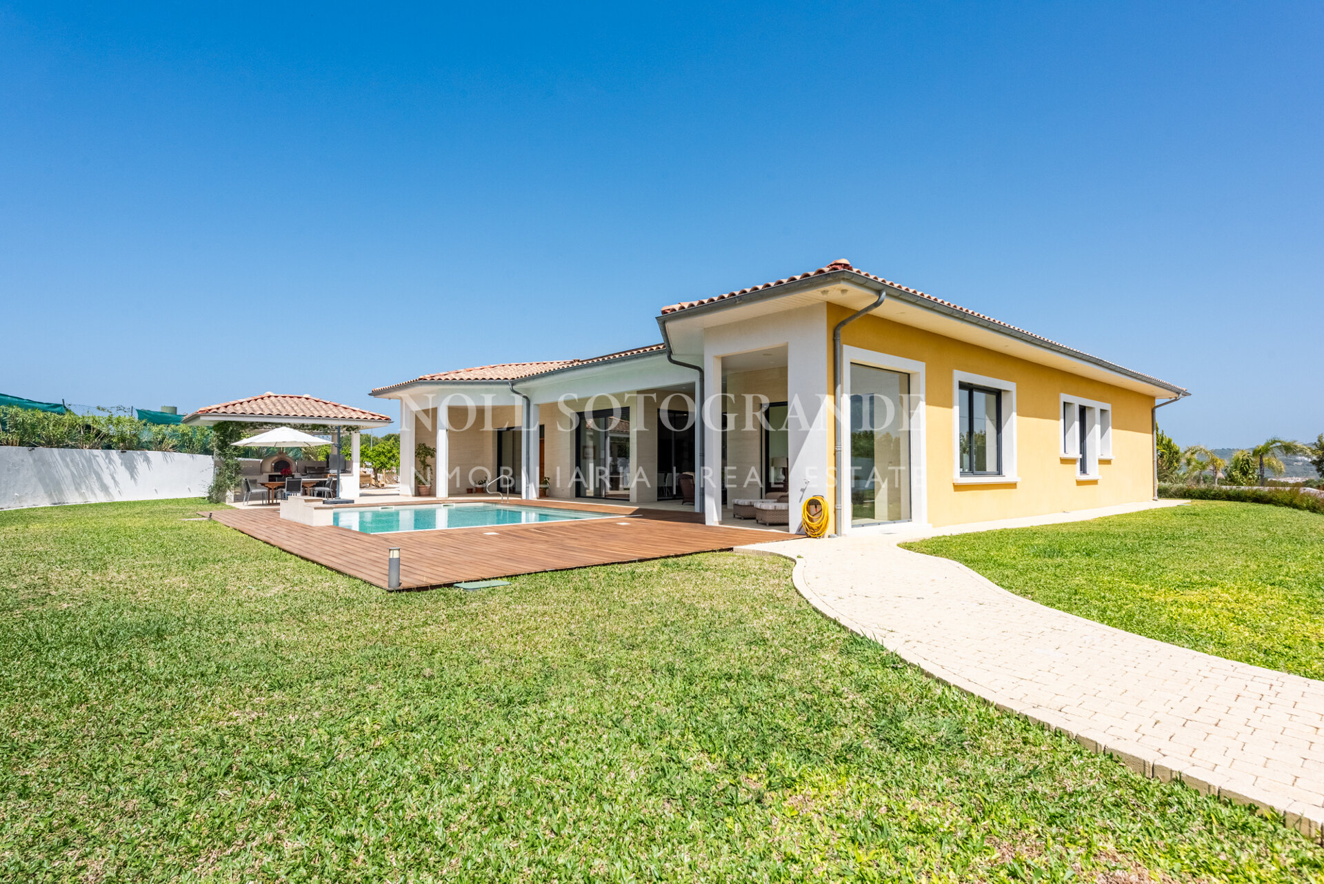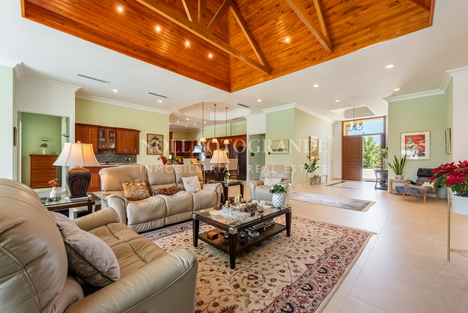 Positioned on one of the highest and most privileged points in Sotogrande Alto, this elegant single-level residence enjoys a peaceful setting combined with excellent proximity to key lifestyle destinations, including the SO/ Sotogrande Spa & Golf Resort and the renowned Sotogrande International School. Designed as a refined bungalow with clean architectural lines and a timeless aesthetic, the property offers a practical and highly liveable American-style open-plan layout that emphasizes comfort, natural light, and effortless day-to-day living. The main living area flows seamlessly into the dining space and kitchen, creating a welcoming environment ideally suited for both family life and entertaining.