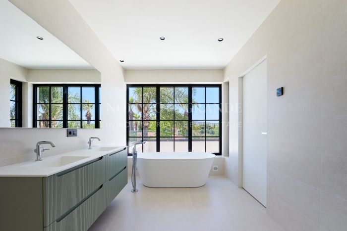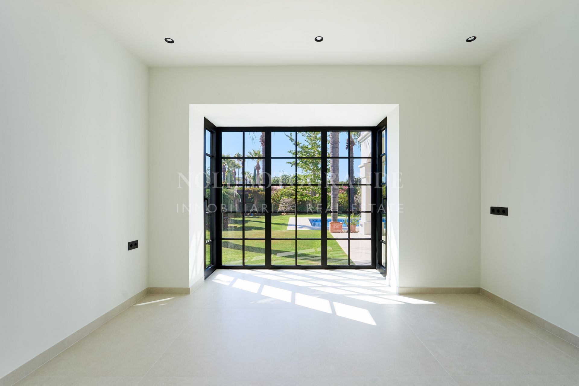 This renovated villa which now is for sale in Sotogrande combines Andalusian character with contemporary design. It offers bright open spaces, modern finishes and a peaceful setting close to golf courses such as Valderrama, La Reserva, as well as the Sotogrande Marina or the Sotogrande International School.