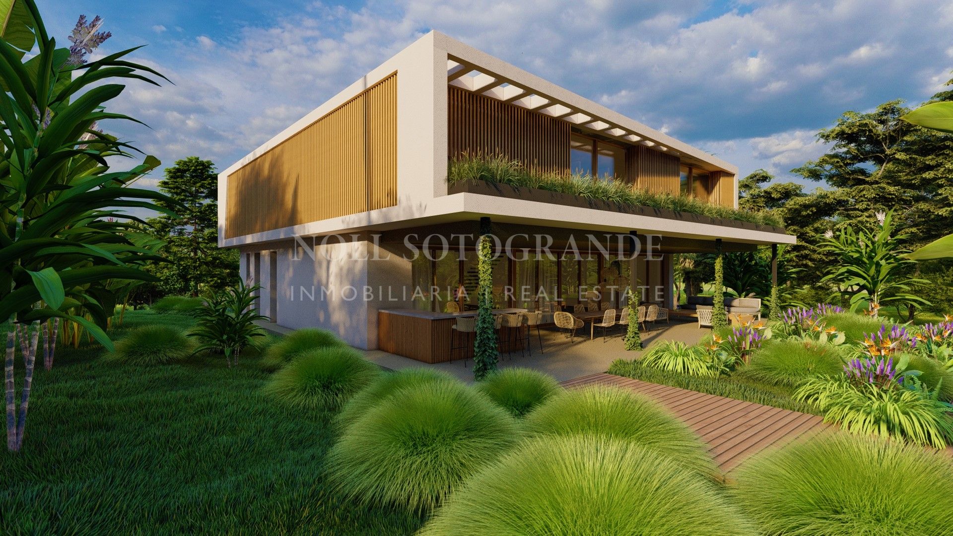 This luxurious new build villa in Sotogrande Costa (B-Zone) was designed by the renowned architect Max Lago. With a beautifully landscaped tropical garden and swimming pool, this residence is an idyllic retreat. The villa has four spacious bedrooms, each with its own bathroom, offering privacy and comfort. The open-plan American kitchen is fully equipped with modern appliances, and the generous living areas flow seamlessly into the outdoor spaces, ideal for entertaining or relaxing. High-quality finishes and large windows create a light-filled and inviting atmosphere throughout the home. Features also include central heating, air conditioning, solar panels. The villa is centrally located close to the golf courses, beaches, shops and other amenities of Sotogrande, making it ideal both as a main residence and as a holiday home.