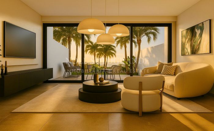 Bienvenido a Casa Preciosa, una adosada contemporánea y con carácter, situada en La Rinconada, el codiciado complejo familiar en el Valle del Golf de Nueva Andalucía, Marbella, junto al prestigioso club de golf de campeonato Aloha Golf Club. La encantadora urbanización cerrada de estilo andaluz está andando a todos los comercios y a solo 3 minutos en coche de Puerto Banús y la playa, y cuenta con extensos jardines maduros con palmeras, una gran piscina y un aparcamiento cubierto también cerrado.