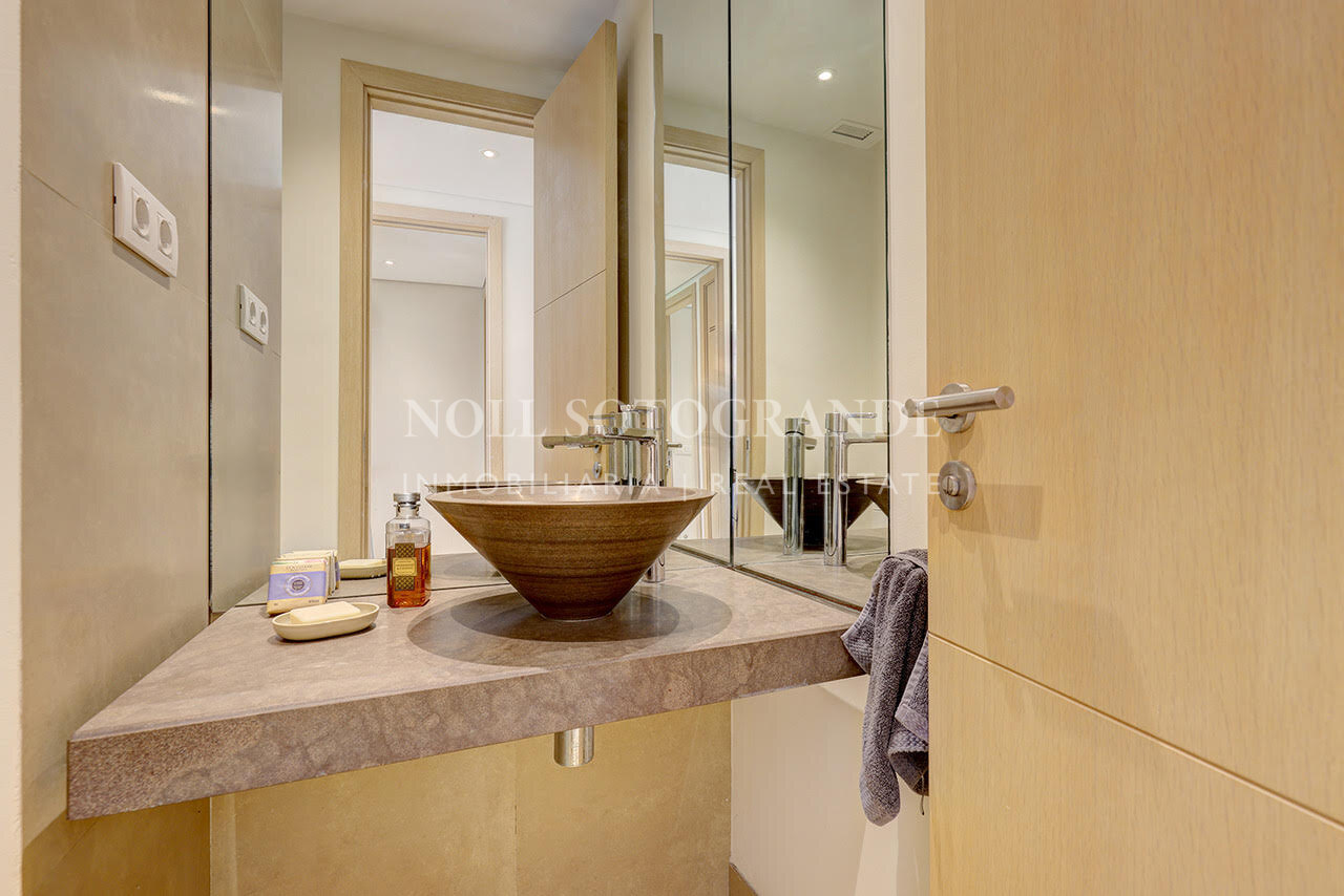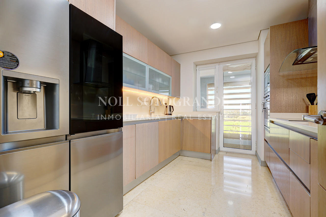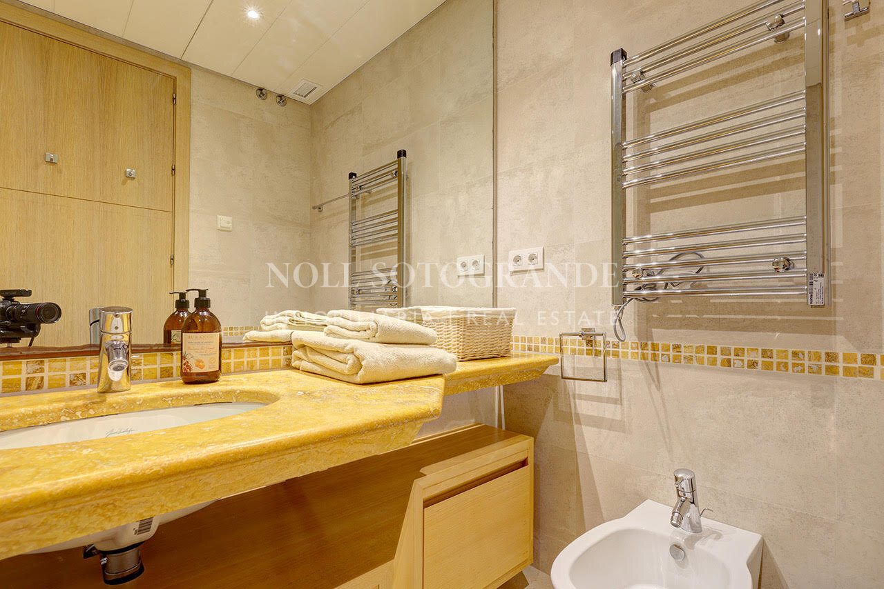 The apartment features hot/cold air conditioning, underfloor heating in the bathrooms, and fiber optic internet connection. It includes an underground parking space and a storage room. The development offers an indoor pool, gym, sauna, steam bath, jacuzzi, and several outdoor swimming pools. Available for long-term rental, it is a practical option for living in Sotogrande Marina with all amenities within easy reach.