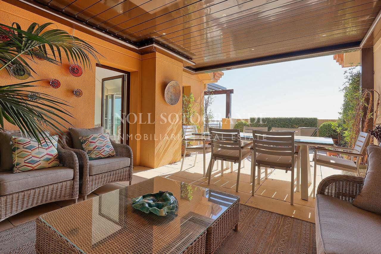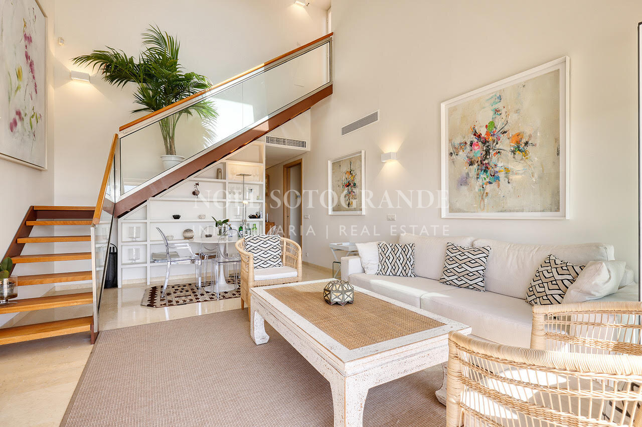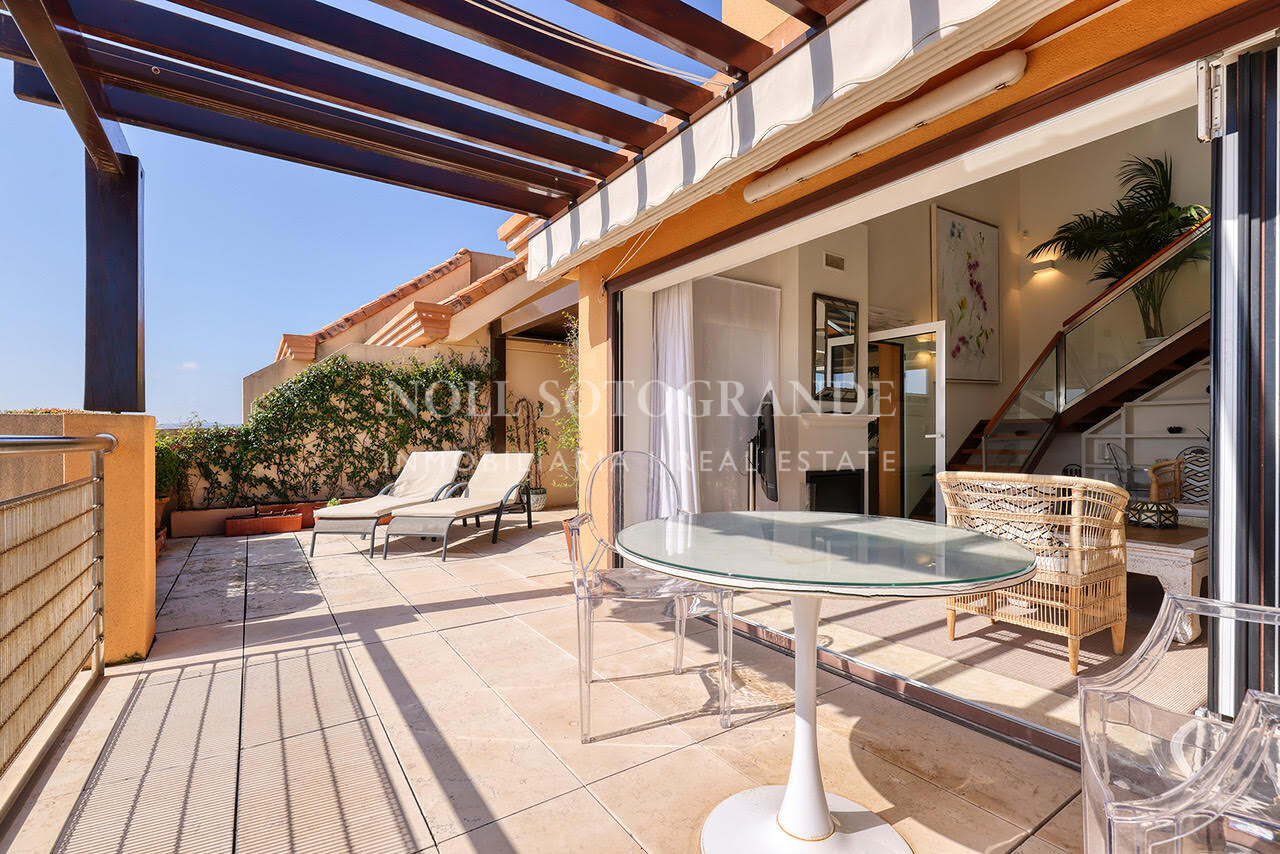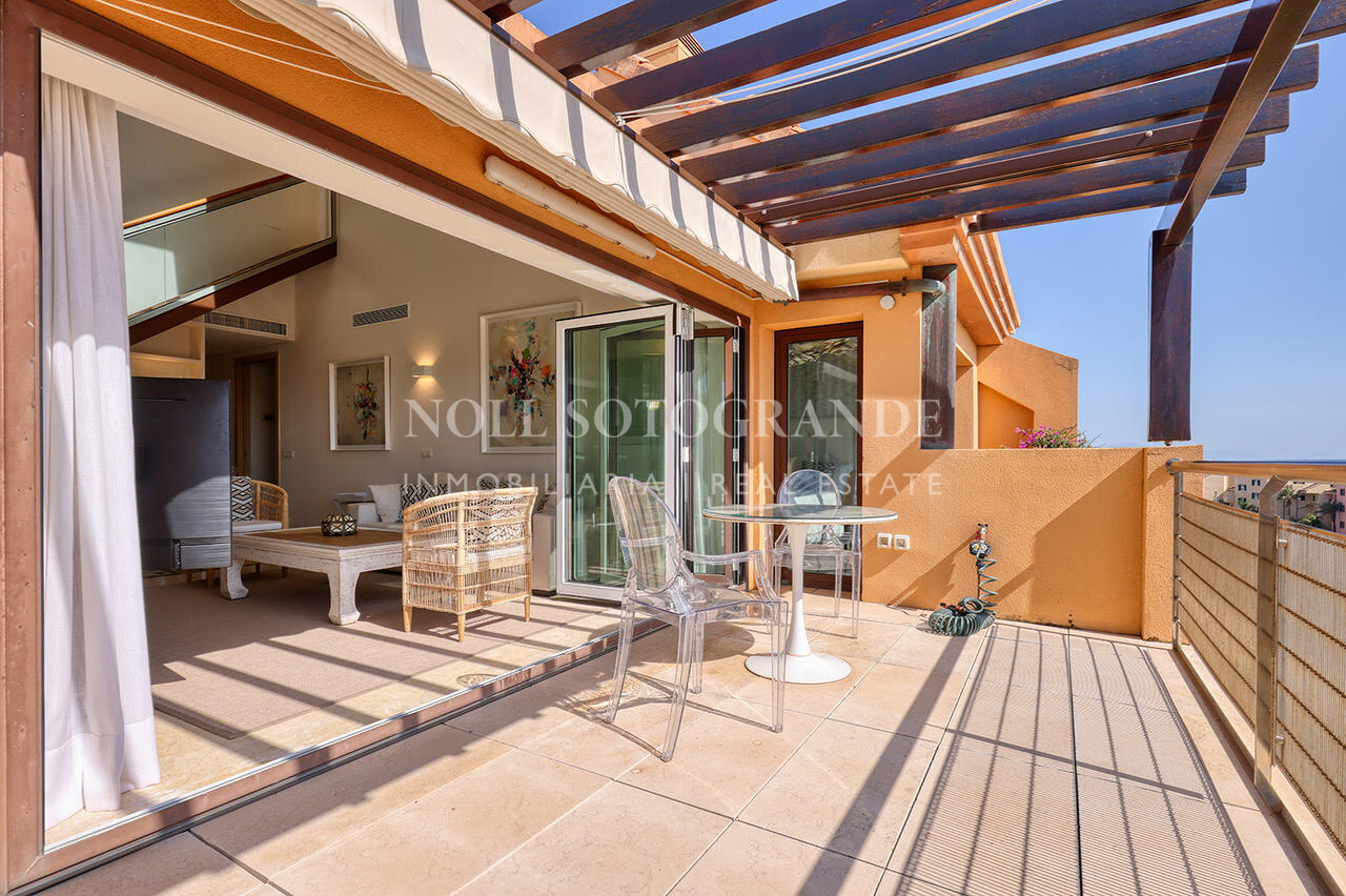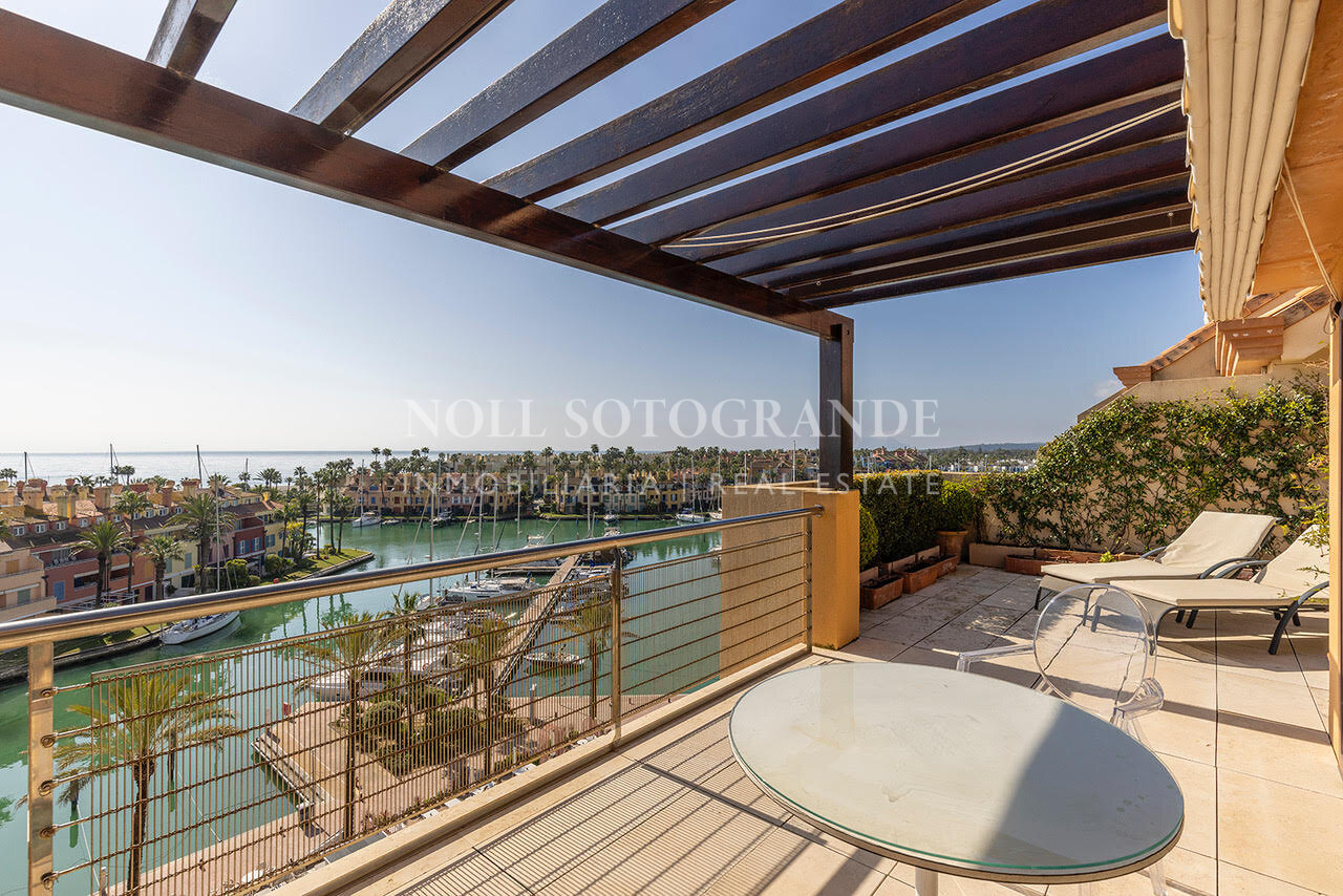 This two-bedroom penthouse is located in Ribera del Marlin, right in the heart of Sotogrande Marina, just a few minutes’ walk from the beach and the port with its restaurants, bars, and shops. The development is one of the most complete in the area, featuring 24-hour security and access to well-maintained communal areas.